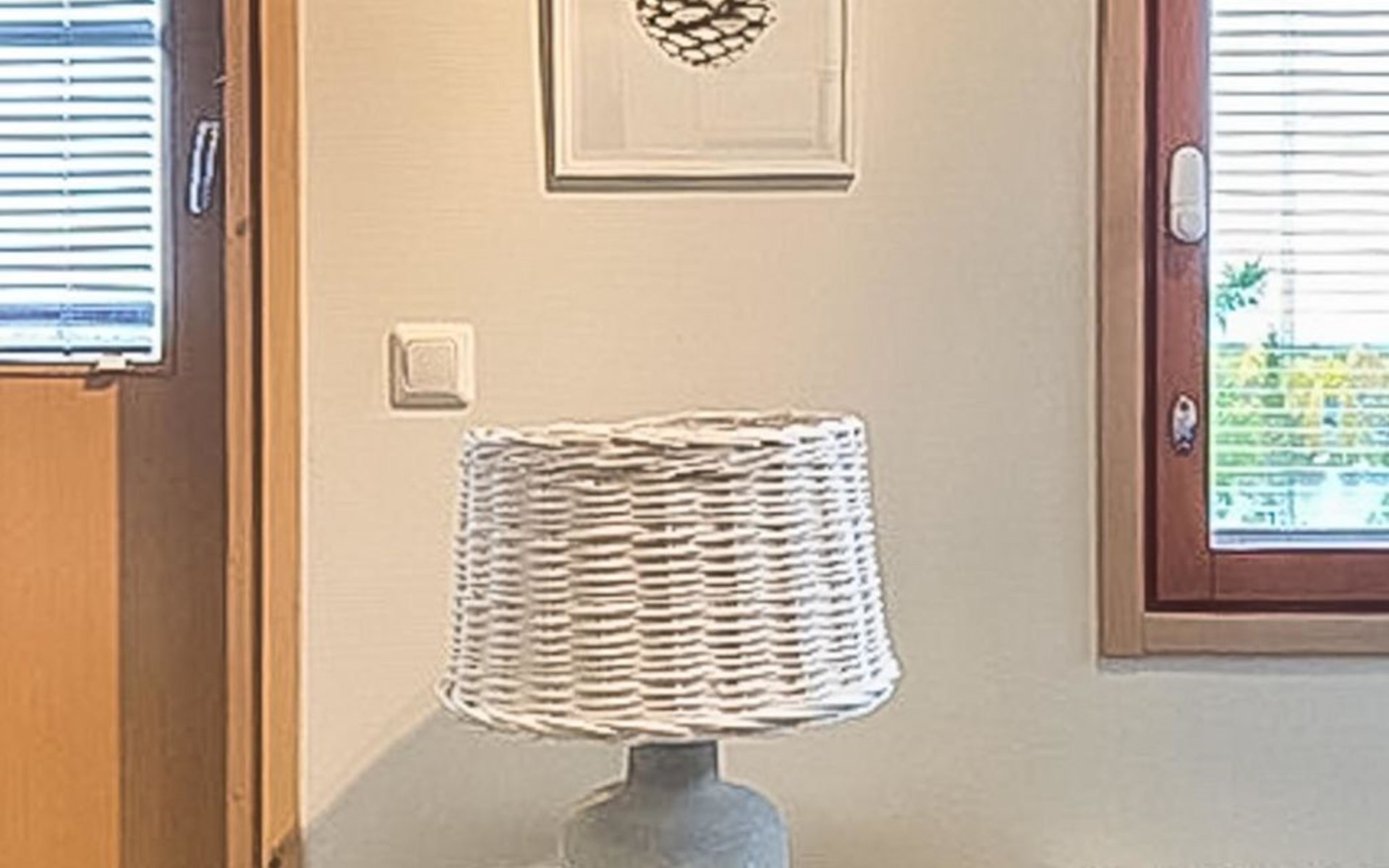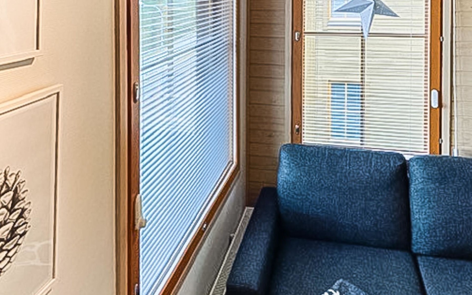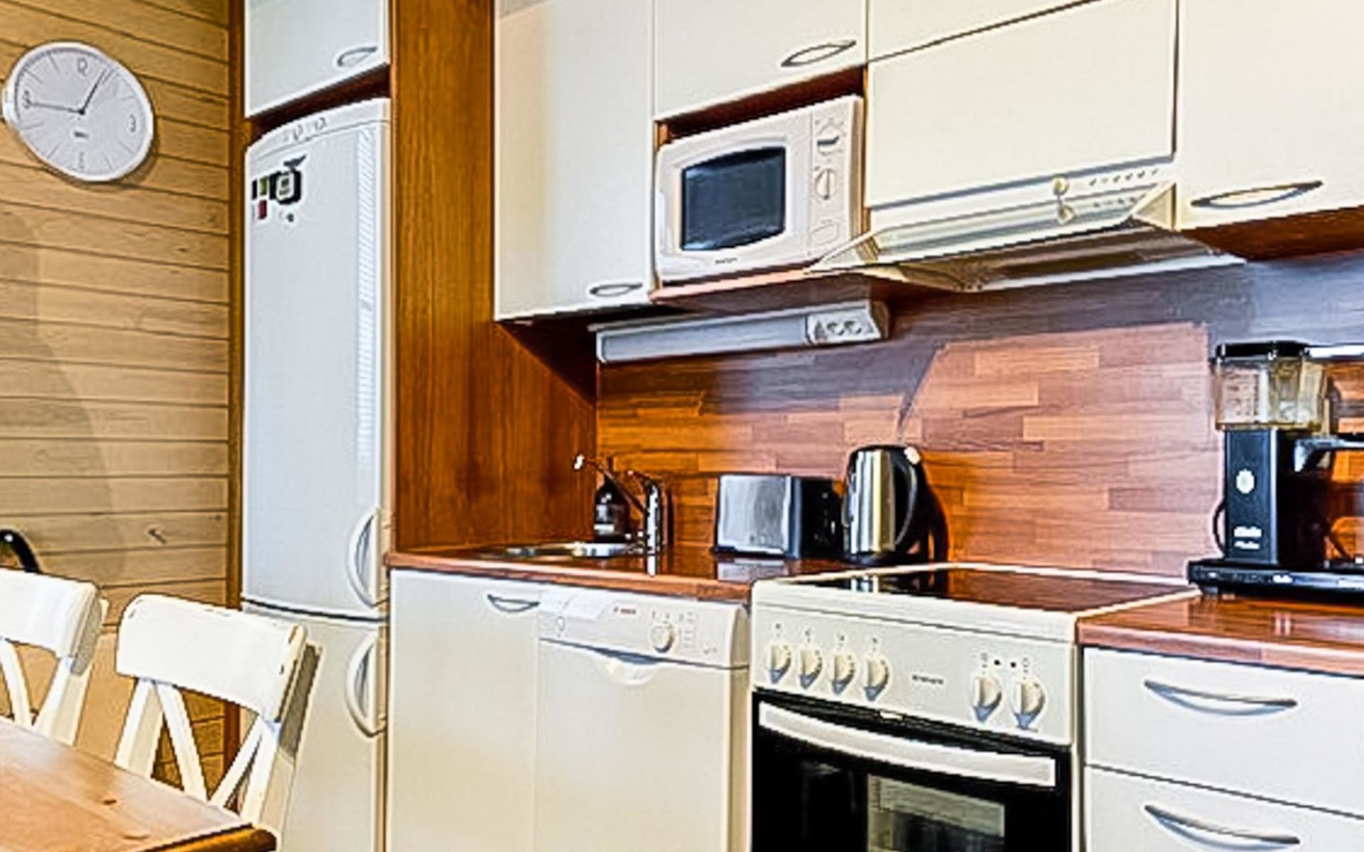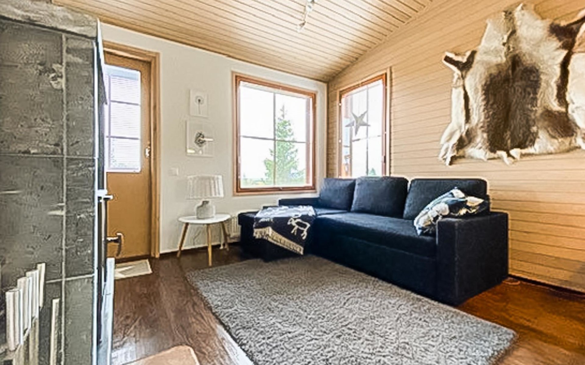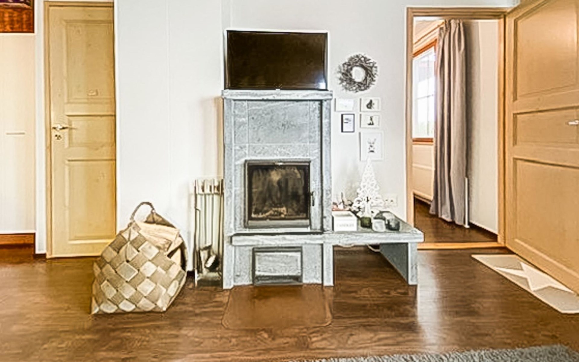 Apartment (built of wood/stone), built in 2007, situated house´s second floor. bedroom 1: double bed, bedroom 2: bunk bed with third drawer bed (all beds width 90 cm), living room: pull out corner sofa, combined kitchen/living room, electric sauna.