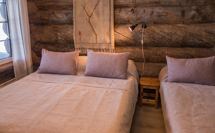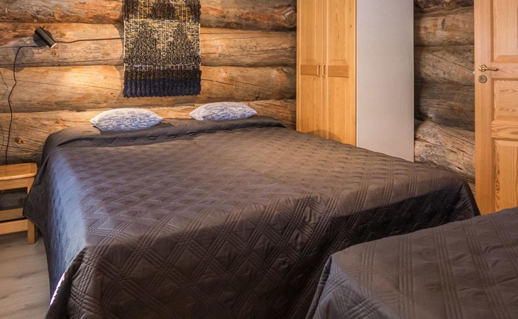 Harjula is a traditional log cabin built in 1986. Bedroom 1 has a double bed and 1 single bed, bedroom 2 has a double bed and 1 single bed. In addition, there is a combined living room and kitchen, two toilets, and an electric sauna.