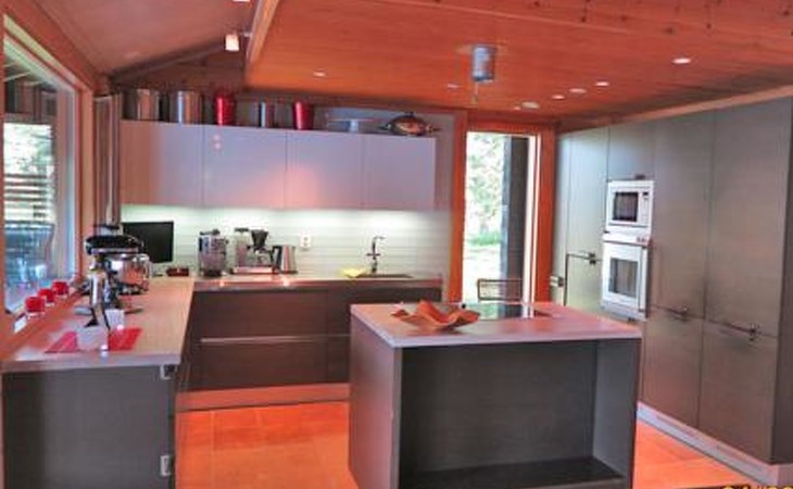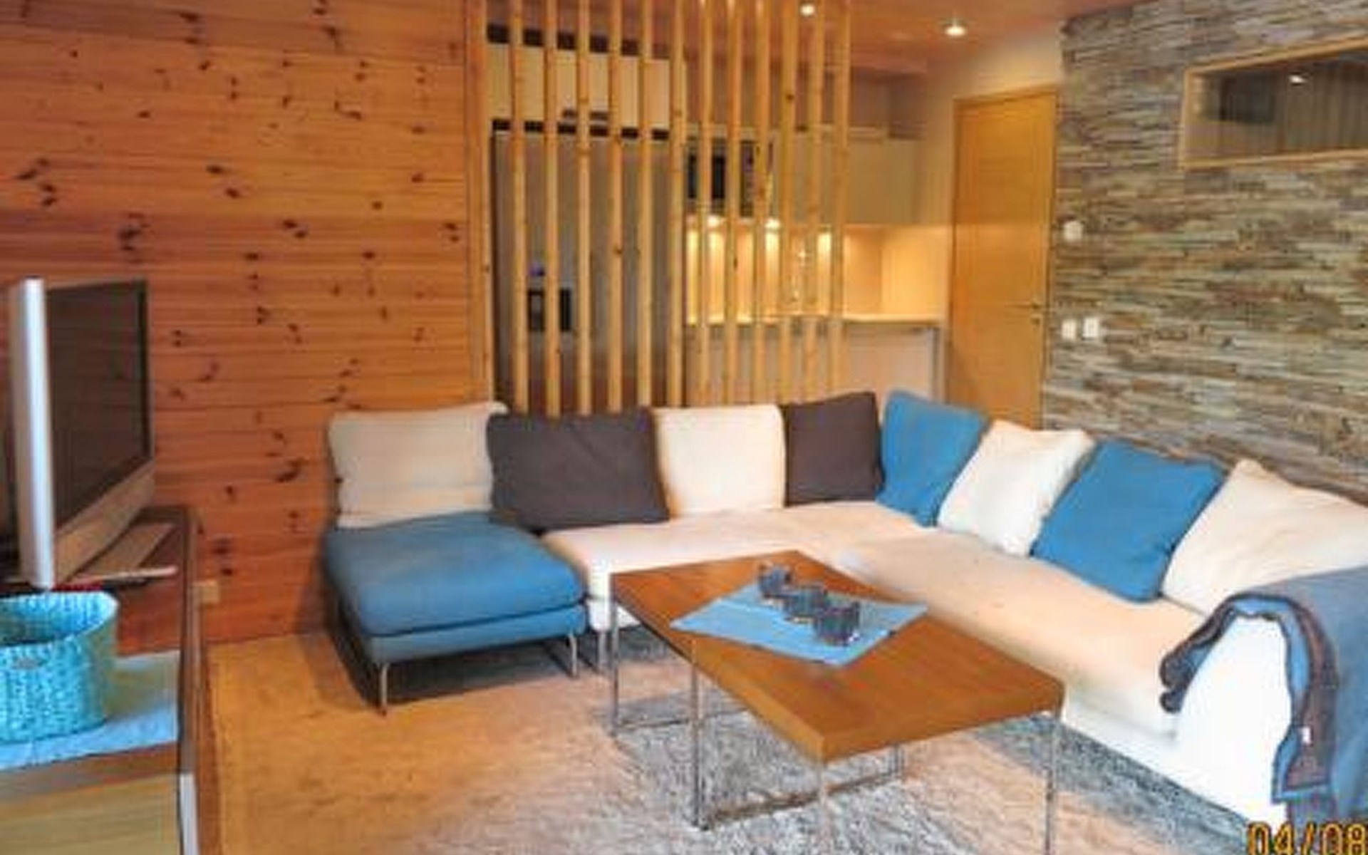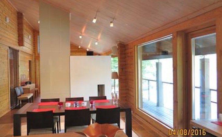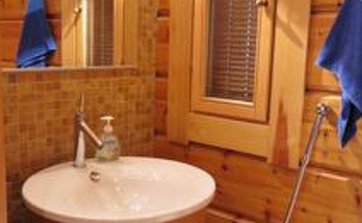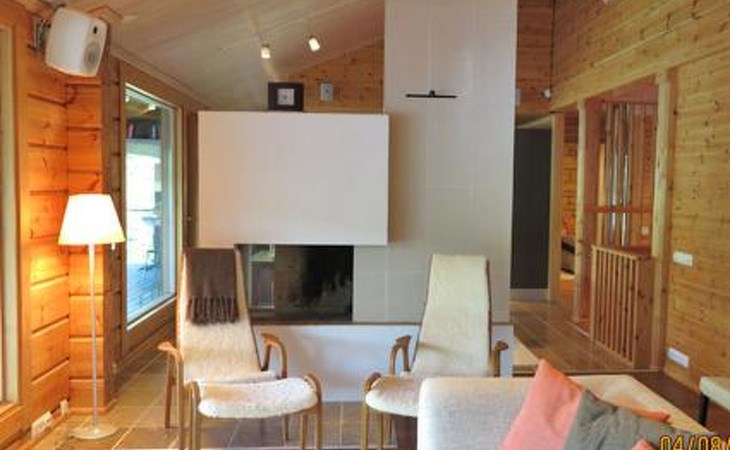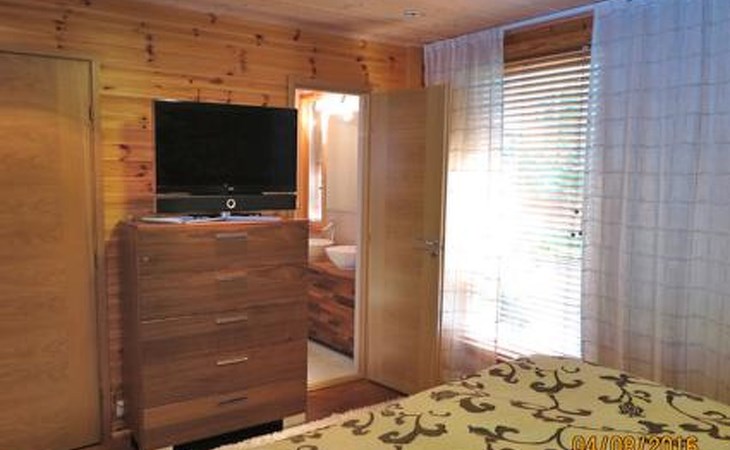 Spacious two-story log house: kitchen, living room, 2 bedrooms with double bed in each, 1 bed room double bed and own shower, WC and TV, in the hallaway second WC. A wide terrace (60 m² of which covered 40 m²). Downstairs livingroom, kitchenette; micro oven, dishwasher, fridge, freezer, ice maker, 2 bed room with double bed in each, dressing room, utility room, washroom, sauna (wooden warming stove), 2 WC, ski storage and terrace.