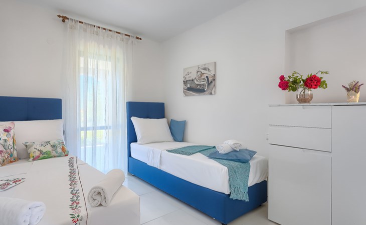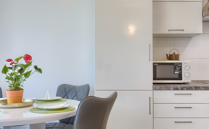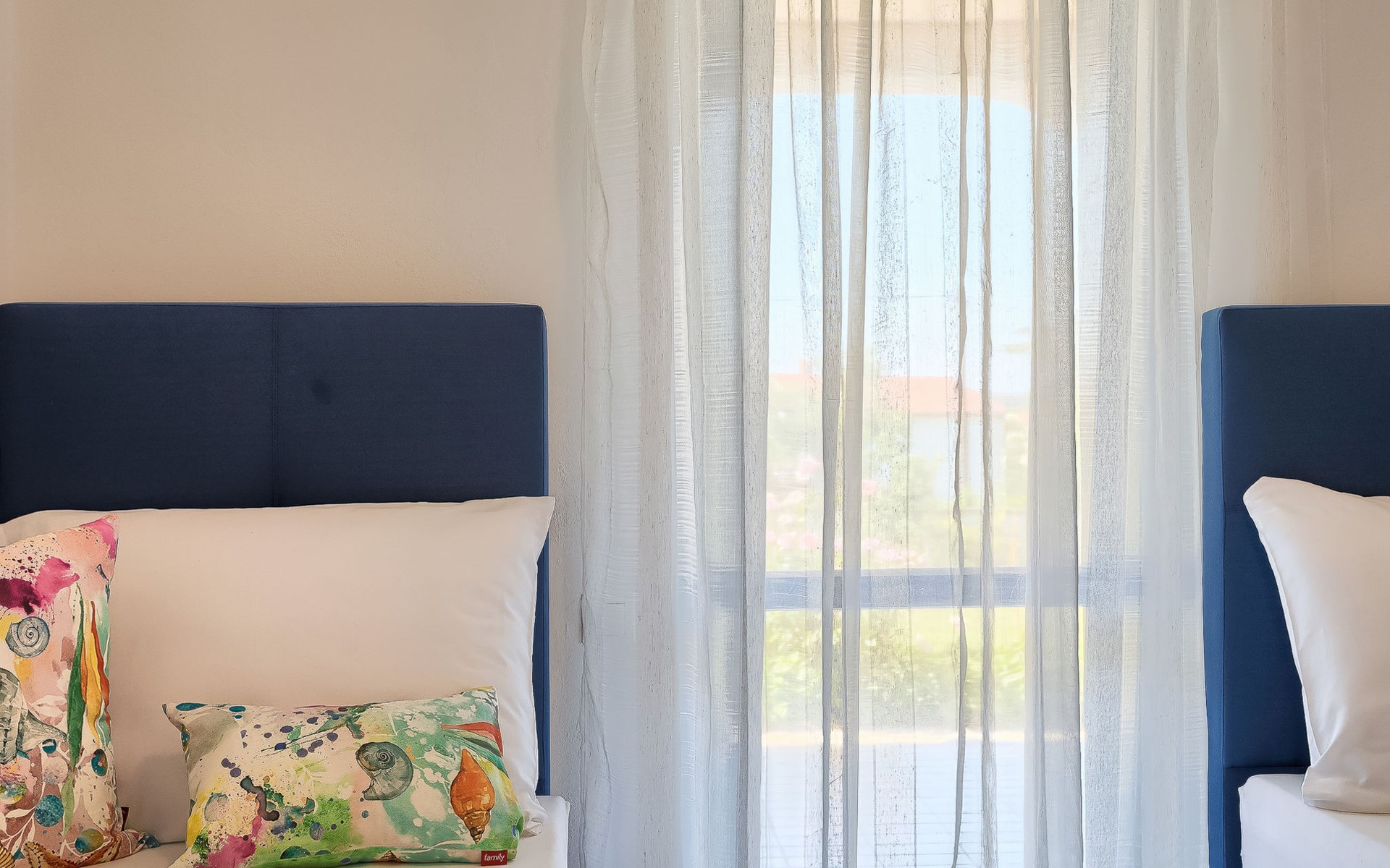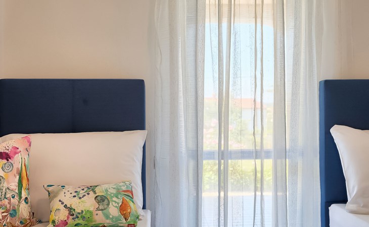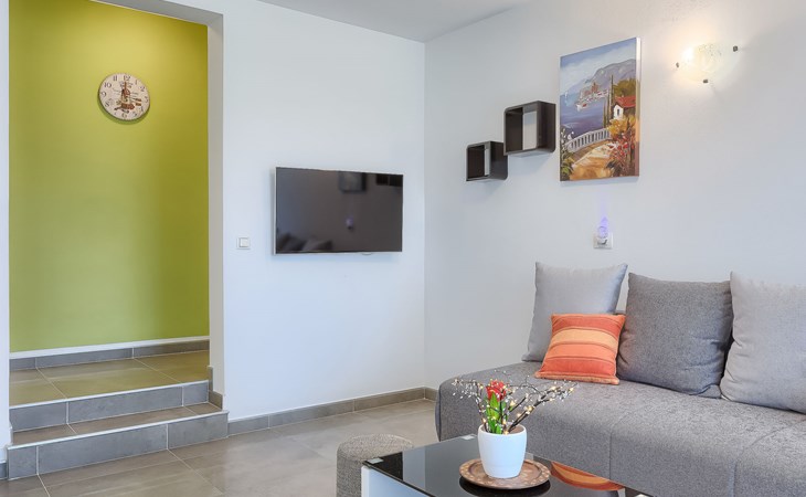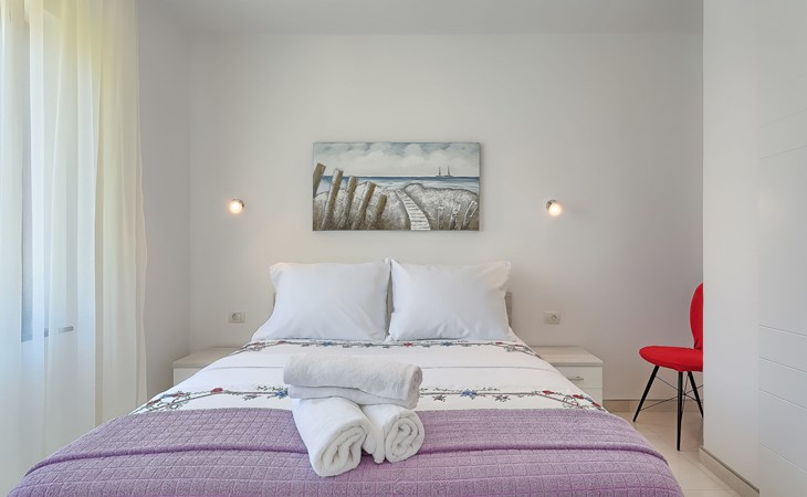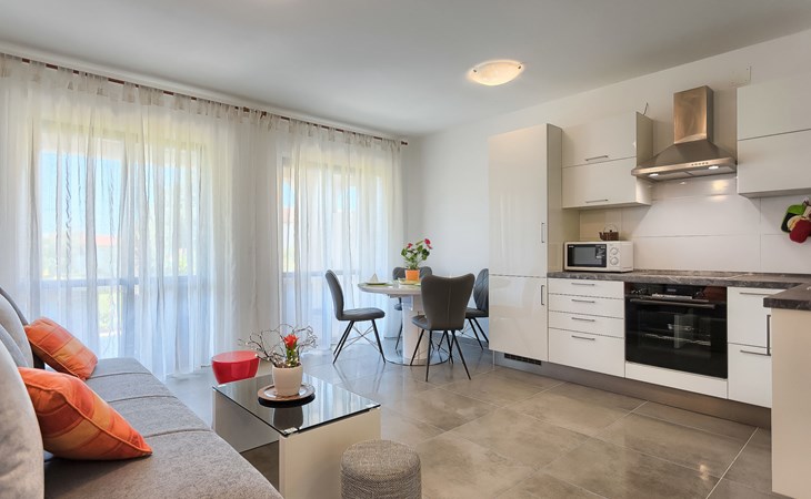 Beautiful apartment house "Muki". 600 m from the centre of Medulin, in a quiet, sunny position, 500 m from the sea, 700 m from the beach. For shared use: property 1'850 m2 (fenced), beautiful garden with lawn and trees. Garden furniture, barbecue. In the house: internet access, storage room for bicycles. Parking at the house on the premises. Shop 200 m, supermarket, restaurant 300 m, bar, bakery 100 m, bus stop 230 m, sandy beach 1 km pebble beach, rocky beach 700 m. Golf course (18 hole) 27 km, surf school 2.5 km, tennis 2.5 km, riding stable 2 km, walking paths from the house 200 m, cycle lane 250 m, children's playground 1 km. Parking for trailer (extra). Video surveillance of the property.