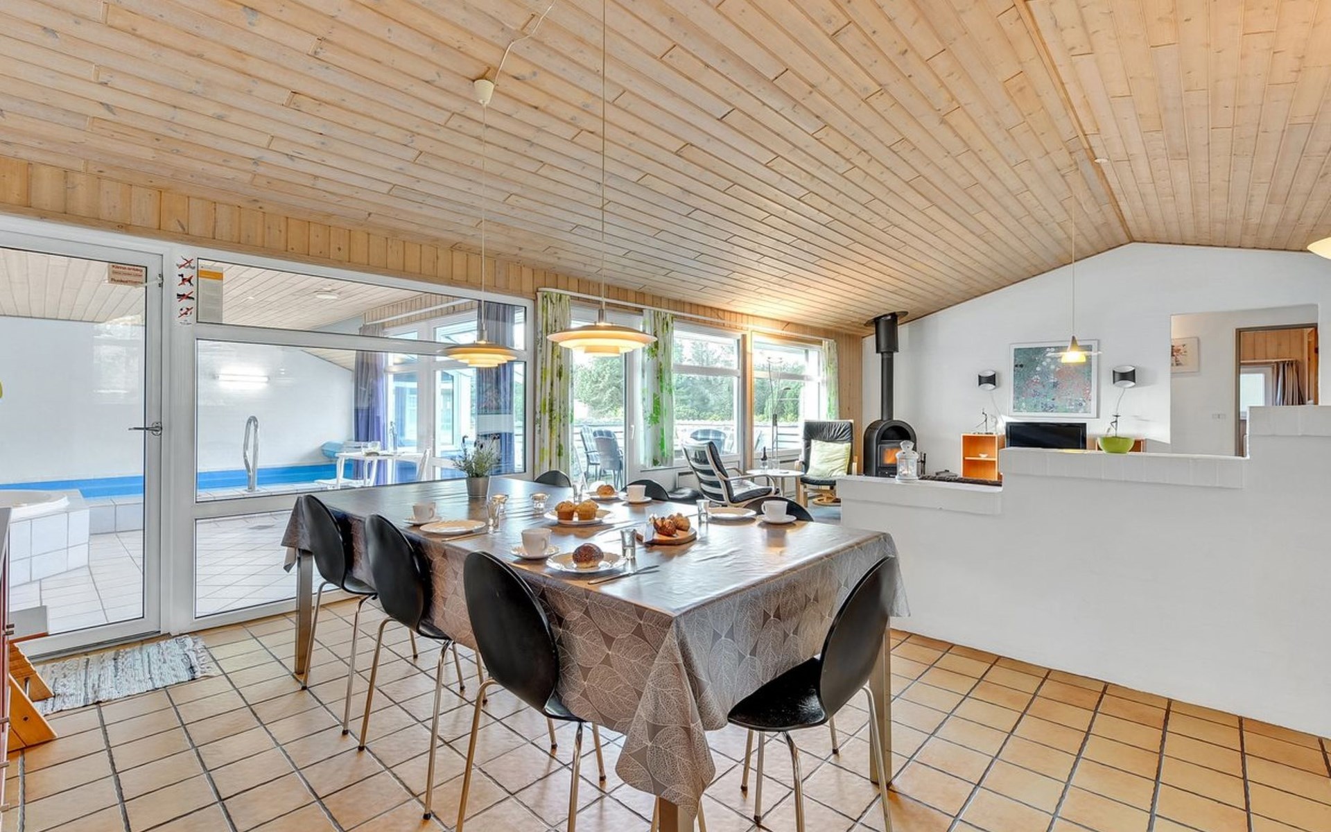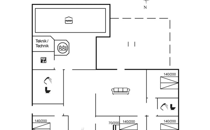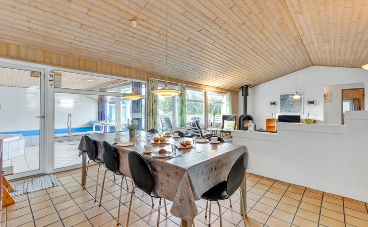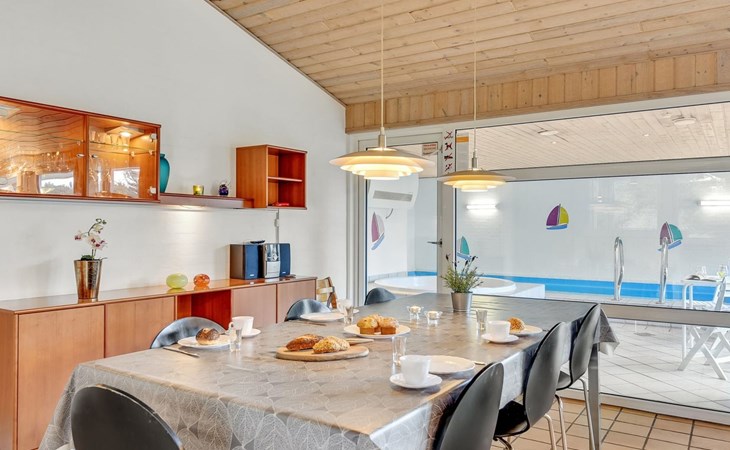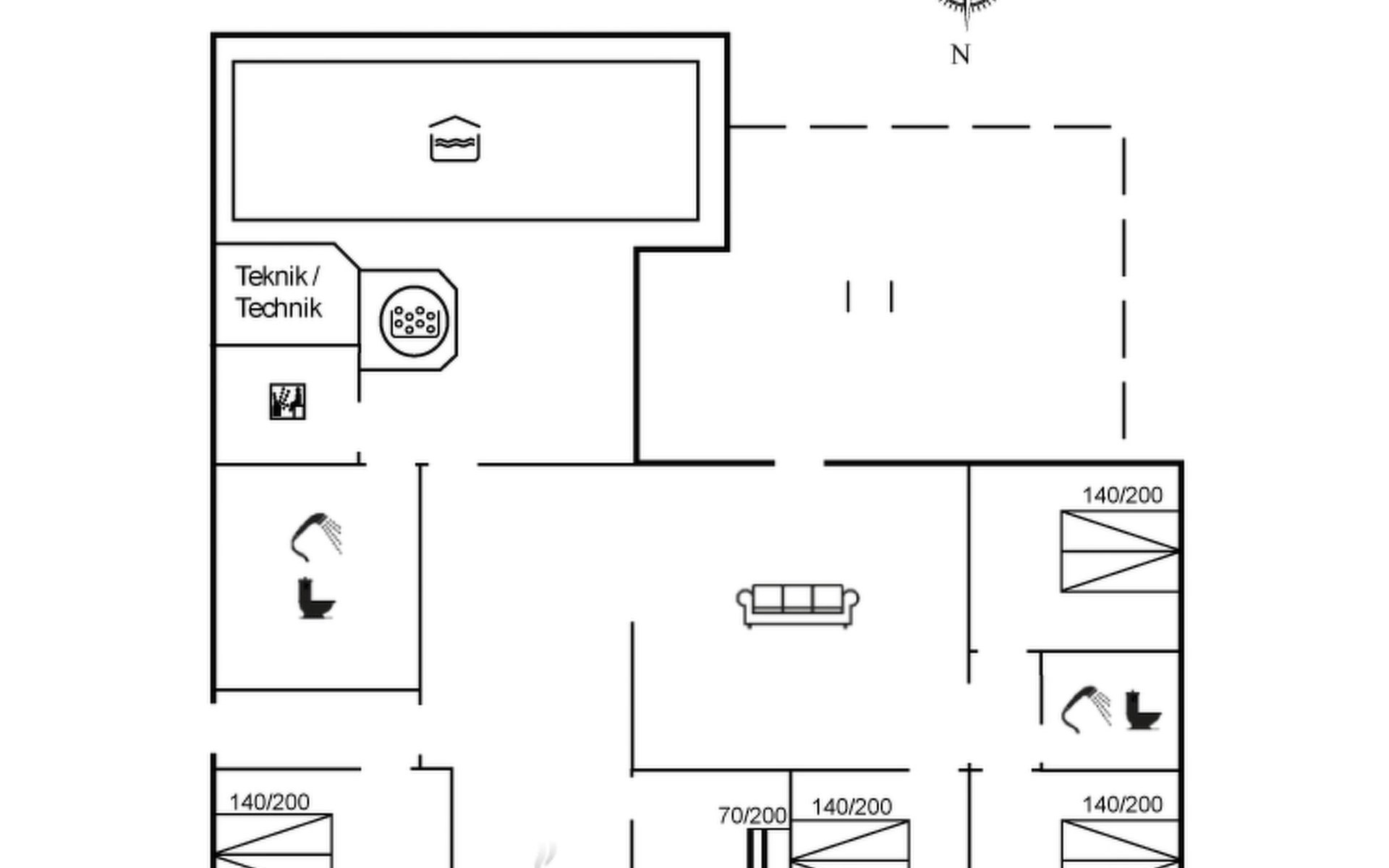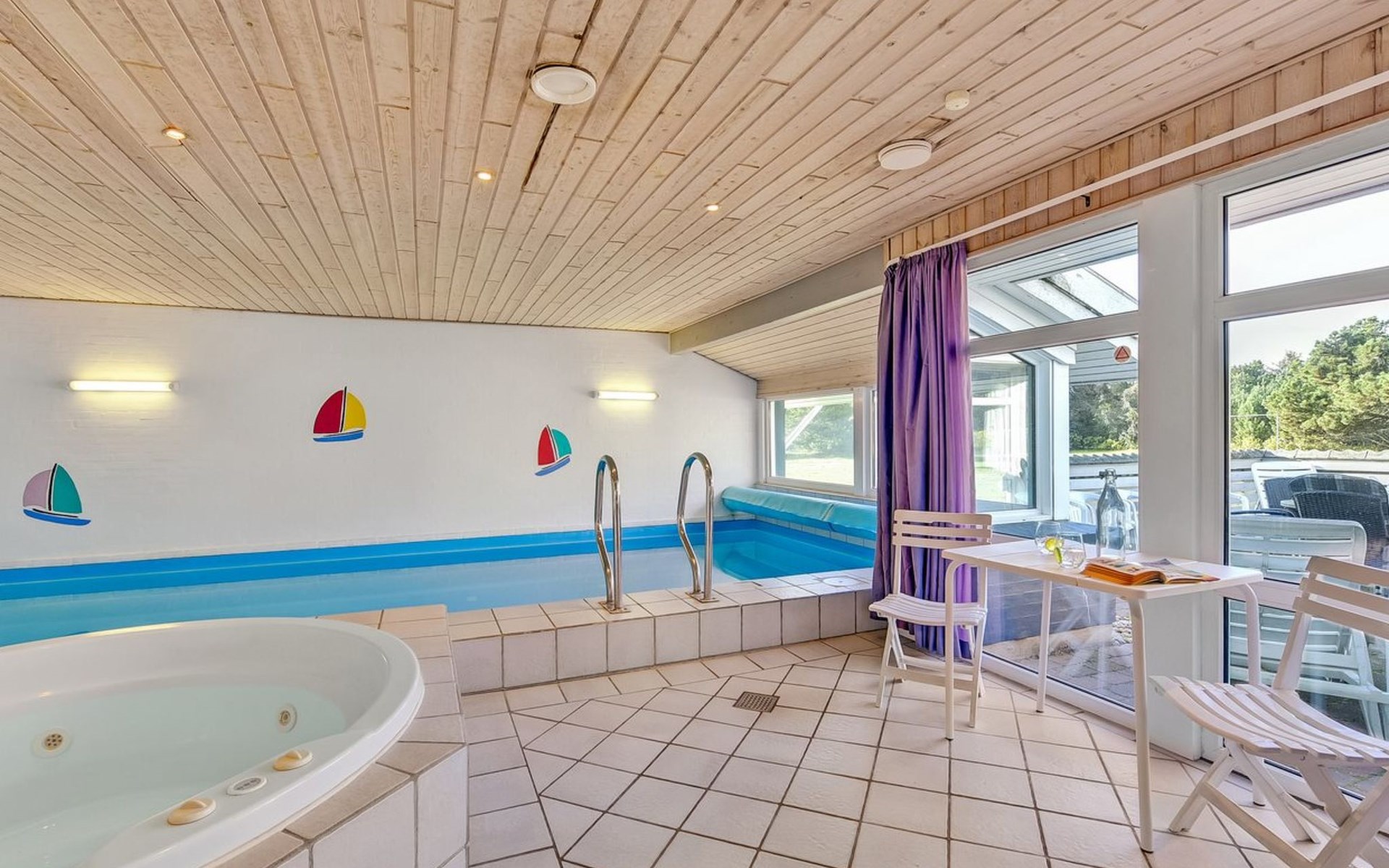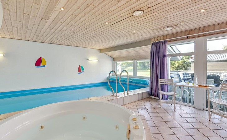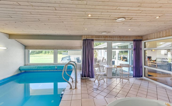 Single-family house, built in 1996. 700 m from the sea. Private: natural state property 2'000 m2, indoor pool (3 x 7 m, 2'1.9 m2, depth 130 - 130 cm). Terrace (40 m2), children's playground (swing). In the house: sauna, washing machine, tumble dryer. Parking at the house. Grocery 1 km. The owner does not accept any youth groups.