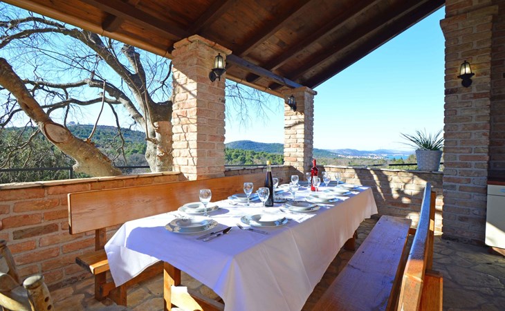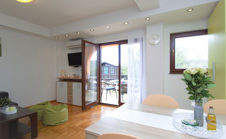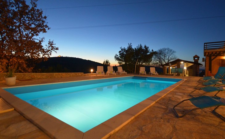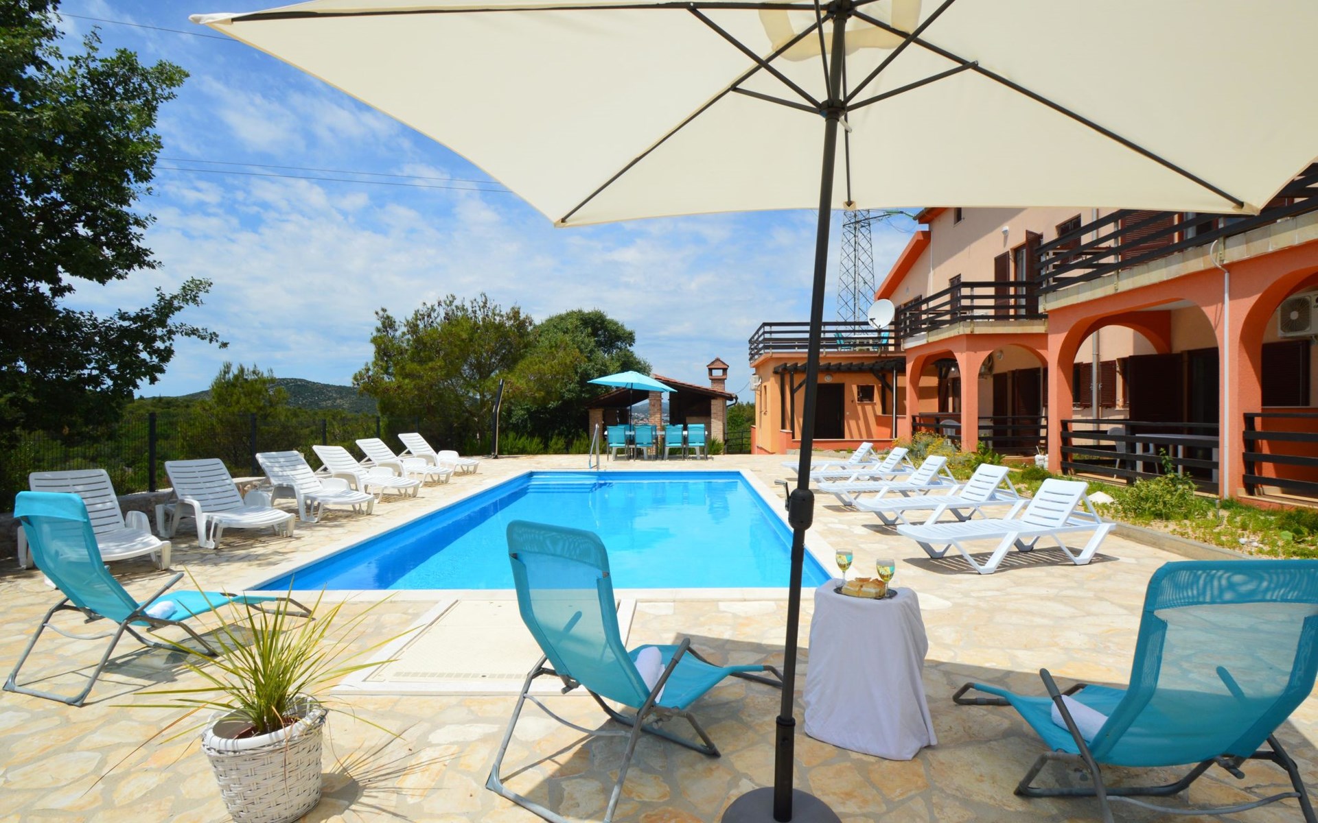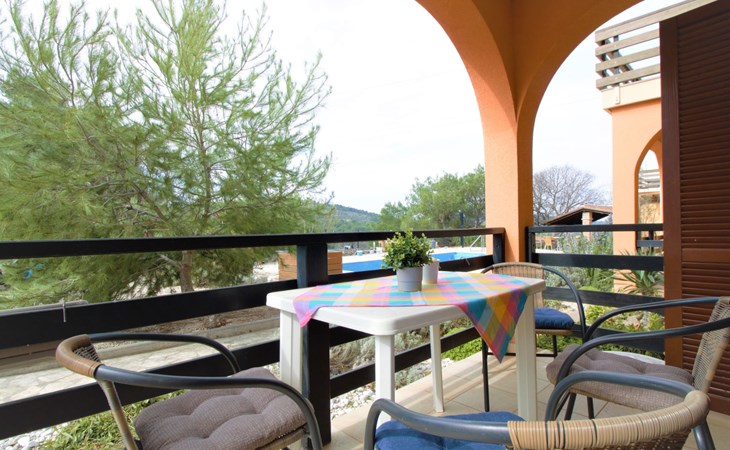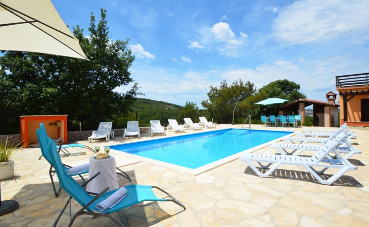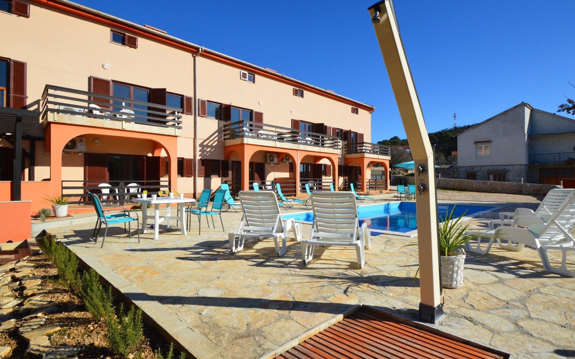 Apartment house "Bilice". 2.5 km from the centre of Bilice, in a sunny position, 5 km from the sea, 2.5 km from the lake, located by a road. For shared use: property 1'229 m2 (fenced), swimming pool angular (10 x 4 m, depth 135 cm, seasonal availability: 01.May. - 15.Oct.) with internal staircase. Outdoor shower, arbour (30 m2), terrace (130 m2), garden furniture, barbecue. In the house: internet access. Parking. Shop 1 km, shopping centre 8 km, restaurant 3.5 km, café 400 m, bus stop 900 m, pebble beach 5 km. Marina 7.5 km. Nearby attractions: NP Krka 10 km. Well-known lakes can easily be reached: Prokljansko jezero 2.5 km.