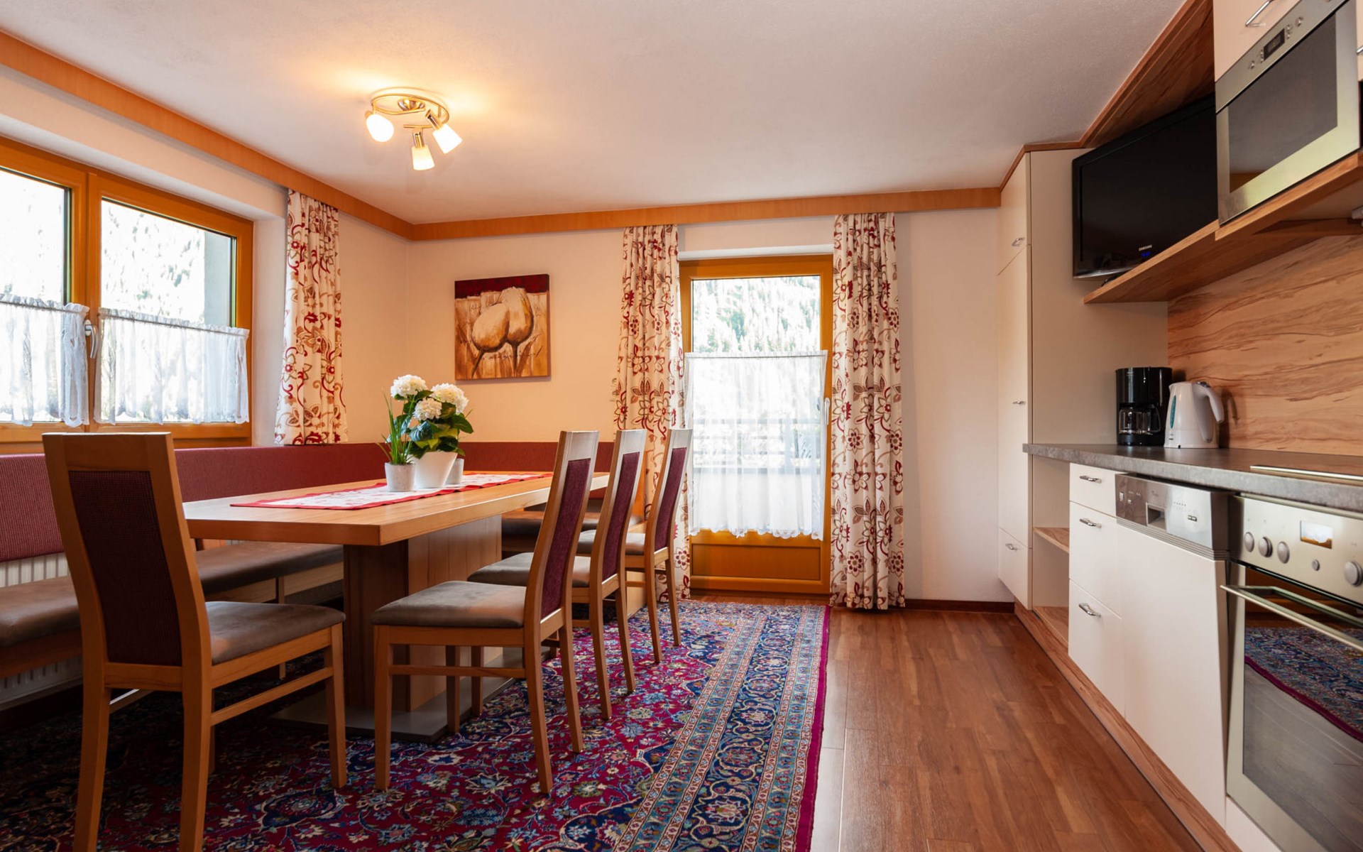 Cosy apartment block "Aurora Apartments". 950 m from the centre of Kappl, in a quiet position on a slope, 2 km from the skiing area. In the house: internet access, infrared sauna, central heating system, washing machine (extra) (for shared use), drying room, ski boot dryer. Bread roll service. Motor access (mountain road). Parking. Shop, grocery, supermarket, restaurant 950 m, bar 1 km, bakery, café 900 m, bicycle rental 950 m, 15 minute walk to the centre, bus stop "Kappl Obermühl" 150 m, railway station "Landeck-Zams Bahnhof" 23.1 km. Ski lift 2 km, gondola lift 2 km, ski rental 950 m, ski bus stop 30 m, ski school 2 km, children's ski school 2 km. Nearby attractions: Silvretta Therme Ischgl 10 km, Silvretta Hochalpenstraße 22 km. Well-known ski regions can easily be reached: Ischgl 10 km, Kappl 2 km. Please note: ski bus (free of charge). Free ski bus service to the ski region Kappl-See und Ischgl, Galtür. Please note: the owner lives in the same residence. Ping pong, calcio balilla, trampolino, recinto con sabbia (in estate). Azienda membro Silvretta Card Premium: utilizzo illimitato di tutte le open. Ferrovie di montagna, pubbliche Trasporti locali a Paznaun, Samnaun, Montafon/Brandnertal, Strada alpina Silvretta.