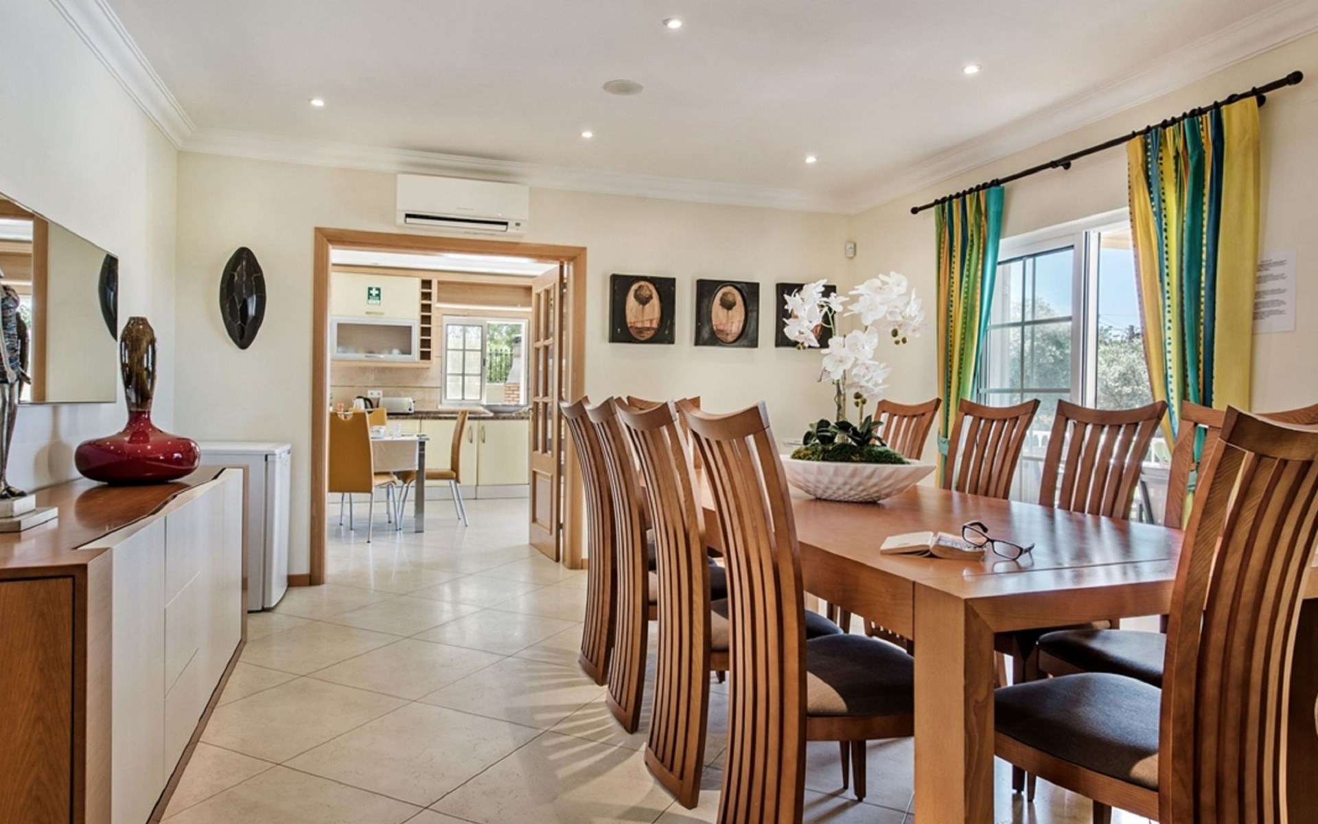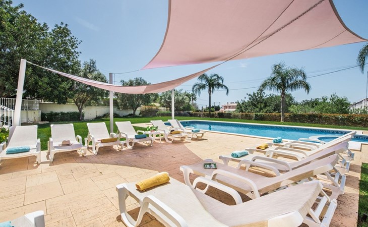 Very beautiful, cosy villa "Monte Sol". 5.2 km from the sea. Private: beautiful garden to relax, swimming pool angular (4 x 8 m, depth 90 - 195 cm, seasonal availability: 01.Jan. - 31.Dec.). Table tennis. In the house: WiFi, air conditioning, drying room. Parking at the house. Grocery 6 km, shopping centre 8.1 km, restaurant 550 m, bakery 4 km, café 1.6 km, pedestrian zone 50 m, bicycle rental 3.8 km, bus stop 650 m, railway station 4.8 km, sandy beach "Praia Olhos de Água" 5.2 km, diving center 11.5 km. Marina 12 km, golf course (9 hole) 7.1 km, surf school 14.3 km, minigolf 7.5 km, riding stable 4.2 km, children's playground 4.3 km. Nearby attractions: Zebra Safari Tours 6 km, Adventure Mini Golfe Park 7.5 km, Algarve Shopping 9.4 km, Zoomarine 11.9 km, Krazy World 15.9 km, Aeroporto Faro 30 km. Well-known lakes can easily be reached: Lagoa dos Salgados 18.4 km. Young groups under 25 y.o. will be charged an extra deposit per person on spot.