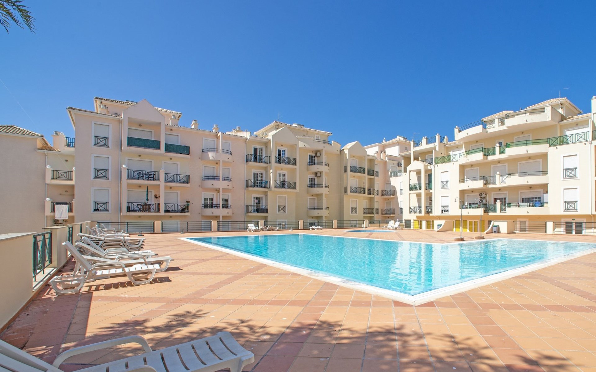 Very cosy, comfortable apartment block "Sunny Beach Treasure". 800 m from the sea. For shared use: swimming pool angular (seasonal availability: 01.Jan. - 31.Dec.). Shower/WC in the pool area. In the house: lift, air conditioning, washing machine, drying room. Parking space n 17-1F. Grocery, supermarket 800 m, shopping centre 9.1 km, restaurant 5 m, bar 50 m, bakery 800 m, café 5 m, bicycle rental, bus stop 350 m, railway station 8.5 km, sandy beach "Praia de Armação de Pera", diving center 14.8 km. Marina 9.9 km, golf course (18 hole) 7.5 km, surf school 600 m, riding stable 3.8 km, children's playground 1.3 km. Nearby attractions: Zebra Safari 2.4 km, Aqualand 5.4 km, Sand City 8.1 km, Zoomarine 8.3 km, Algarve Shopping 9.1 km, Krazy World 13.2 km. Well-known lakes can easily be reached: Lagoa dos Salgados 4.8 km. Hiking paths: Seven Hanging Valley trail 10.3 km. The owner does not accept any youth groups. Please note: Loading and unloading of baggage is possible at the holiday house.
