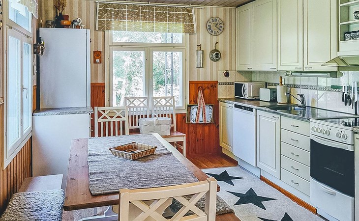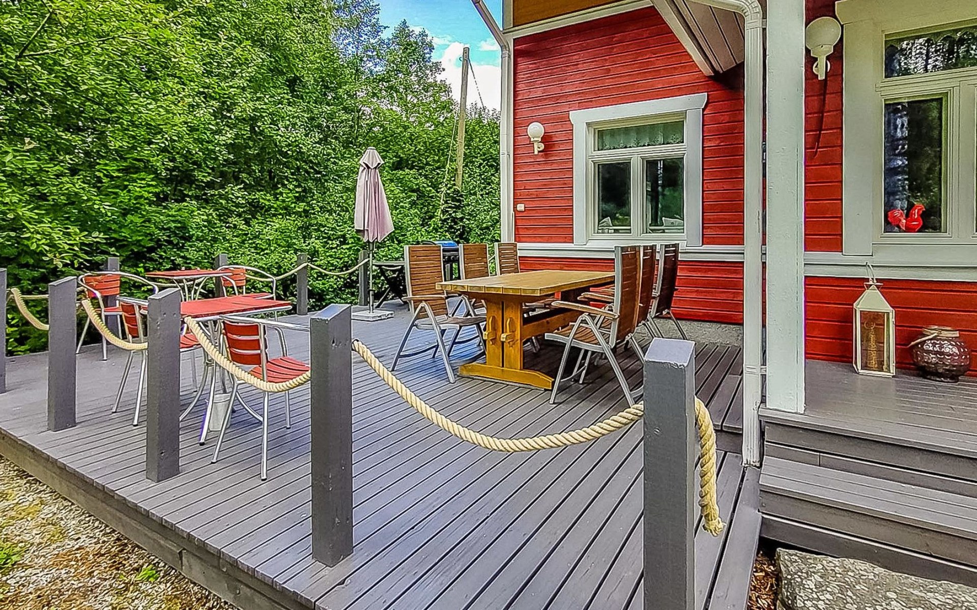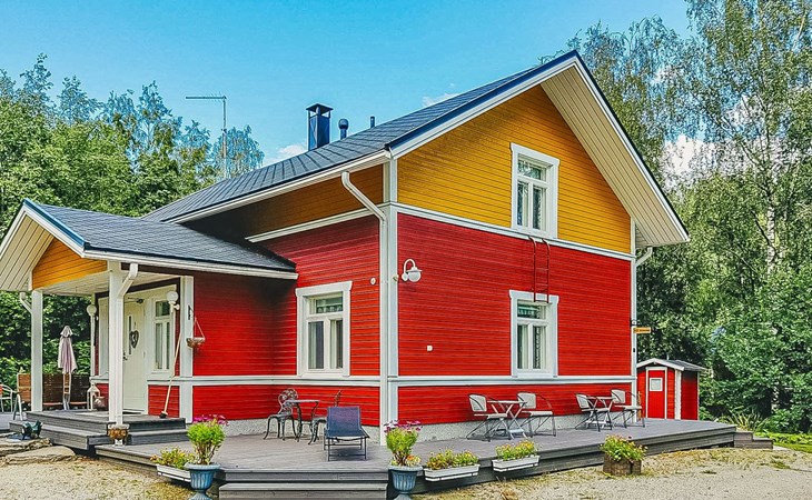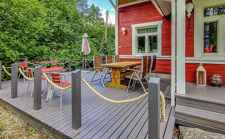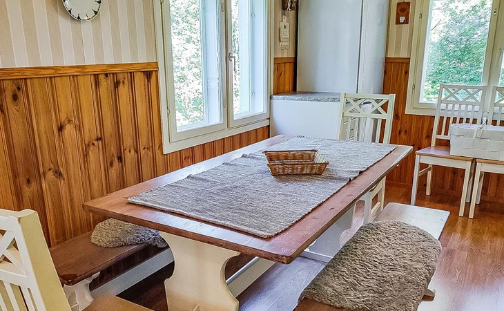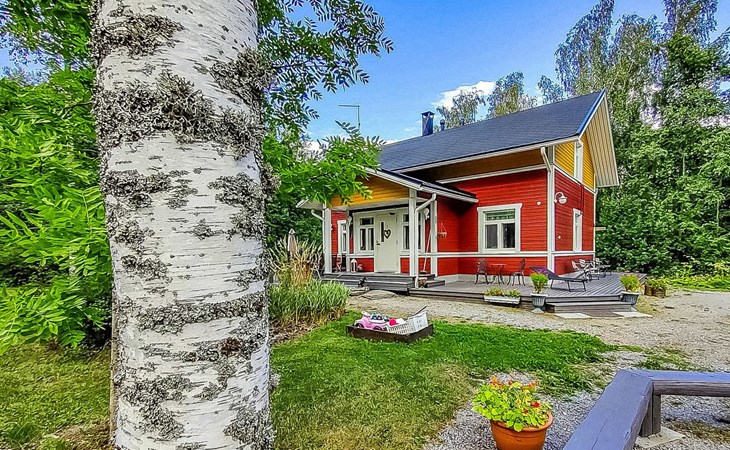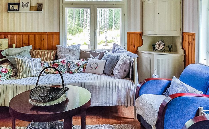 Villa Ahomoisio offers a good quality accommodation even for bigger groups. The villa is furnished with details in a modern country-romantic style. Flat yard front of the villa is ideal for different kind of summer plays and games. There are for example croquet, darts, Mölkky -skittle-throwing game and toys for the children for outside and inside plays.