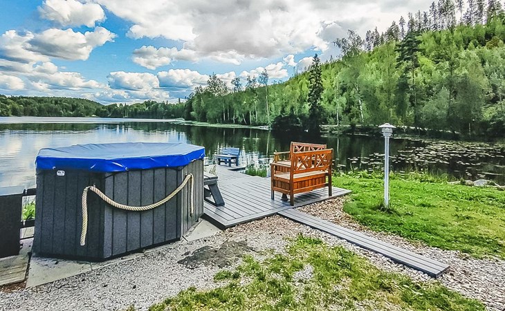 Hot tub for 8 persons available on the lake shore. You can enjoy the spectacular scenery and in between dip from the pier to cool lake water. After that, it's nice to sit by the campfire, watch the lake and listen to the whispers of nature.