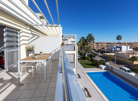 Mascarat: Beautiful apartment block "Residencial Jazmines". In the resort 6 km from the centre of Calpe, on the outskirts, 7 km from the centre of Altea, in a quiet, sunny position, traffic calmed area, 950 m from the sea, 950 m from the beach. For shared use: property (fenced), lawn for sunbathing, beautiful garden to relax, swimming pool (16 x 9 m, seasonal availability: 01.Jan. - 31.Dec.). Outdoor shower. In the house: lift. Supermarket 2.8 km, restaurant 1.8 km, bus stop 5.4 km, sandy beach "Playa Arenal Calpe" 6.5 km, rocky beach "Playa Mascarat" 950 m. Sports harbour 1.8 km, marina 1.8 km, golf course (9 hole) 8.5 km. Nearby attractions: Aqualandia, Mundomar, Terra MÃtica, Terra Natura, Benidorm Palace (Benidorm), Les Fonts de l'Algar, Castillo de Guadalest.