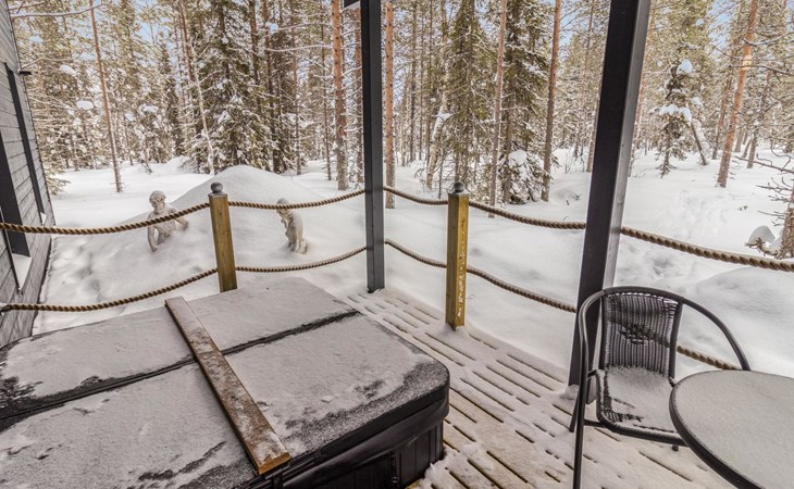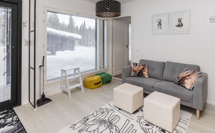 Surrounded by the tranquility of nature throughout the year, our cabin offers easily accessible activities. The ski trail is only about 600 meters away, and the snowmobile trail is just 200 meters from our cabin. Additionally, all necessary services can be found nearby in the Ruka village, less than three kilometers away.