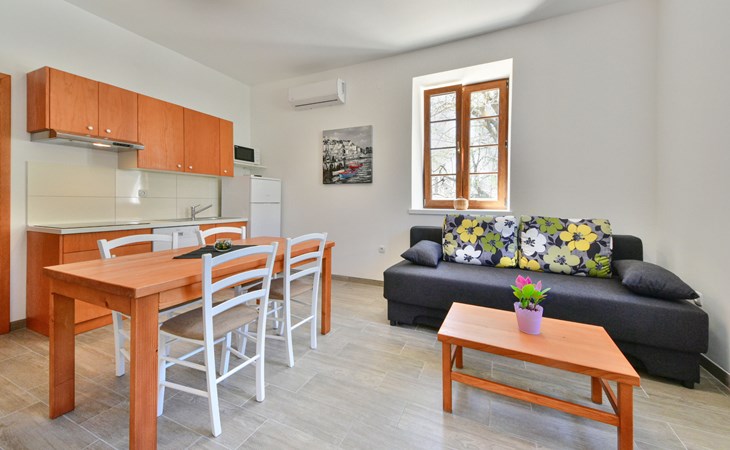 Apartment house "Val", renovated in 2017. In the centre of Sveti Juraj, in a sunny position, 30 m from the sea, 30 m from the beach. In the house: internet access. Public parking. Shop 200 m, restaurant 20 m, bus stop 300 m, pebble beach 30 m.