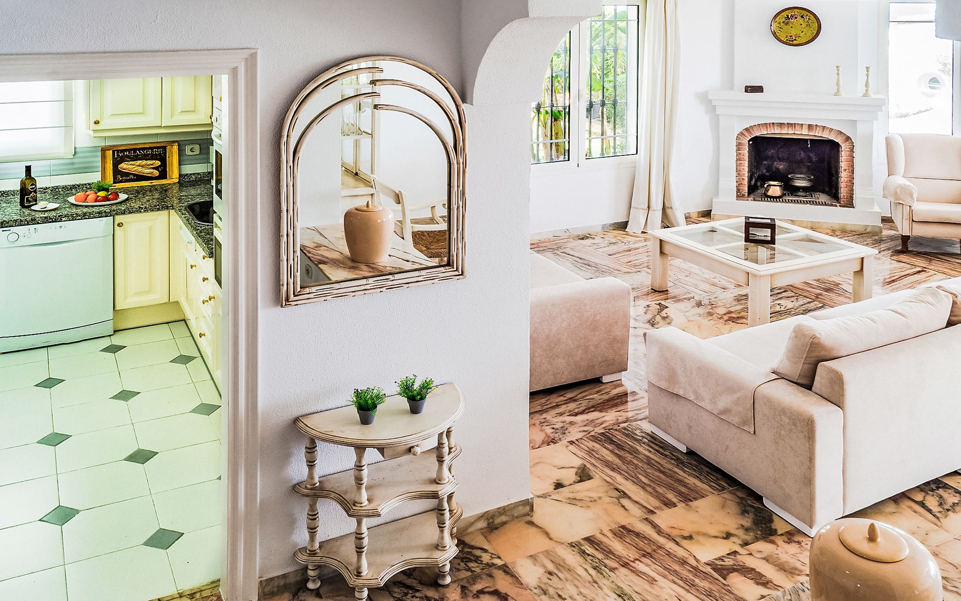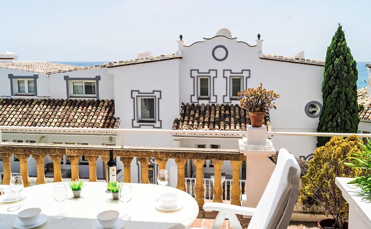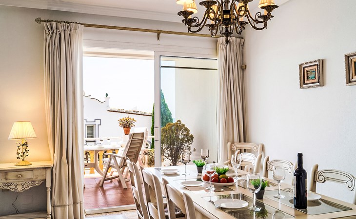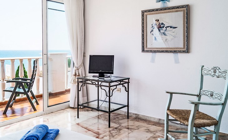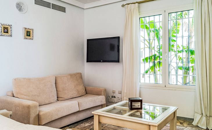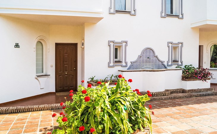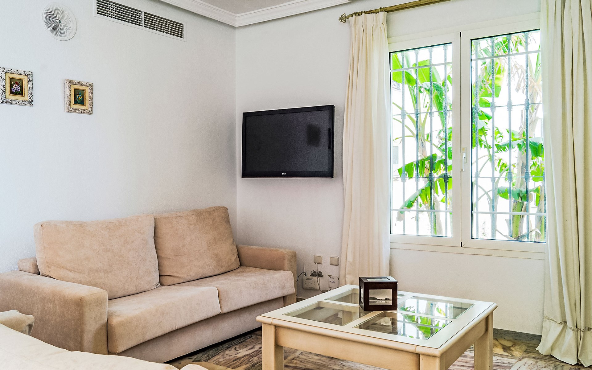 Holiday development "Mijas Beach". 3 km from the centre of La cala de Mijas, 15 km from the centre of Fuengirola, 200 m from the sea, 200 m from the beach. For shared use: garden 10'000 m2, swimming pool (depth 120 - 220 cm, seasonal availability: 15.Mar. - 30.Oct.). Children's pool, tennis, parking. Shop 300 m, supermarket 1 km, restaurant 500 m, bar 1 km, bus stop 20 m, sandy beach 200 m. Please note: part of the house is closed and unoccupied. Main road 30 m from the property. Neighbourhood highly sensitive to noise. Quietness and good behaviour expected.