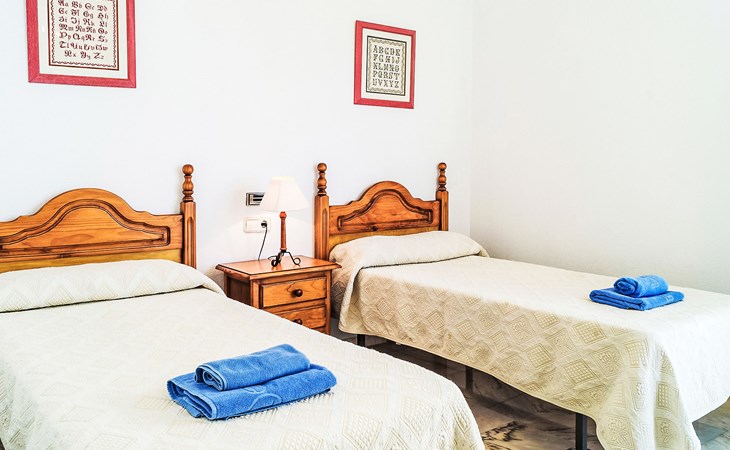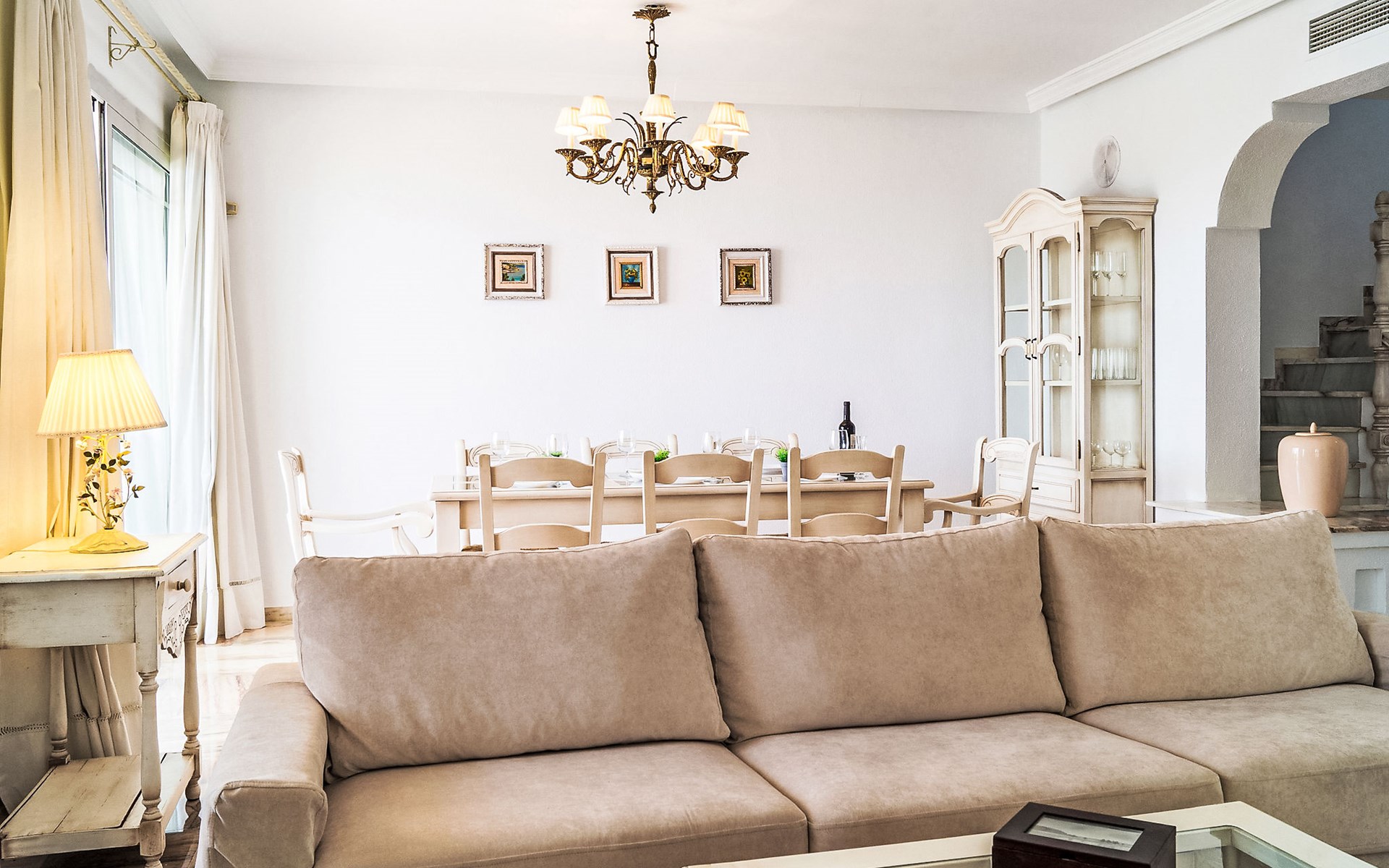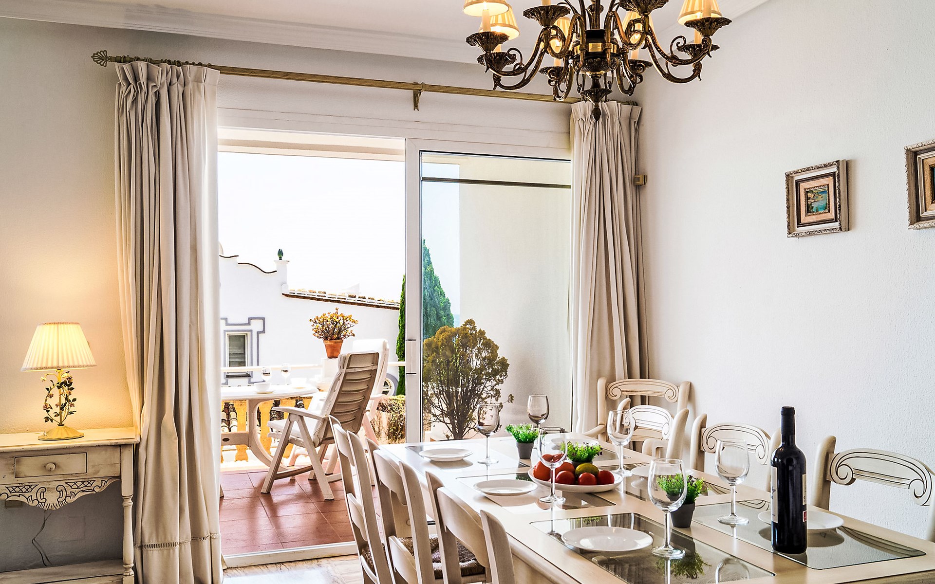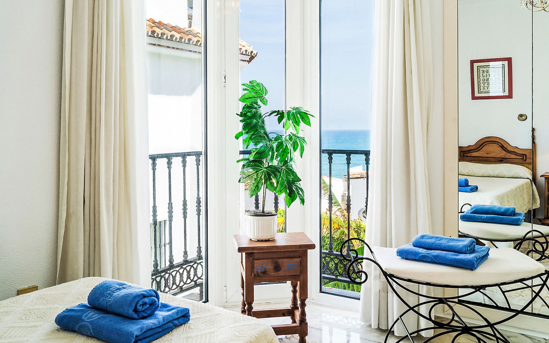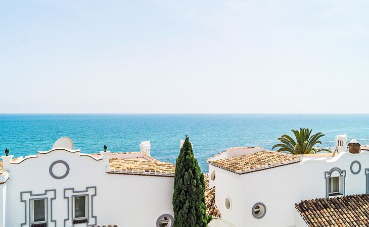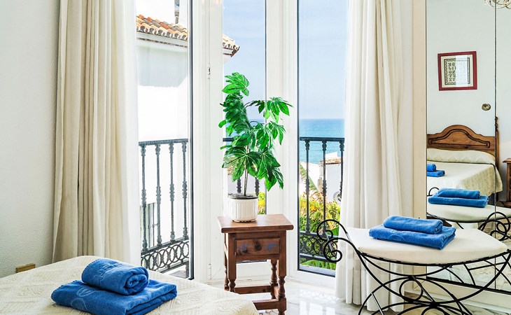 Holiday development "Mijas Beach". 3 km from the centre of La cala de Mijas, 15 km from the centre of Fuengirola, 200 m from the sea, 200 m from the beach. For shared use: garden 10'000 m2, swimming pool (depth 120 - 220 cm, seasonal availability: 15.Mar. - 30.Oct.). Children's pool, tennis, parking. Shop 300 m, supermarket 1 km, restaurant 500 m, bar 1 km, bus stop 20 m, sandy beach 200 m. Please note: part of the house is closed and unoccupied. Main road 30 m from the property. Neighbourhood highly sensitive to noise. Quietness and good behaviour expected.