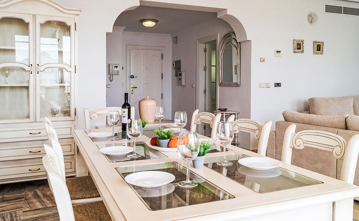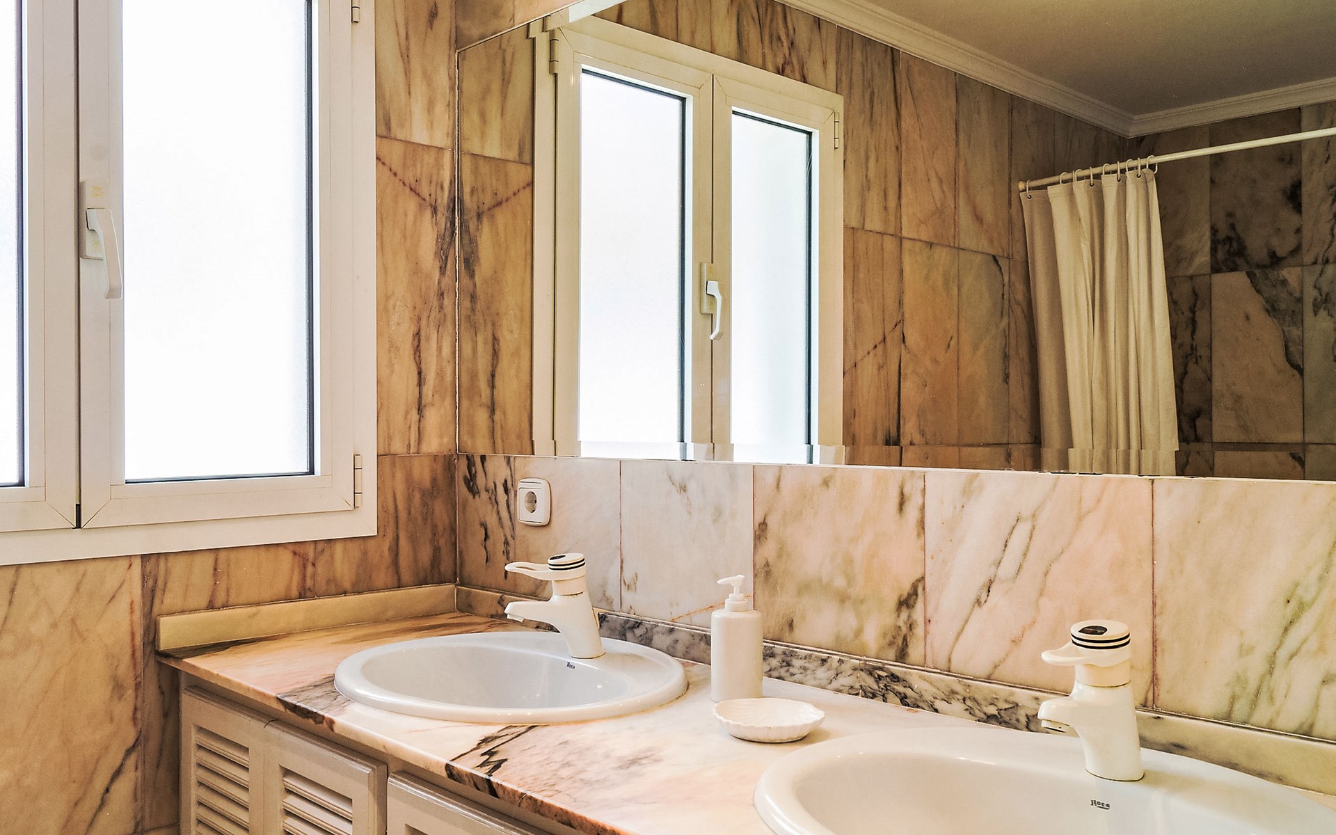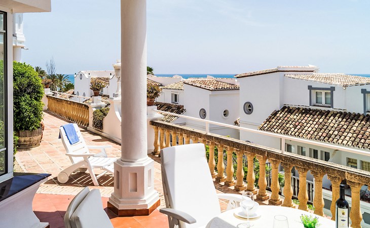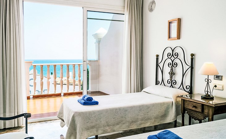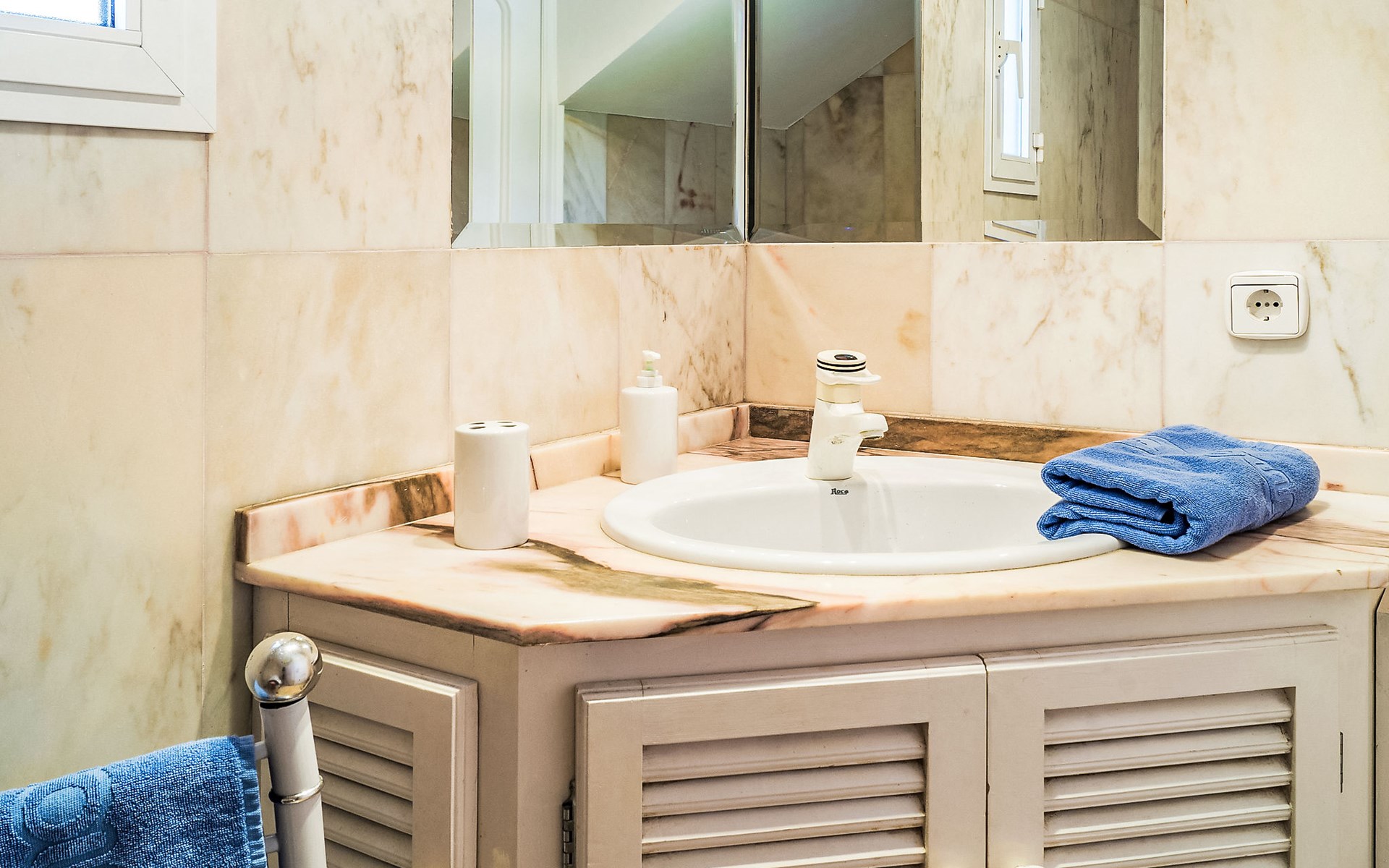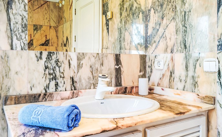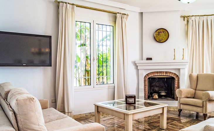Holiday development "Mijas Beach". 3 km from the centre of La cala de Mijas, 15 km from the centre of Fuengirola, 200 m from the sea, 200 m from the beach. For shared use: garden 10'000 m2, swimming pool (depth 120 - 220 cm, seasonal availability: 15.Mar. - 30.Oct.). Children's pool, tennis, parking. Shop 300 m, supermarket 1 km, restaurant 500 m, bar 1 km, bus stop 20 m, sandy beach 200 m. Please note: part of the house is closed and unoccupied. Main road 30 m from the property. Neighbourhood highly sensitive to noise. Quietness and good behaviour expected.