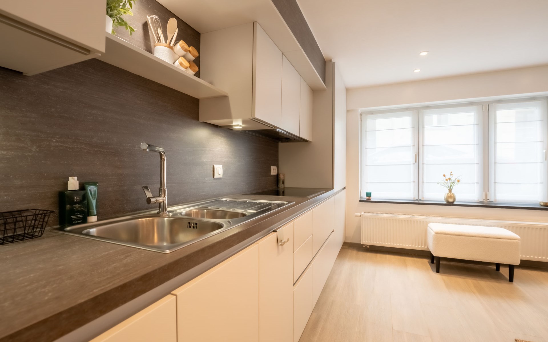 Residence "Villa George", 3 storeys, terraced. 800 m from the centre of Oostende, 500 m from the sea, from the beach. Grocery 100 m, supermarket 300 m, restaurant 200 m, bar 300 m, bakery 100 m, sandy beach "Oostende Strand" 500 m, indoor swimming pool 2 km. Golf course (9 hole) 1 km, surf school 900 m, tennis 500 m, minigolf 600 m. Nearby attractions: Wellington hippodroom 1 km, Kinepolis 1 km, Casino Oostende 1 km, Brugge 25 km, Plopsaland De Panne 30 km.