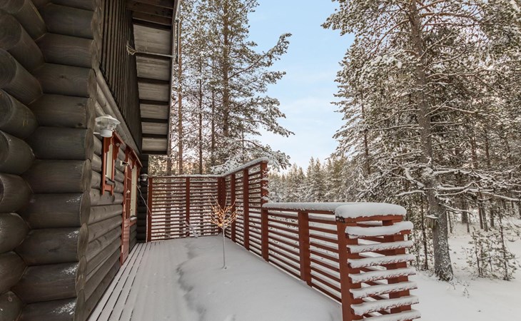 2.5 km to the Äkäslompolo village. In Äkäslompolo there are services like shops and restaurants. During the winter season, a trip to the village can be made even with a kick sled, which is freely available to guests during the winter season. Only about a kilometer from the cabin (near the popular café Navettagalleria in Karila area), magnificent outdoor routes directly to the national park and the fell area. The nearest peak to explore is Kukastunturi peak. During winter season 4 pairs of snowshoes in guests' use. Illuminated cross-country ski trails and snowmobile trails also run close to the holiday cabin (cross-country ski trails are within 300 m and snowmobile trails are within 1 km).