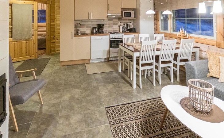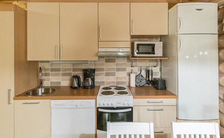 The cabin has 2 bedrooms, one with double bed and another with 2 single beds. Living room-kitchen, washroom/WC, sauna (electric sauna stove). Fiber optic connection (Wi-Fi) brings comfort to your holiday.