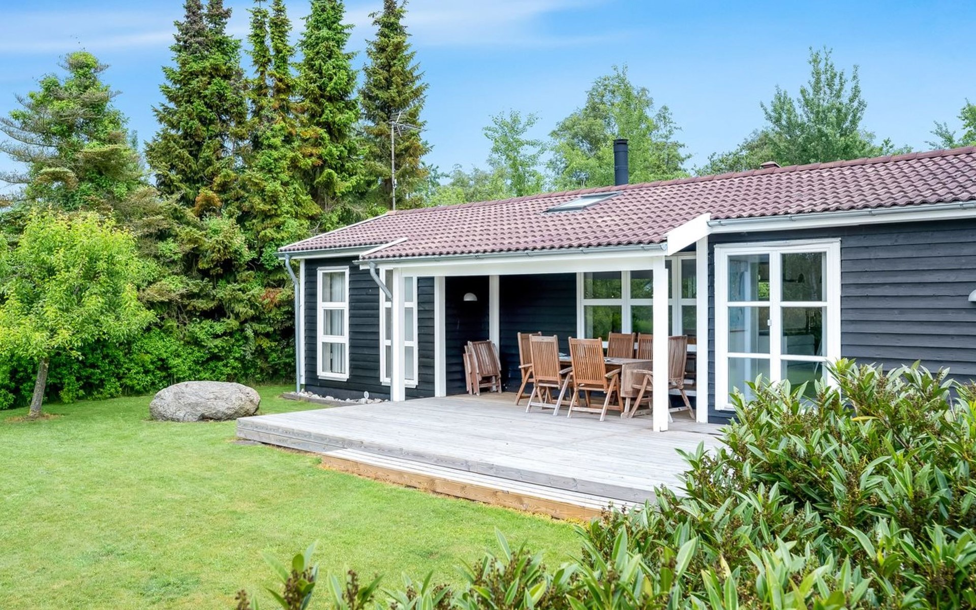 Single-family house, built in 1998. 500 m from the sea. Private: property 1'100 m2, well-kept garden. Outdoor shower, barbecue, children's playground (swing). In the house: washing machine. Parking at the house. Grocery 4 km. The owner does not accept any youth groups.