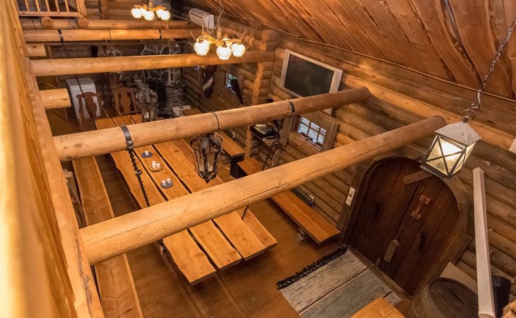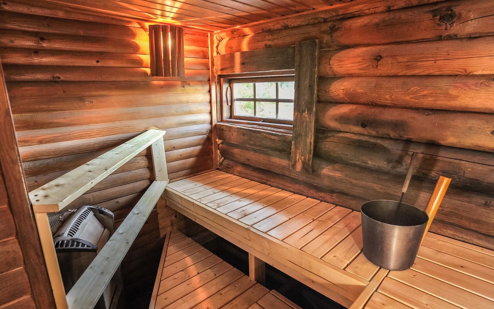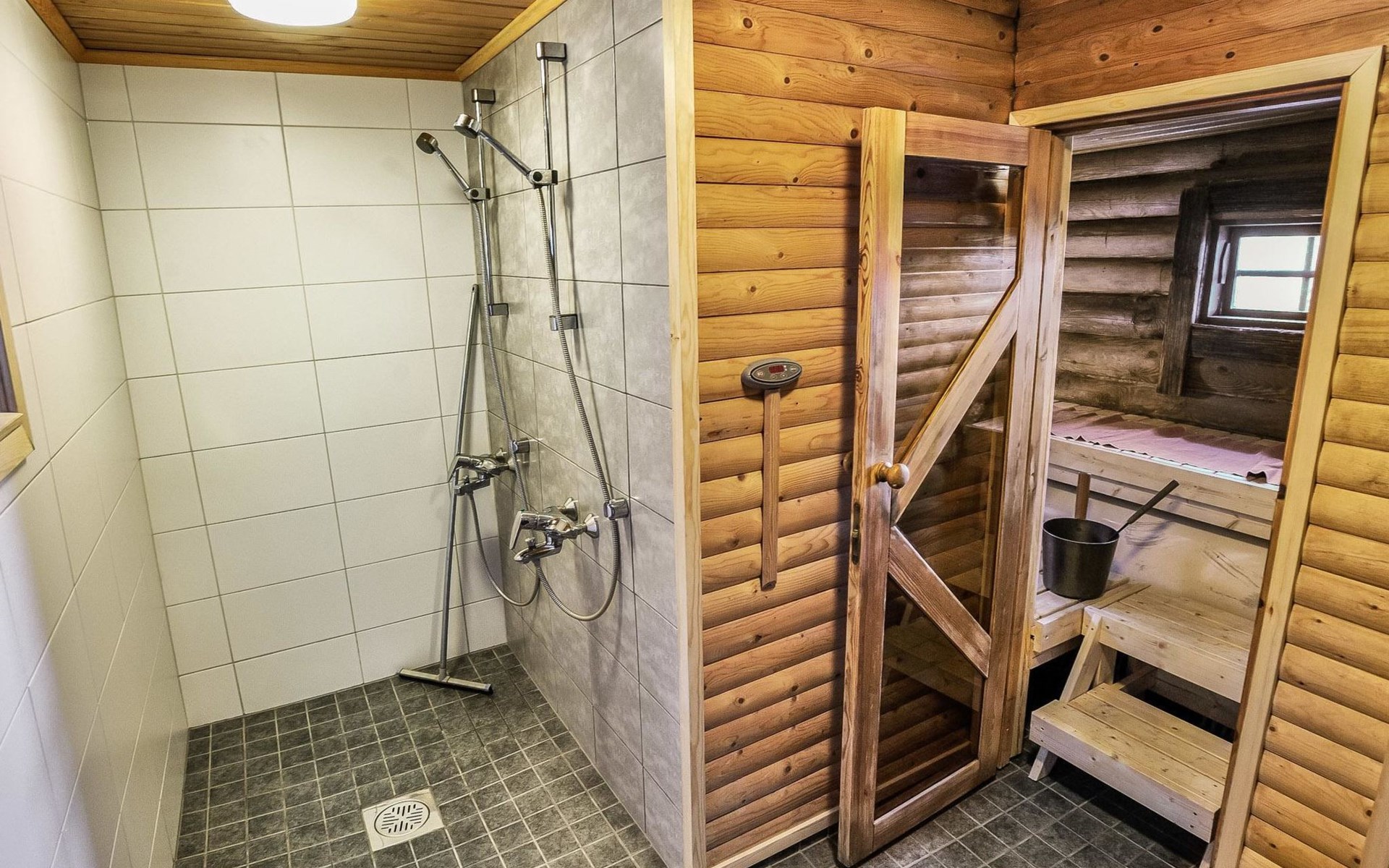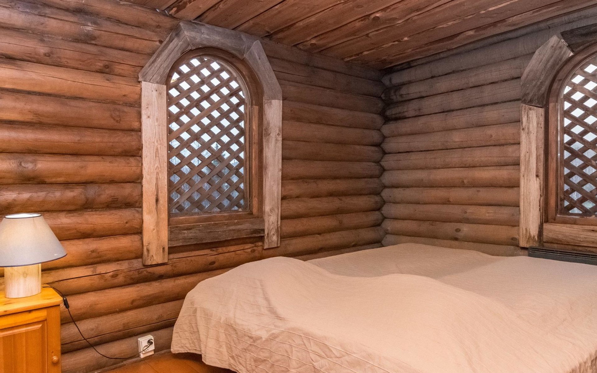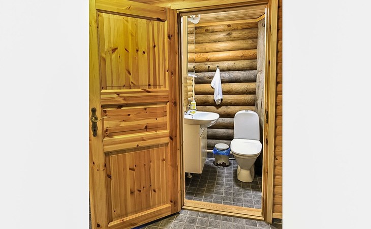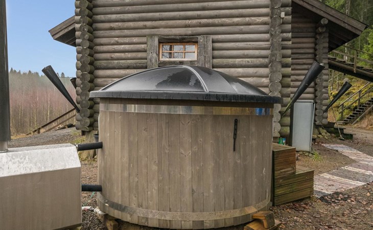 Log cabin 2006, living room/kitchen 8 extra beds (bunk for 8 persons), bedroom 2 beds, second bedroom 2 beds, sleeping loft 5 extra beds, sauna (electric sauna stove), washroom (2 x shower), open porch, 2 towers. Toilet on the upper floor and ground floor. A separate underground smoke sauna on the hill and hot tub can be rented separately.