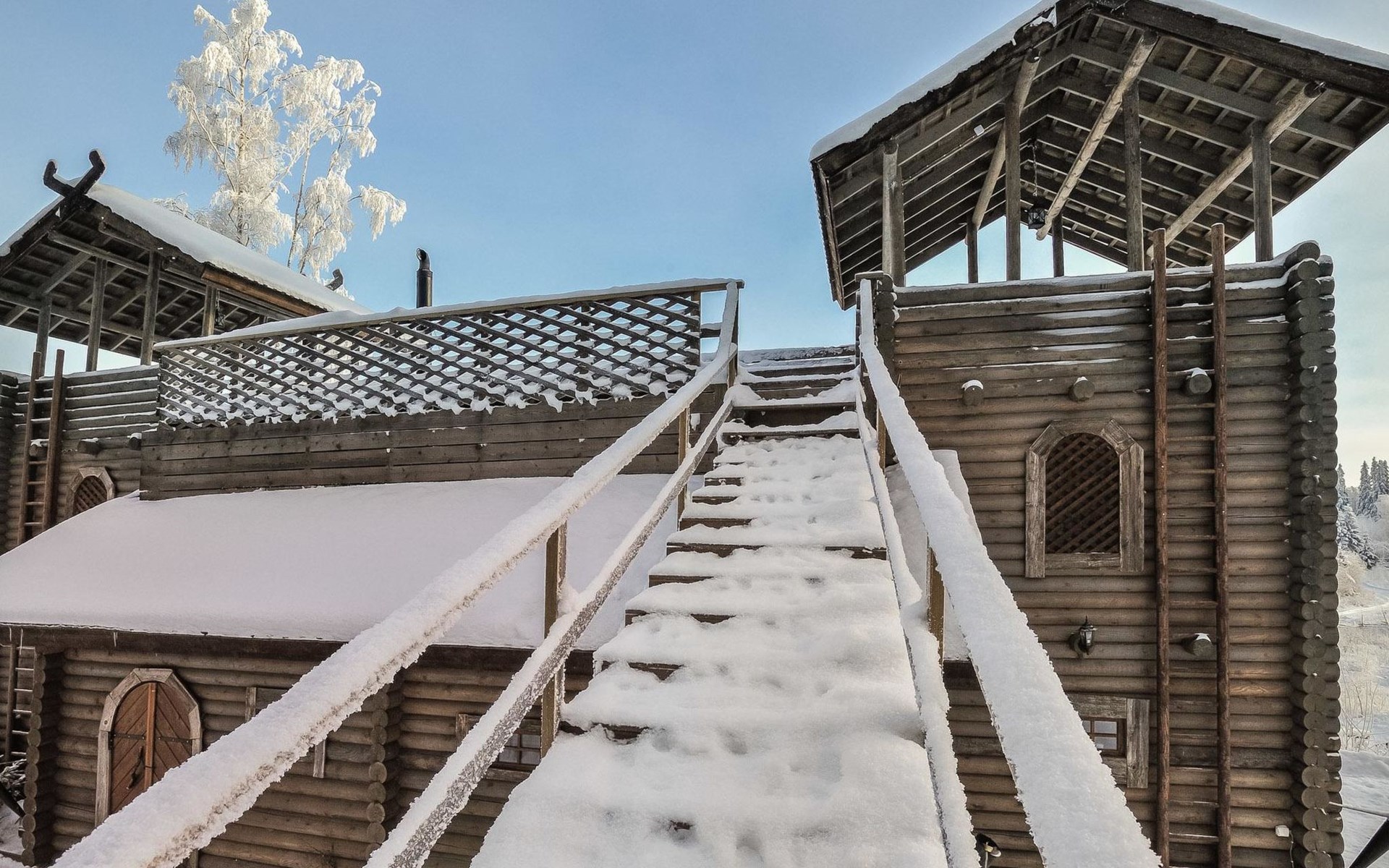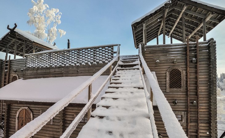 The two towers of the castle can also be accessed from the outside. Next to the castle there is a lean to shelter, where you can cook by the campfire and fry the salmon. Firewood is included in the price. The yard area of the castle is mainly in a natural state.
