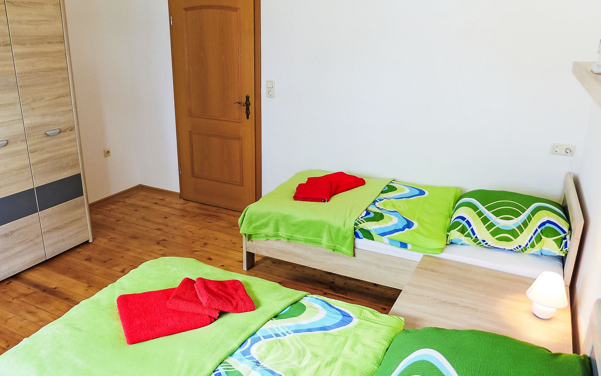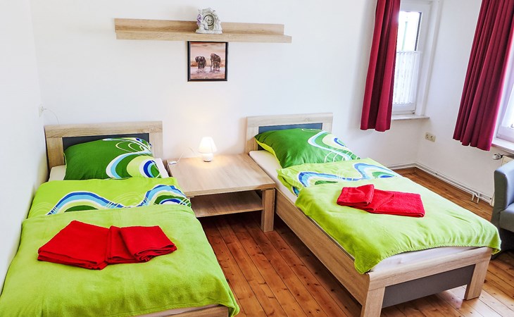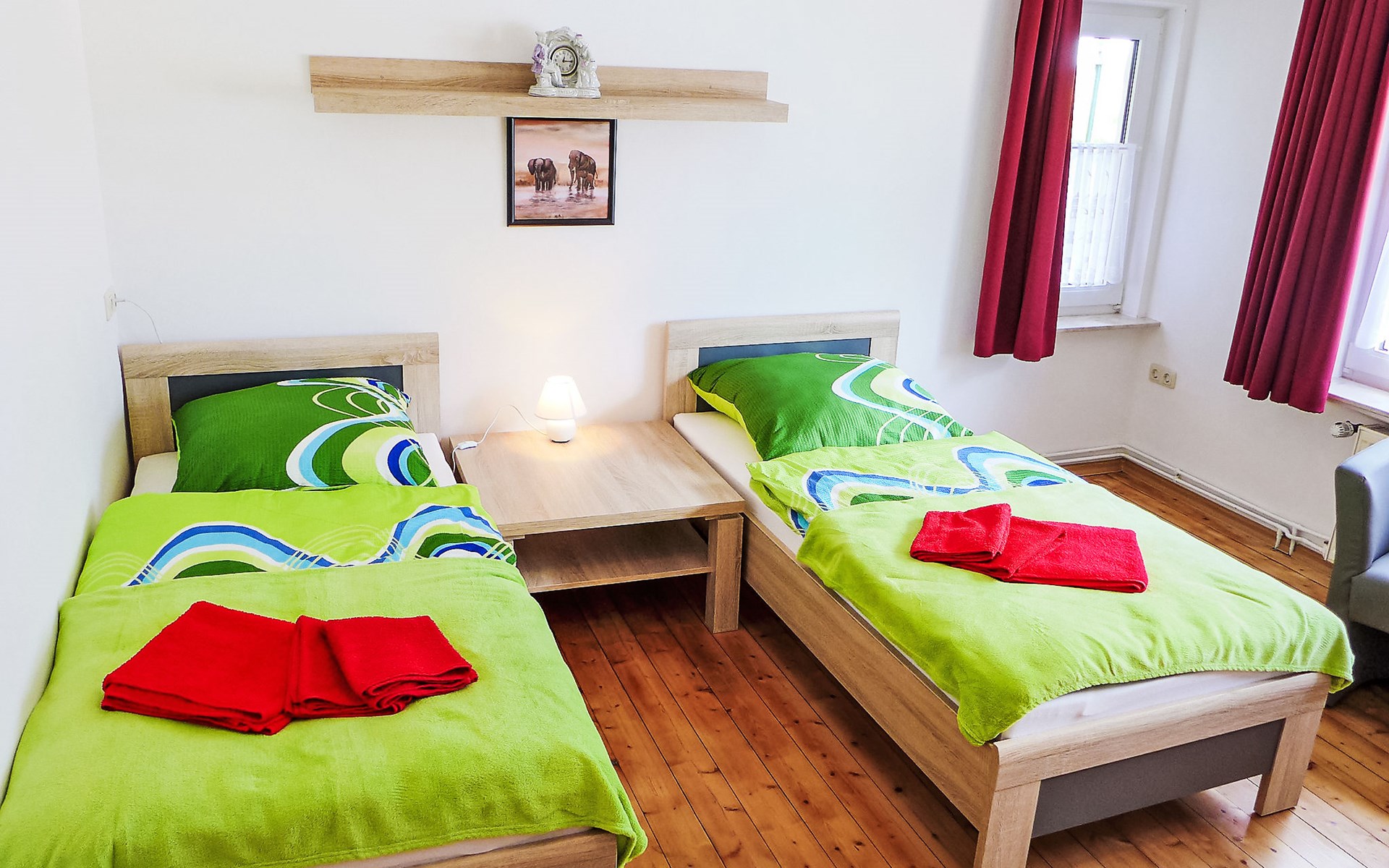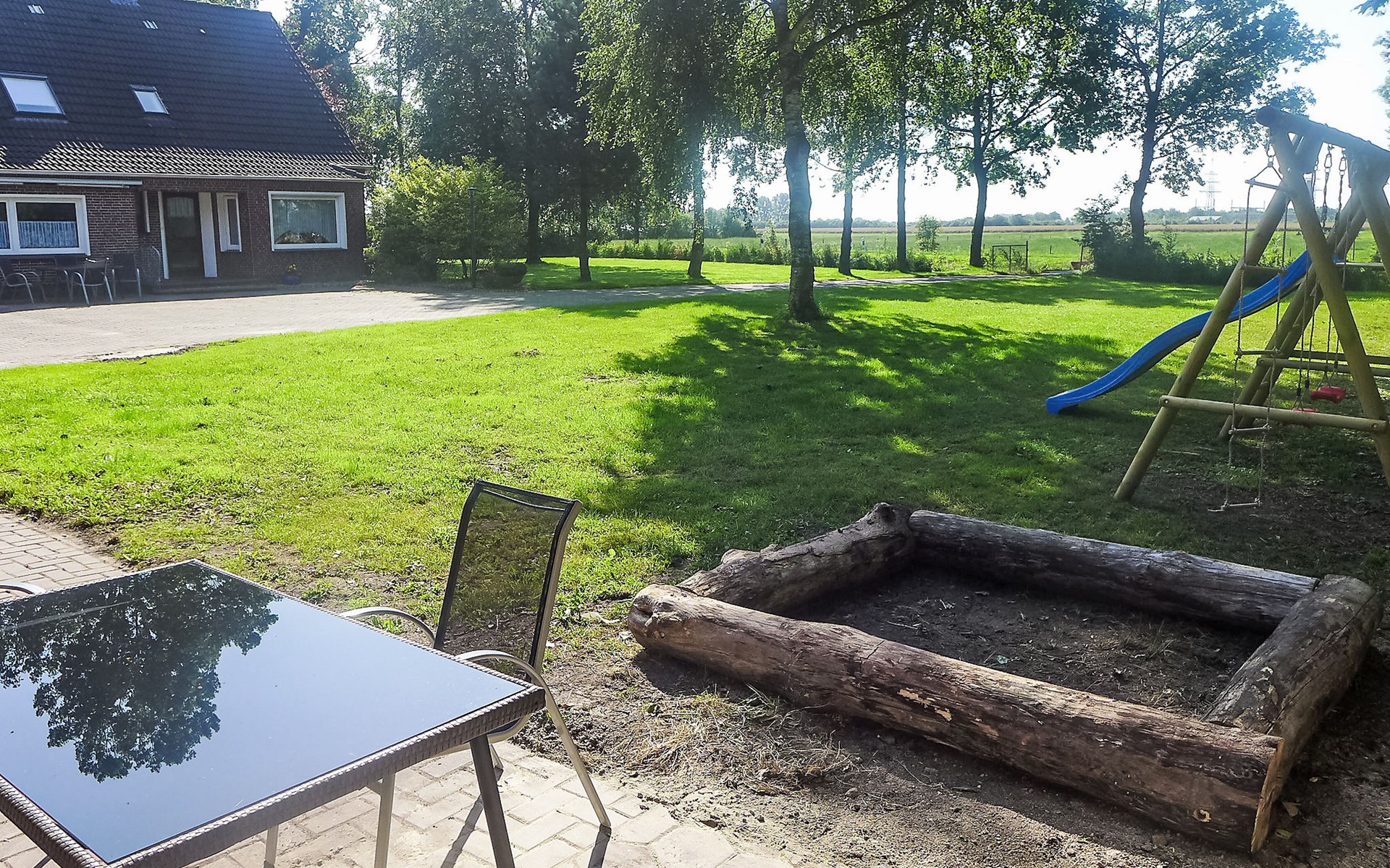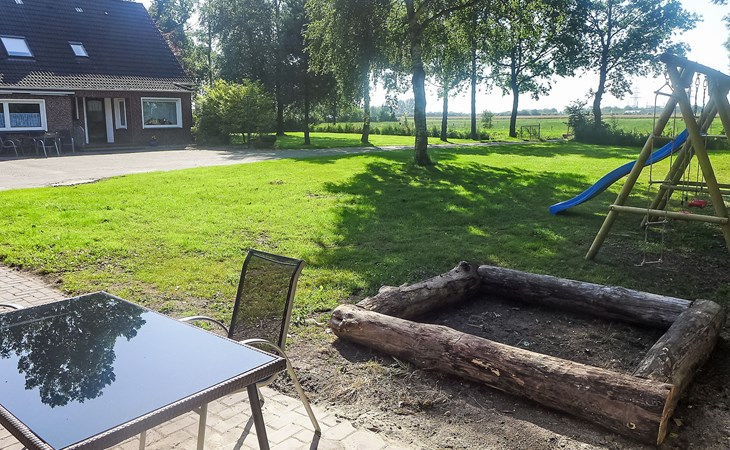 Halbemond 6 km from Hage: 2-family house "Landblick", detached, surrounded by meadows and fields. In a quiet position, 12 km from the sea, 12 km from the beach. For shared use: large garden with lawn. Children's playground (swing). In the house: central heating system. Parking at the house. Shop 5 km, supermarket 5 km, restaurant 1.4 km, bakery 1.4 km, café 1.4 km, bus stop 5 m, ferry 11 km, sandy beach 12 km, outdoor swimming pool 9 km, indoor swimming pool 7 km. Golf course (18 hole) 7 km, surf school 12.5 km. Please note: car recommended.