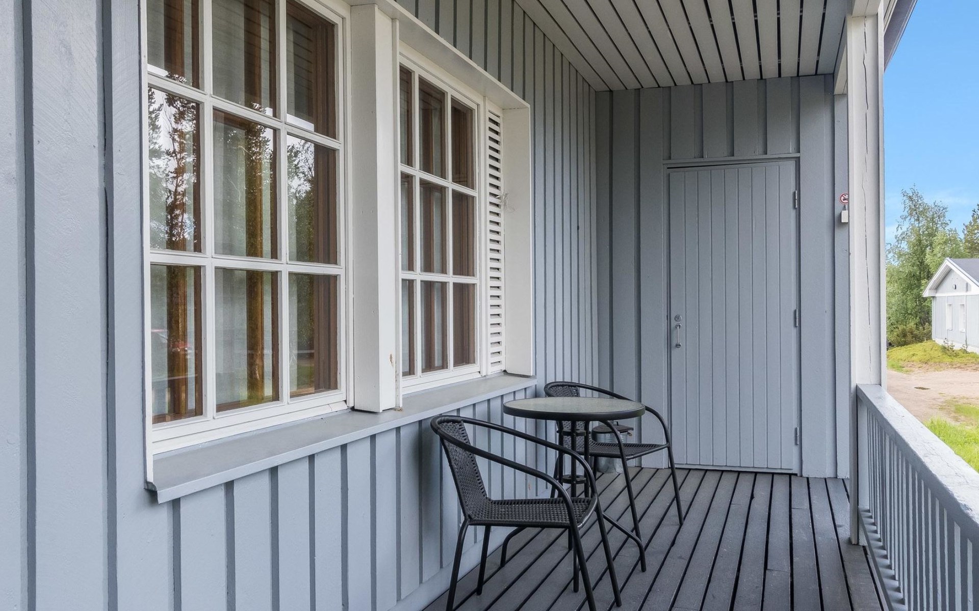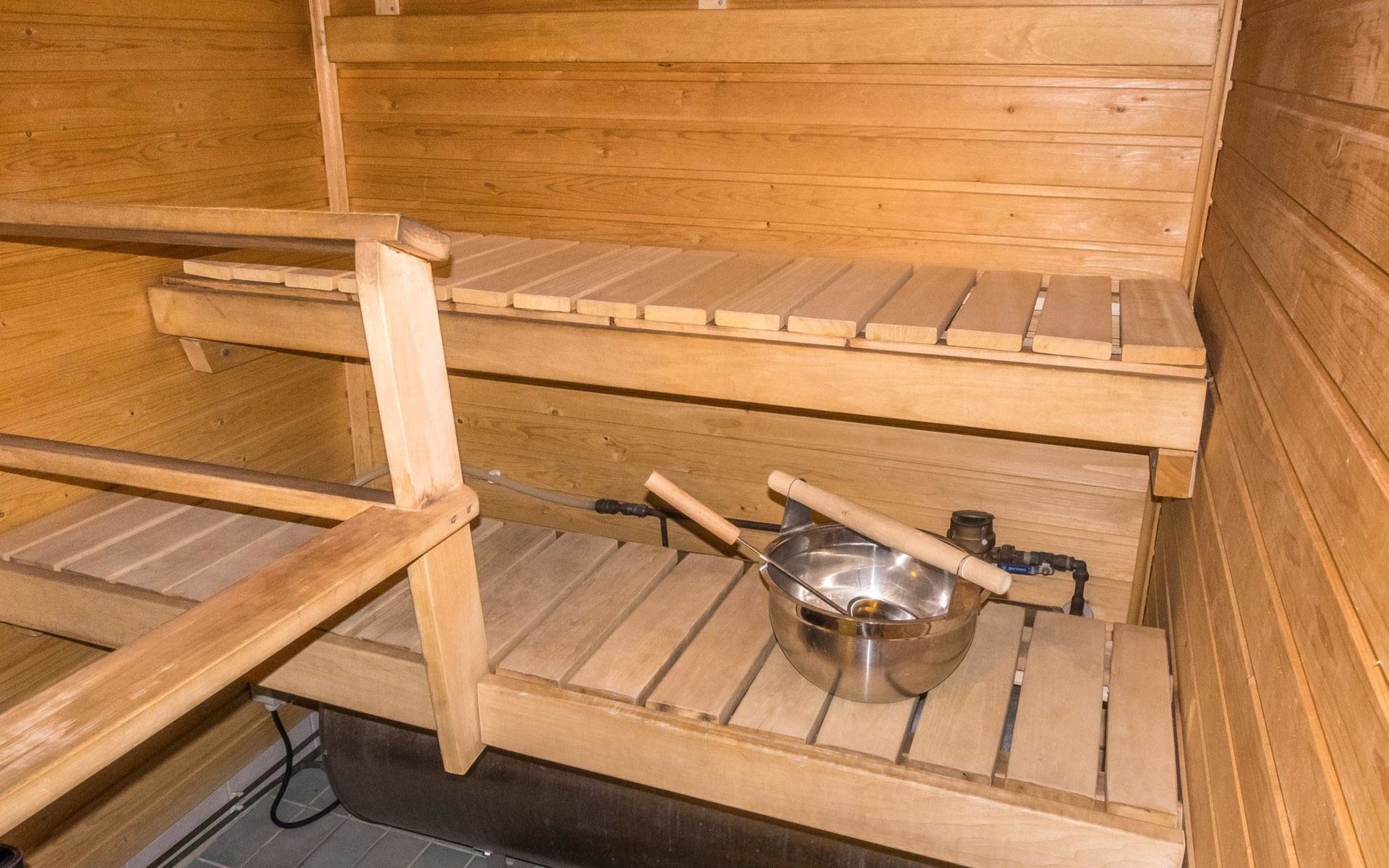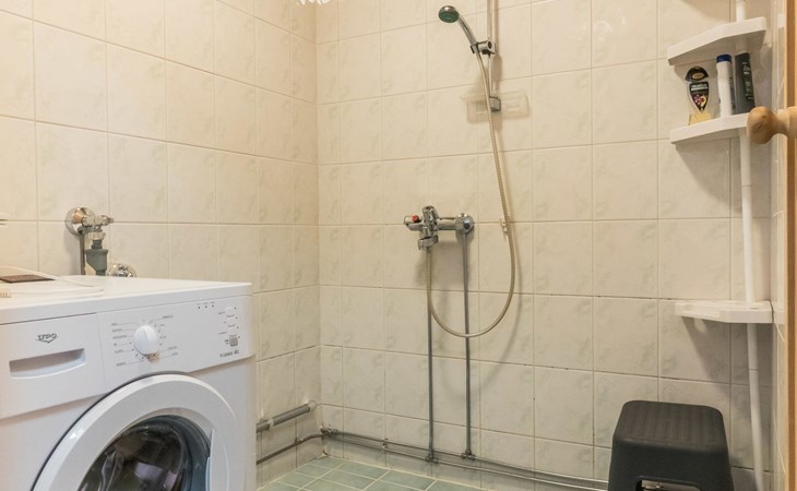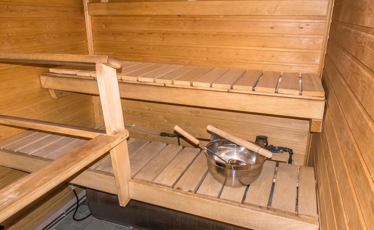 Sauna, washroom, separate WC, outdoor storage room and small covered terrace.