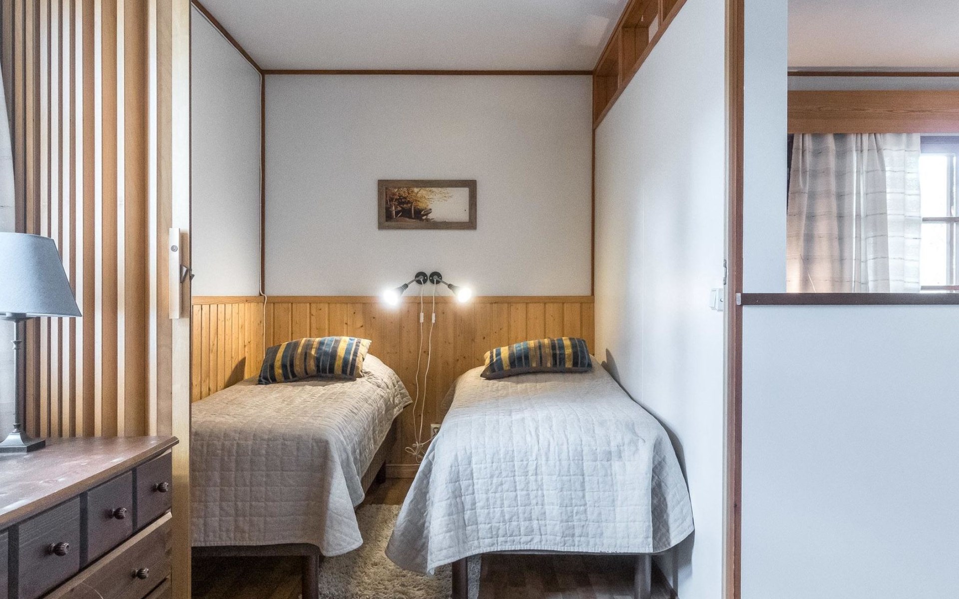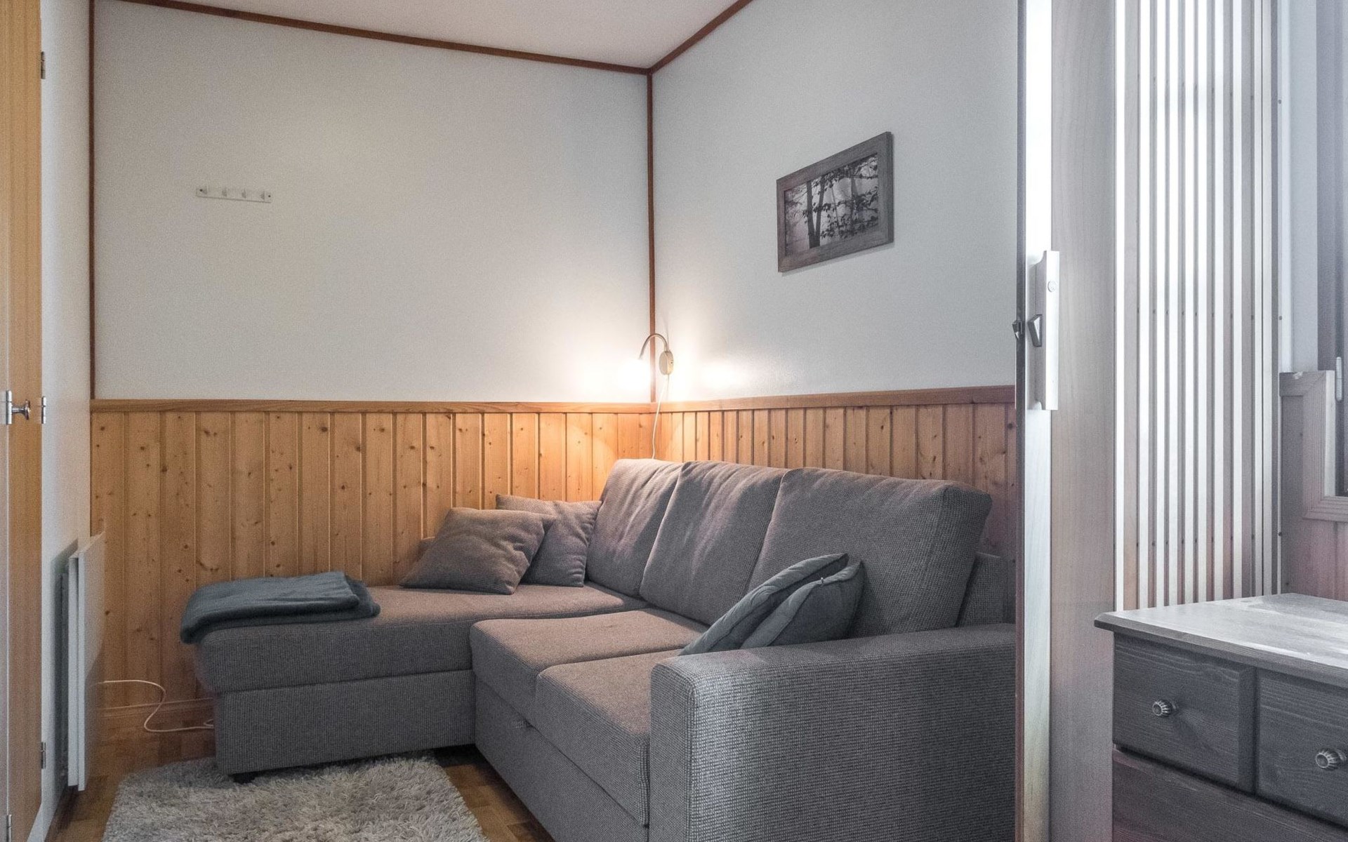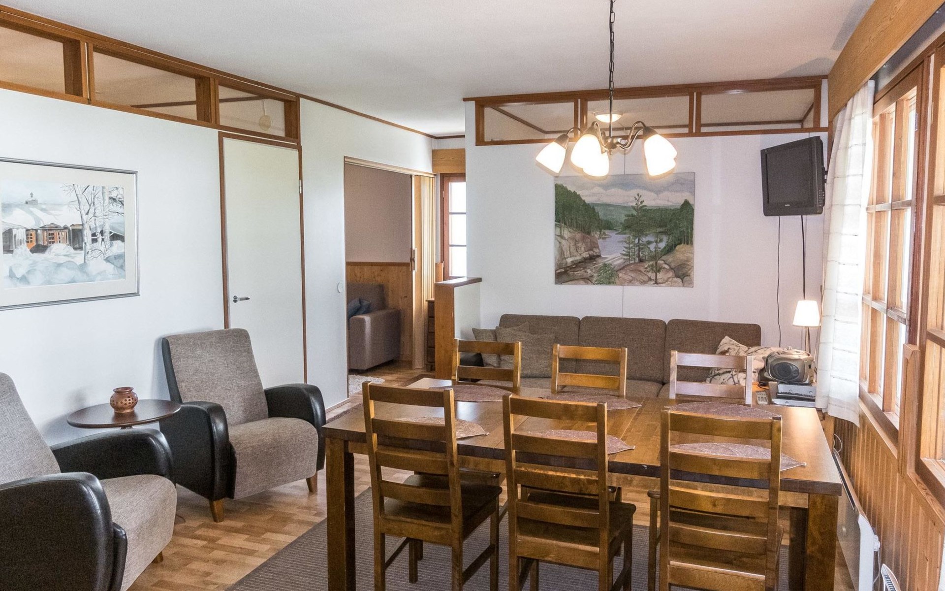 Wooden gable apartment in a row house, built in 1980, renovated in 2012.