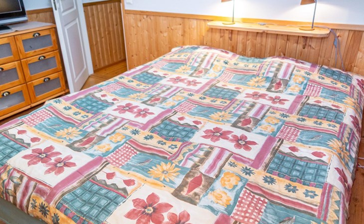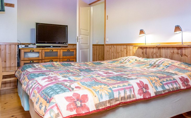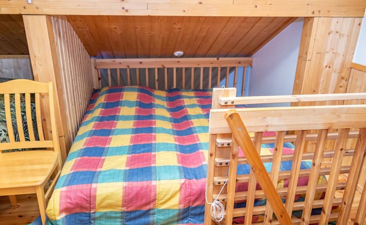Downstairs, a spacious bedroom with a double bed, upstairs a bedroom with 2 beds and a double bed and 2 mattresses in the loft, separate toilet. There is also another TV upstairs. Wifi 4G