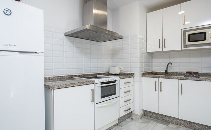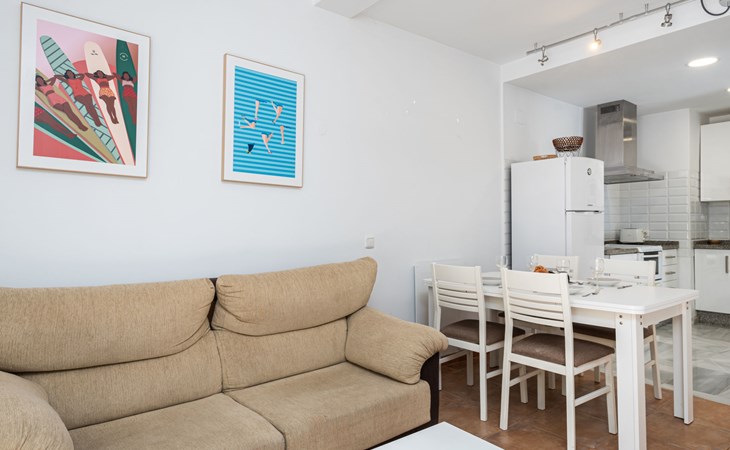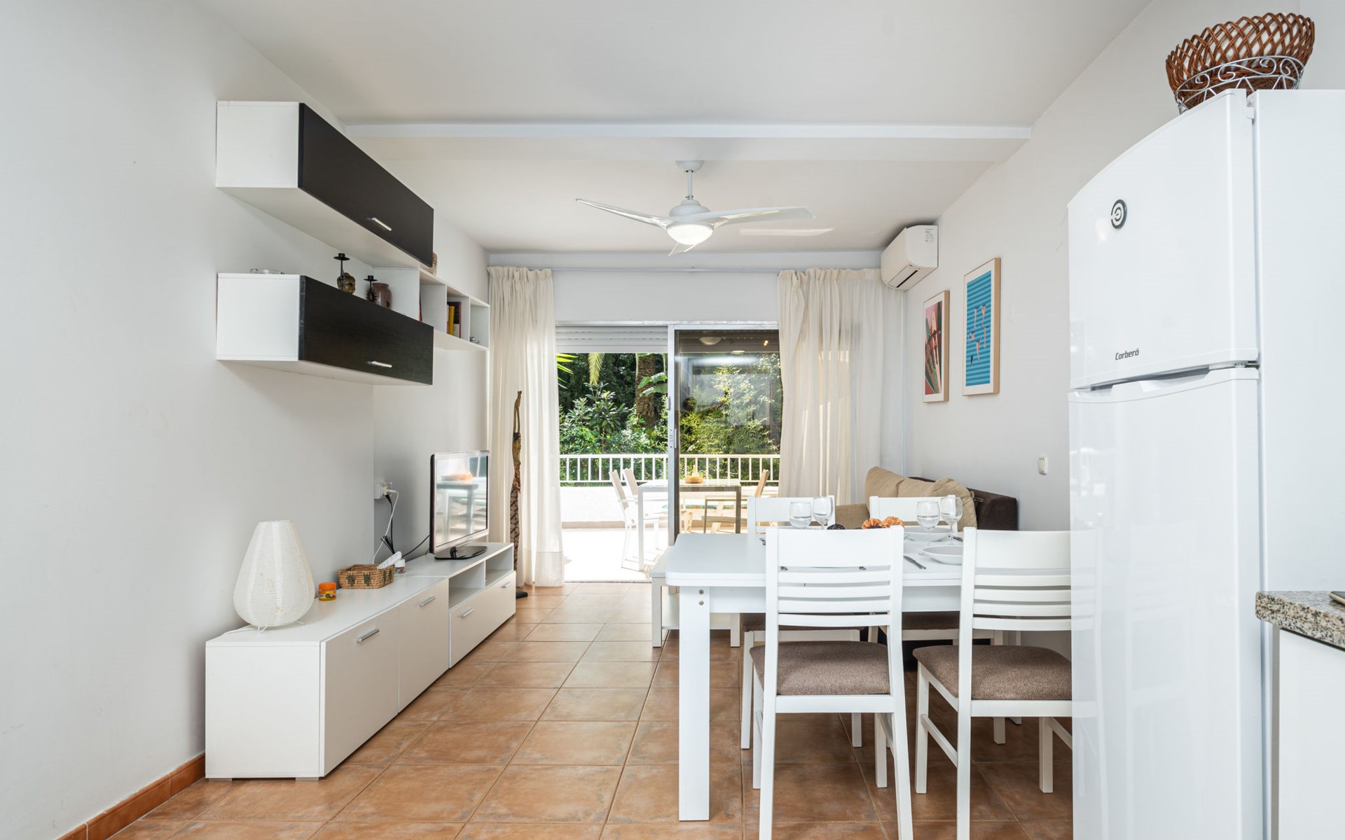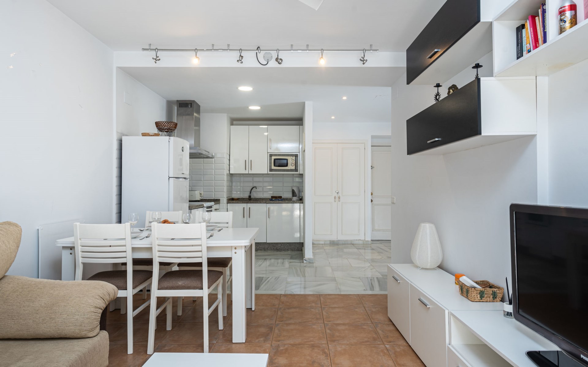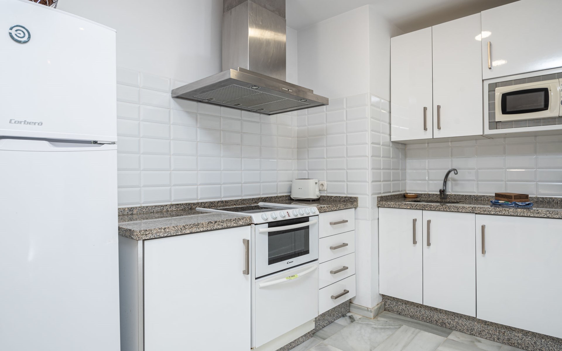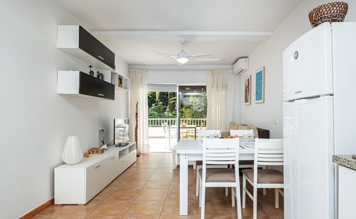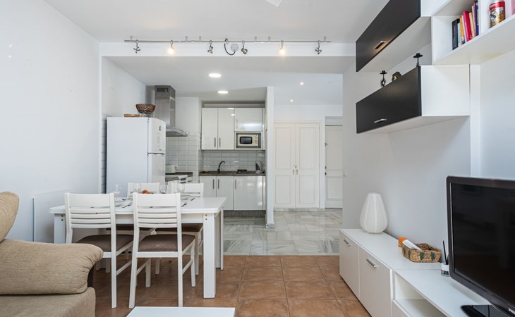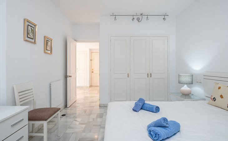 Residence "Jardines Del Mar". In the resort Marbella, excellent location: right in the centre but still quiet, 100 m from the sea. For shared use: garden with lawn and trees, swimming pool (seasonal availability: 15.Jun. - 15.Sep.). Children's pool, table tennis. In the complex: lift. Parking. Shop 200 m, restaurant 50 m, bus stop 100 m, sandy beach. Tennis 100 m. Please note: the complex has night security.
