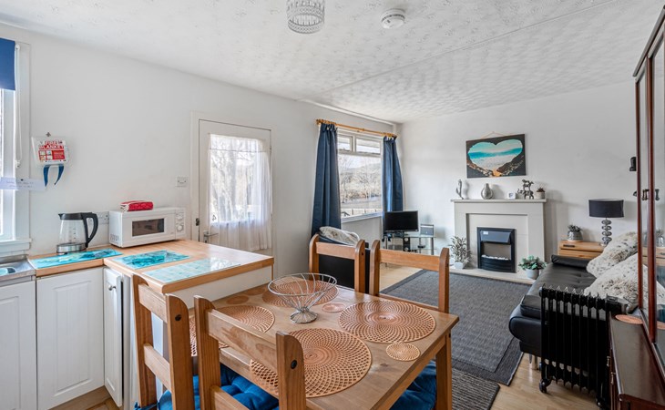 Strathpeffer 30 km from Inverness: Small, simple semi-detached house "Riverside". In a quiet position. In the house: washing machine (extra), tumble dryer (for shared use, extra). Parking. Shop 200 m, bar 500 m, bus stop "Contin" 160 km, railway station "Dingwall" 12 km. Nearby attractions: On-site Beauty and Massage Treatments, Inverness 30 km, Urquhart Castle 30 km, Loch Ness 30 km. ,**Strictly no workers or same sex parties allowed** The property is located on a campsite.