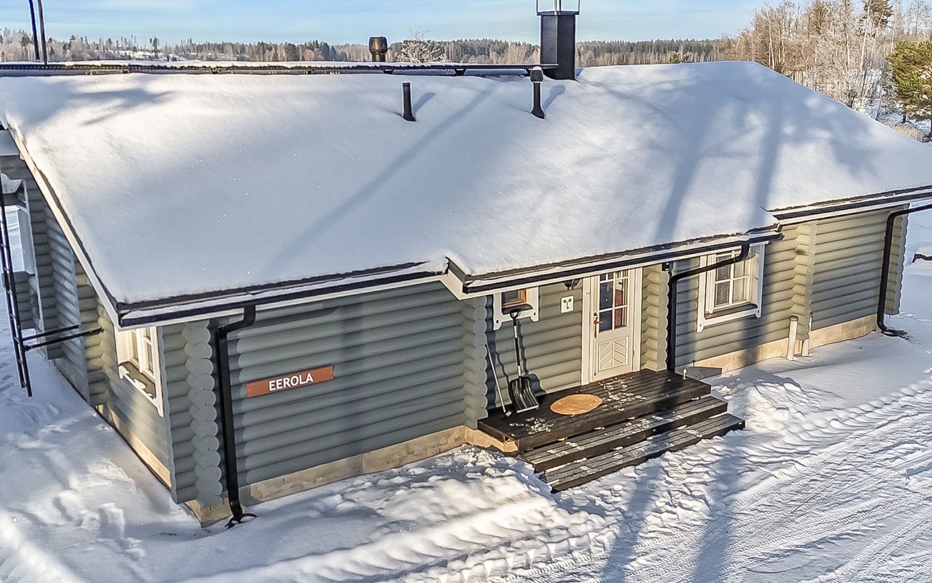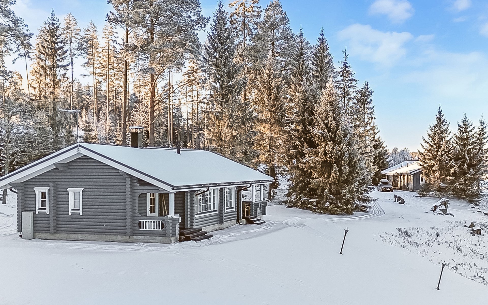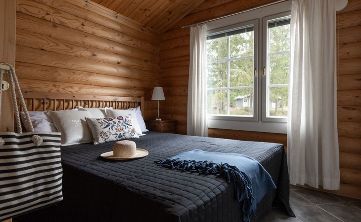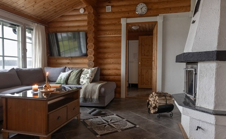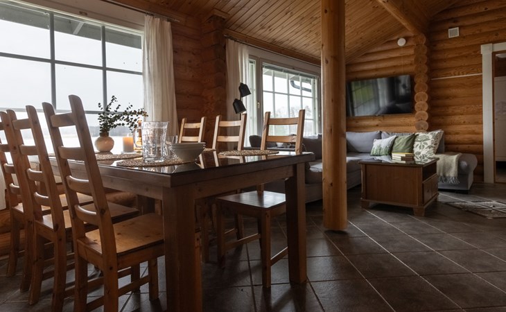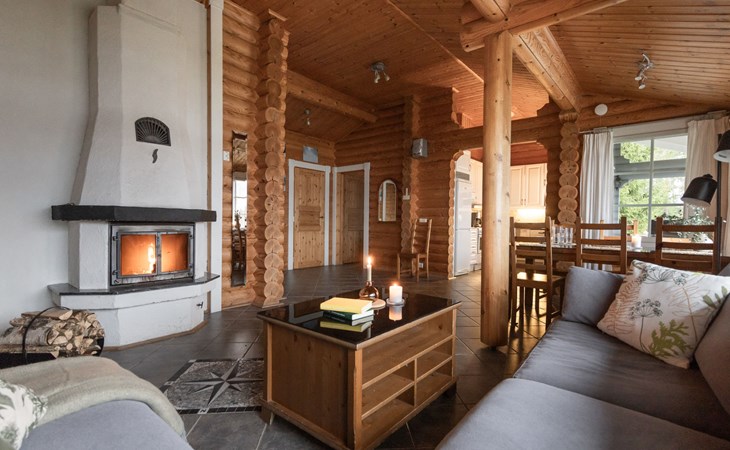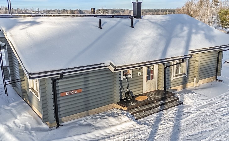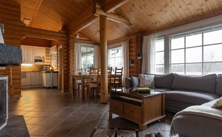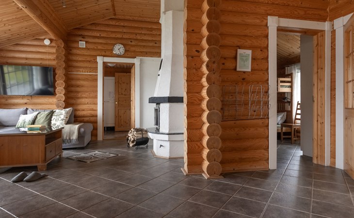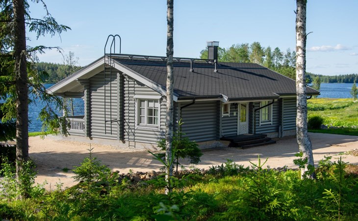 Log cottage 2005, living area 103 m², including kitchen, living room alternatively 2 extra beds, bedroom 2 bunks, bedroom double bed, dressing room, washroom, sauna (elec. stove), open porch.
