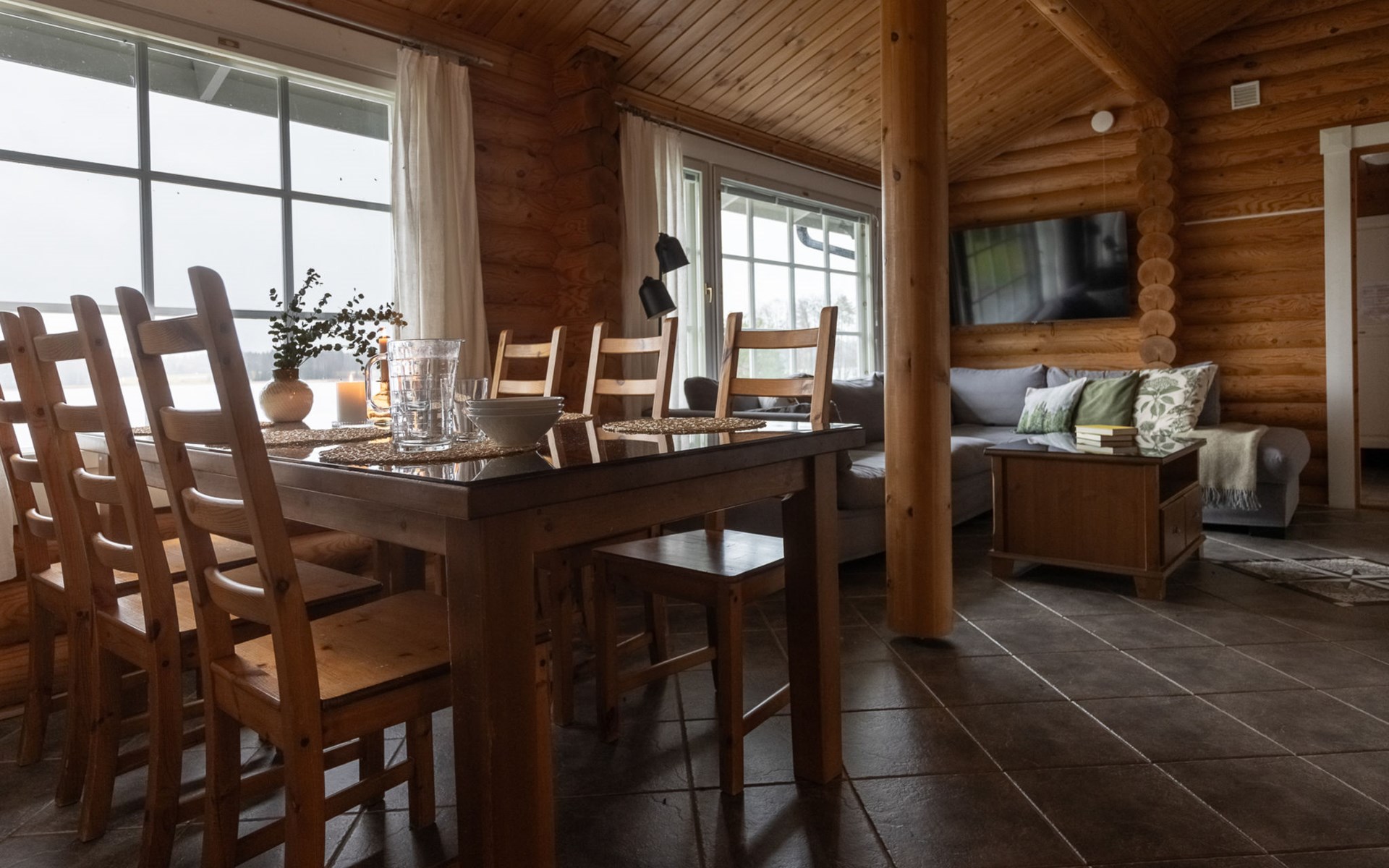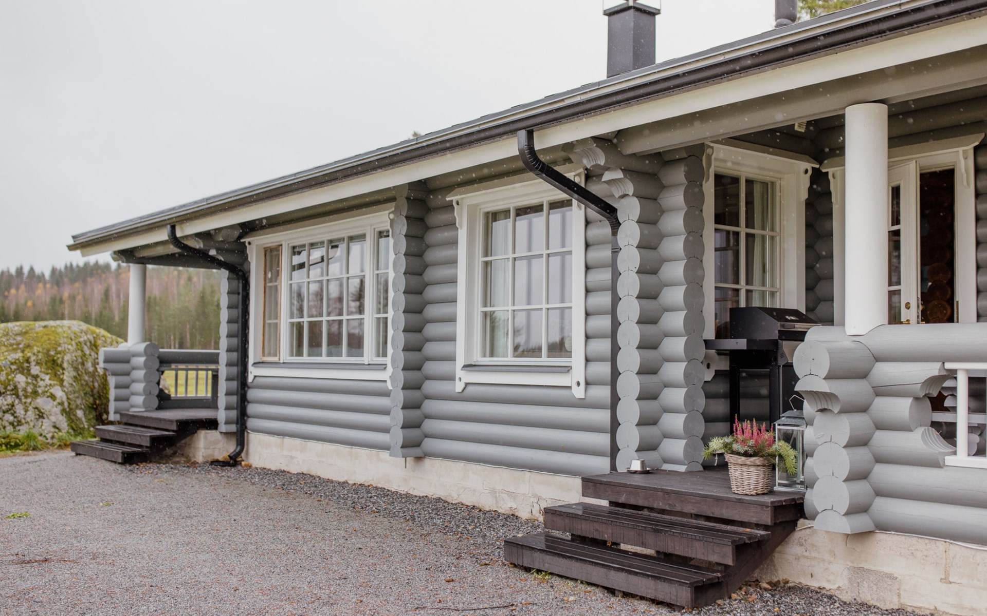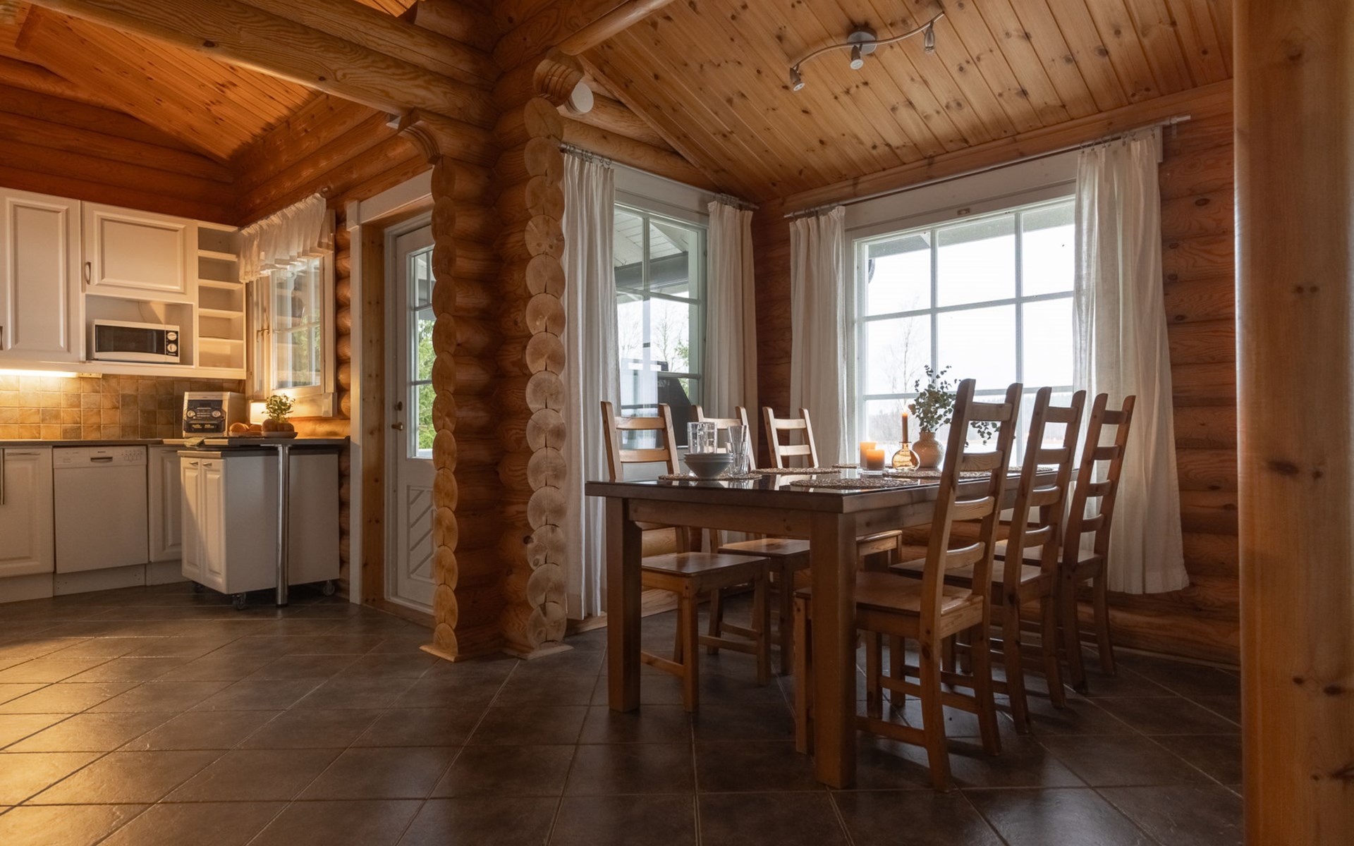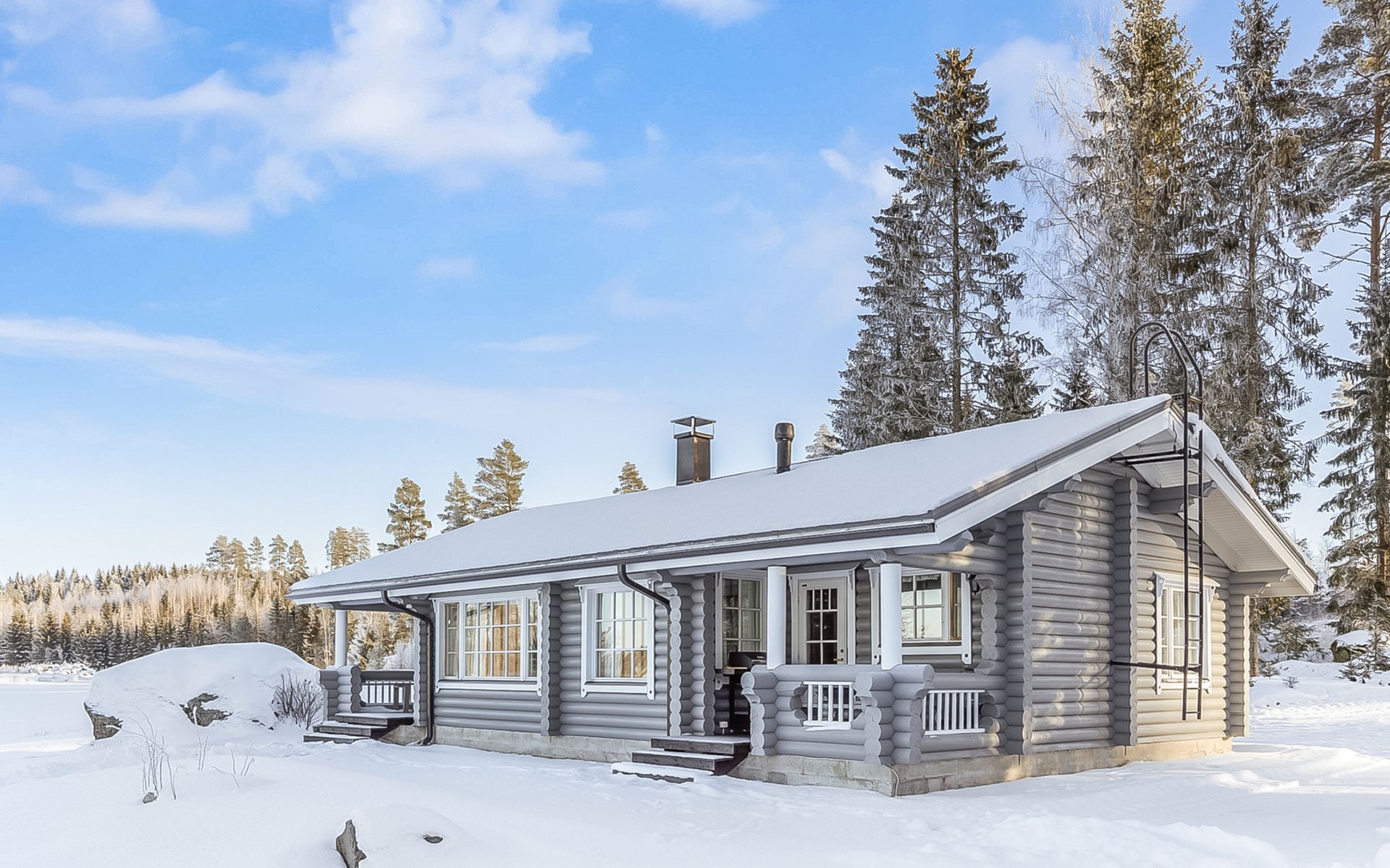 Log cottage 2005, living area 103 m², including kitchen, living room alternatively 2 extra beds, bedroom 2 bunks, bedroom double bed, dressing room, washroom, sauna (elec. stove), open porch.