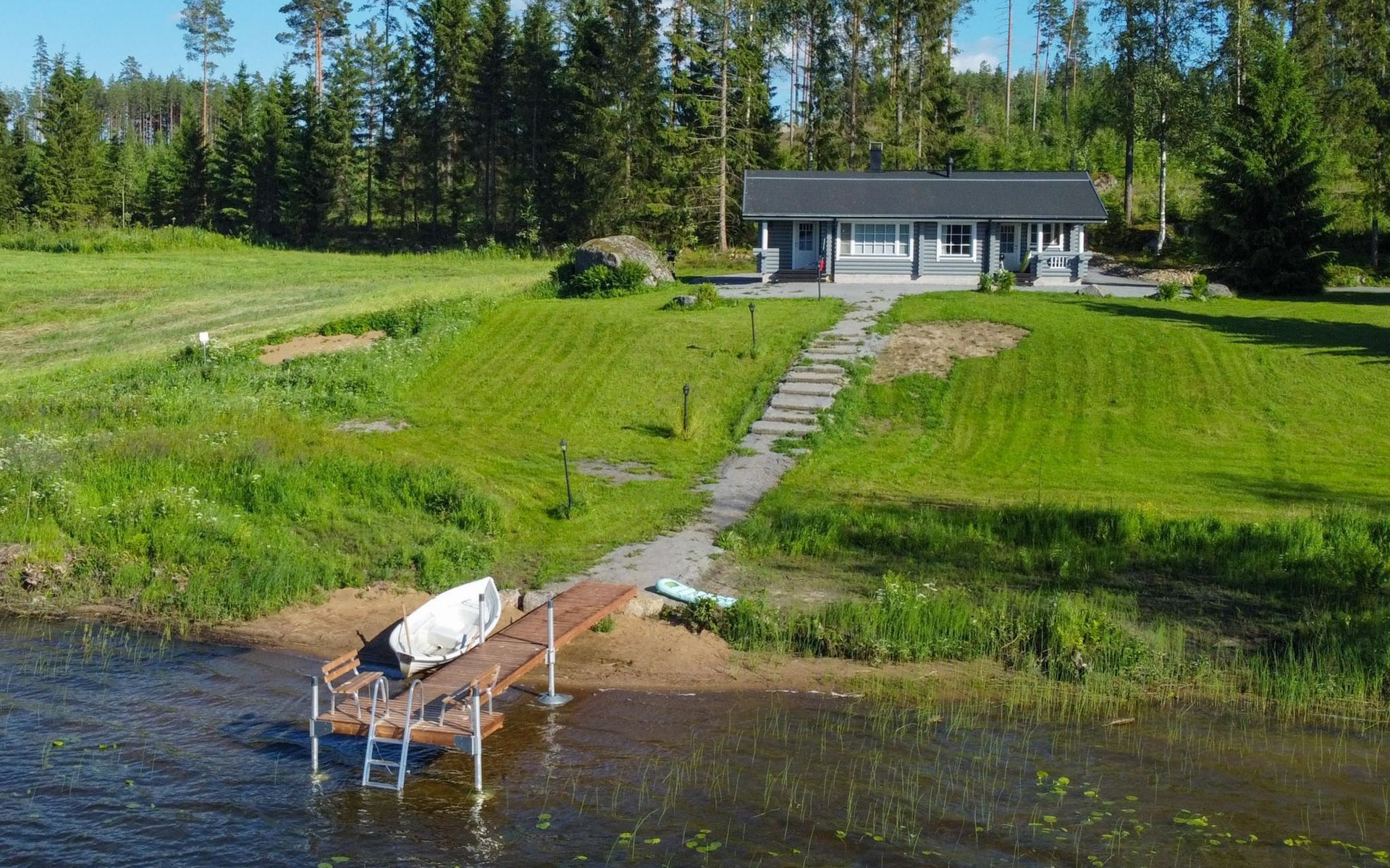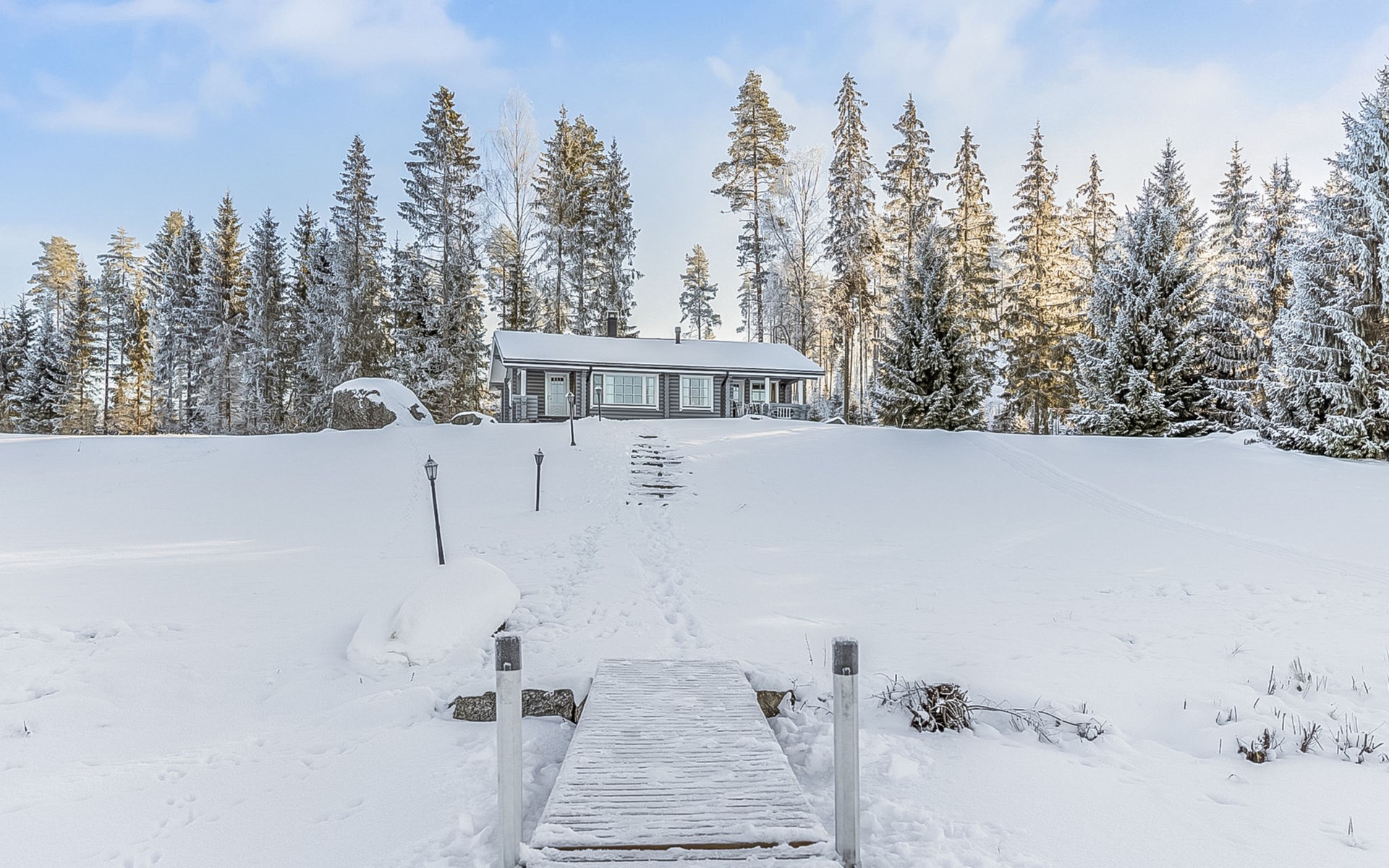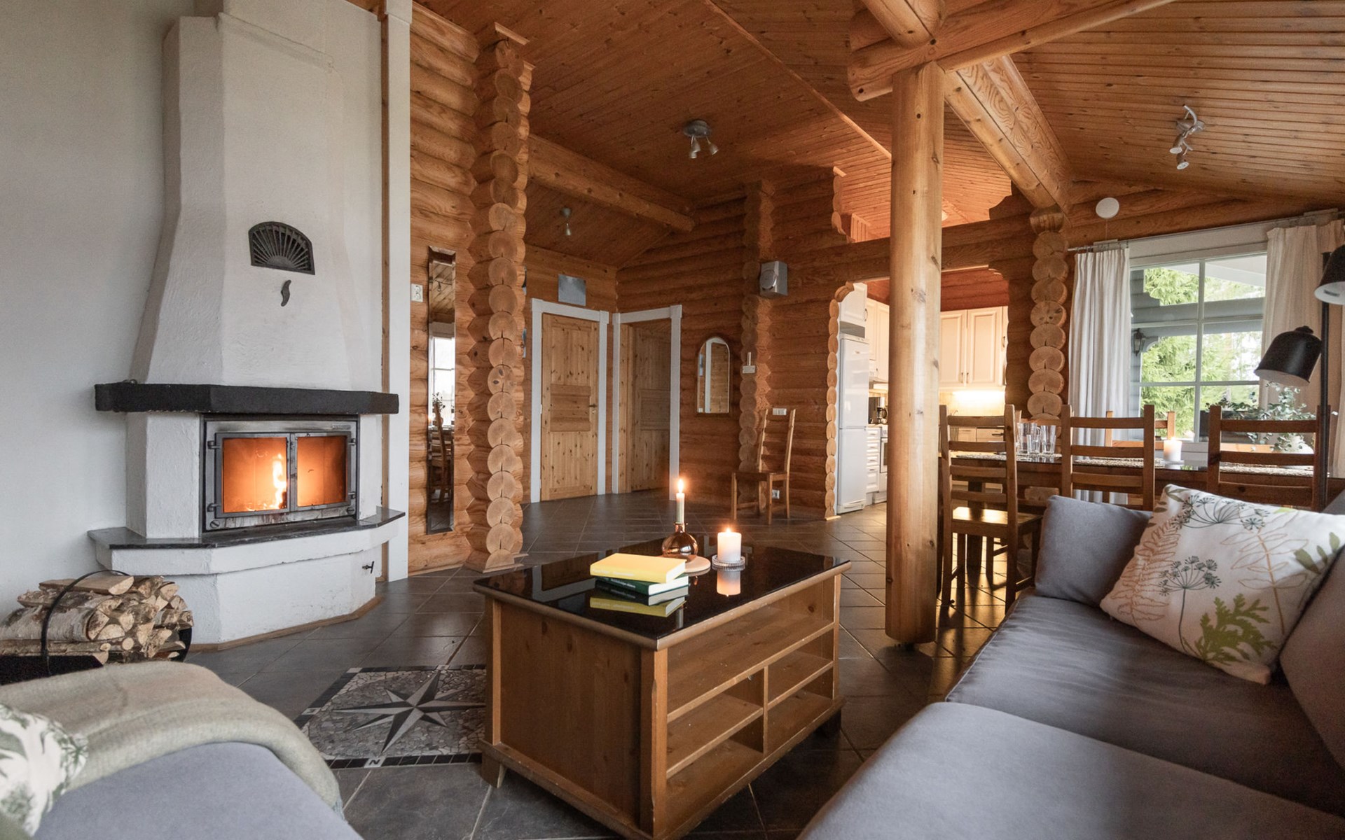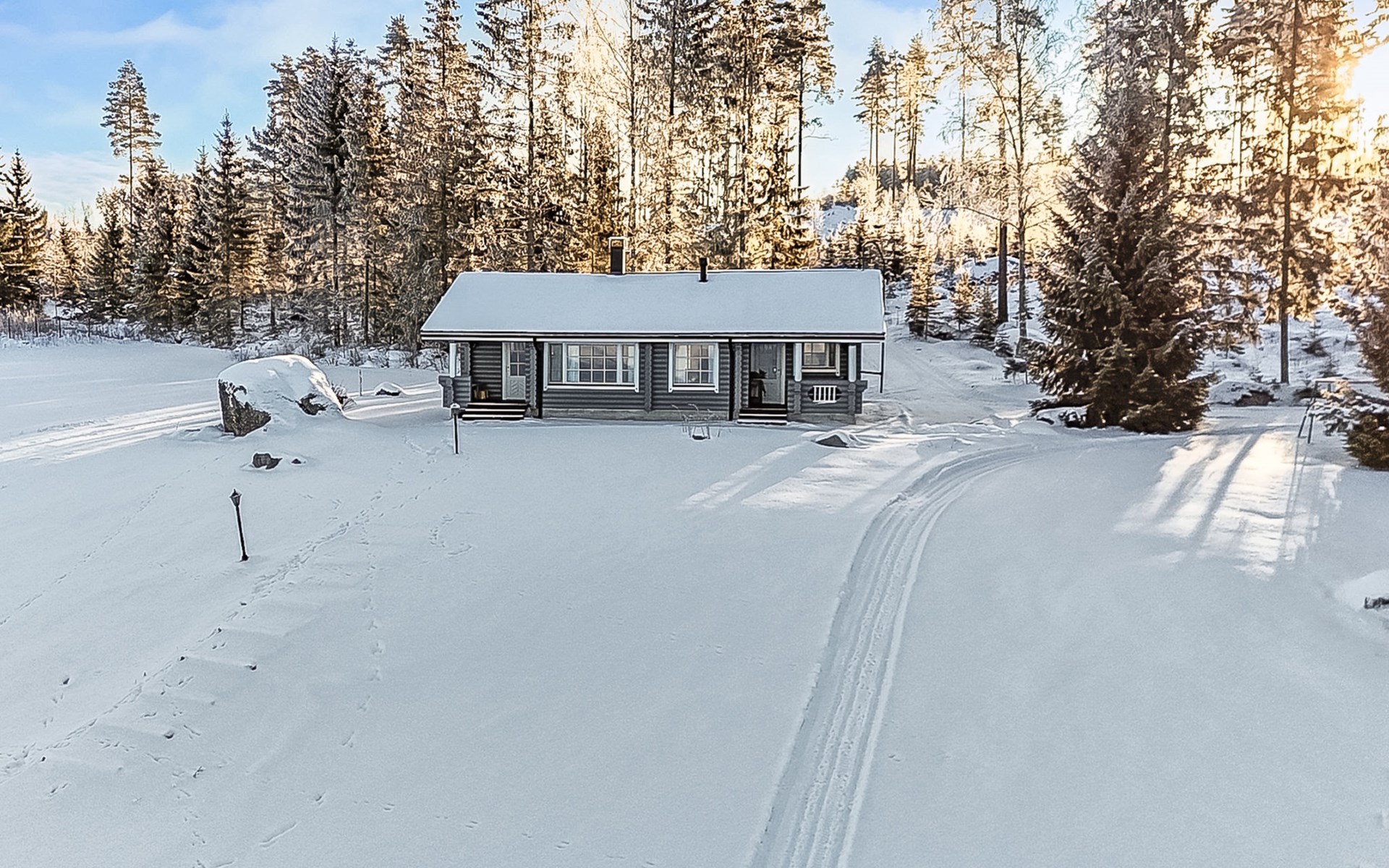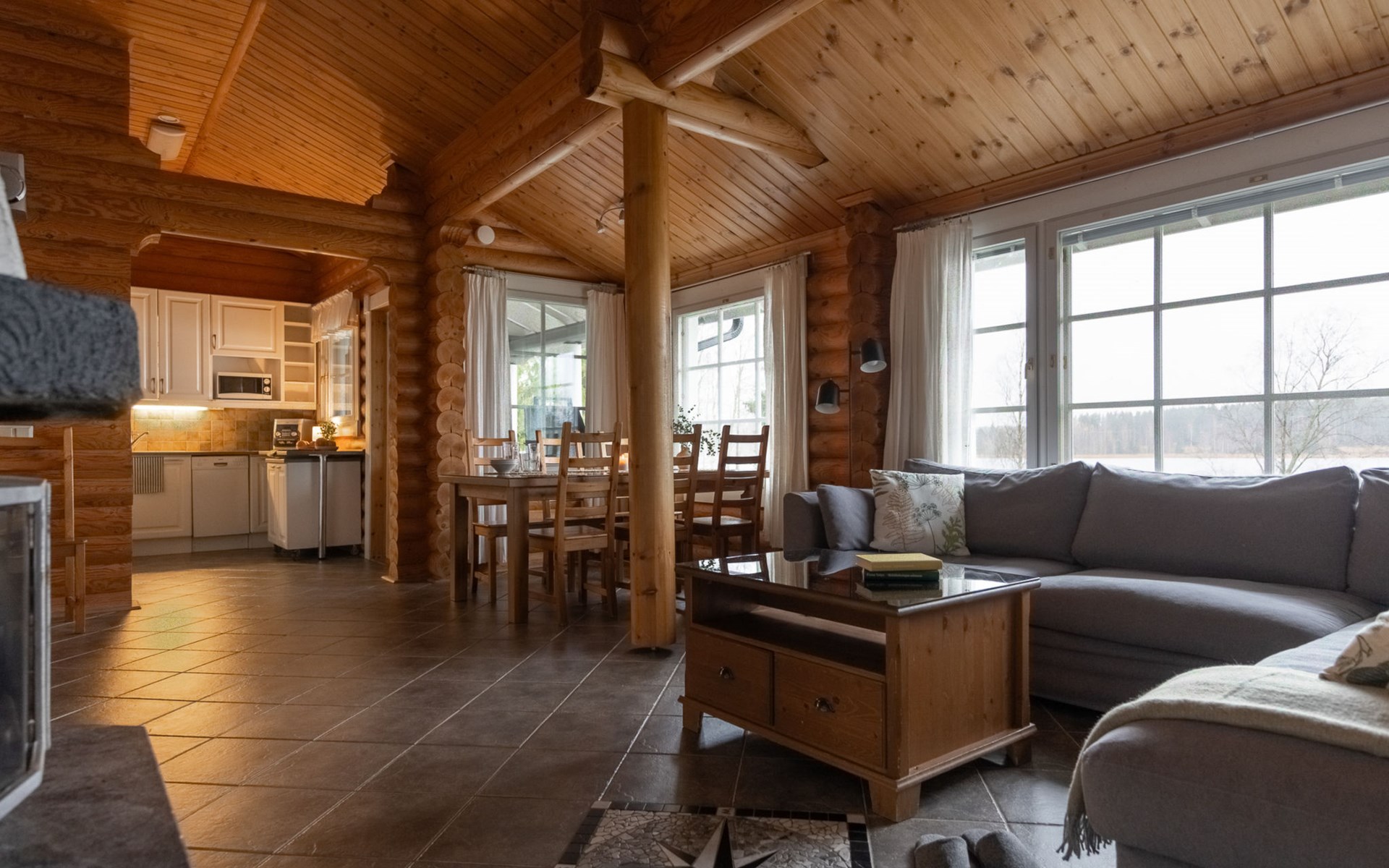 Log cottage 2005, living area 103 m², including kitchen, living room alternatively 2 extra beds, bedroom 2 bunks, bedroom double bed, dressing room, washroom, sauna (elec. stove), open porch.
