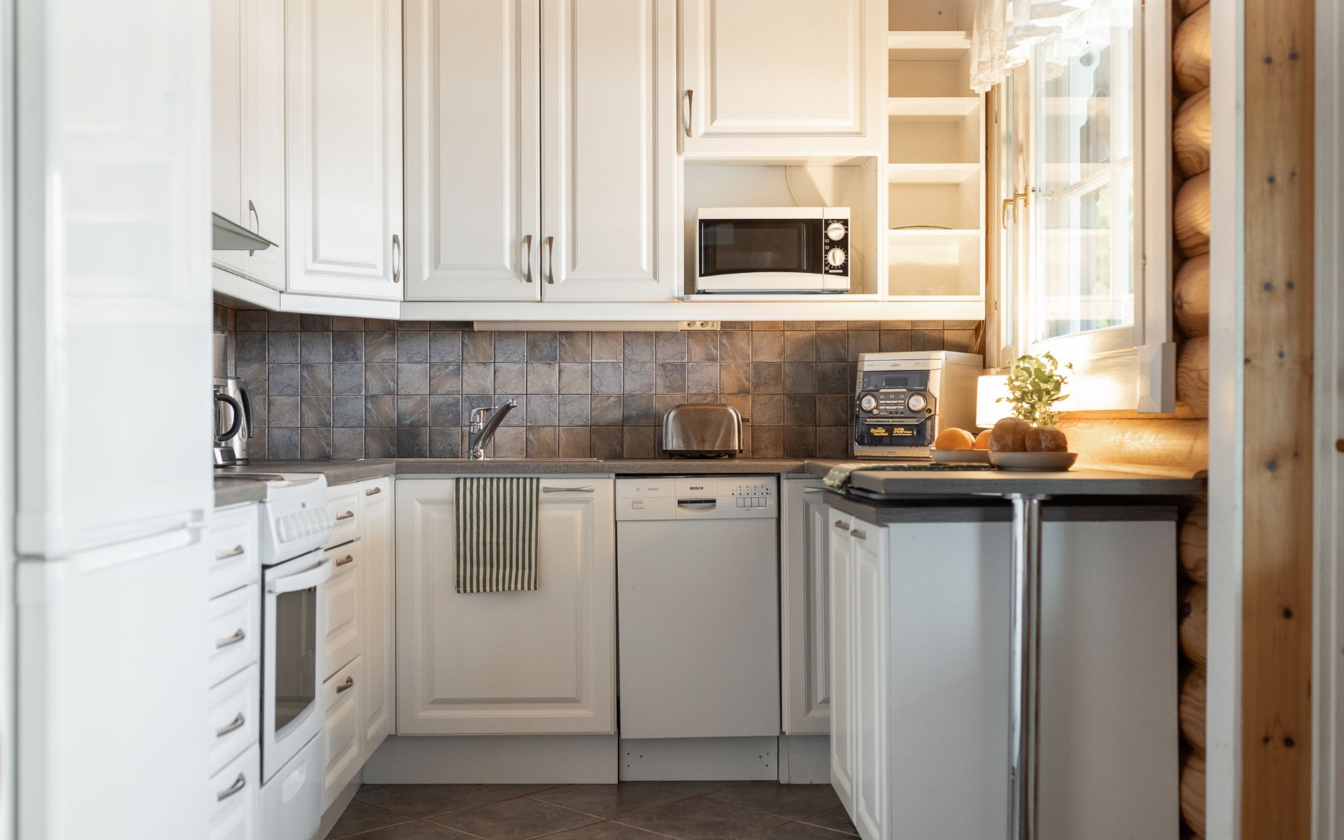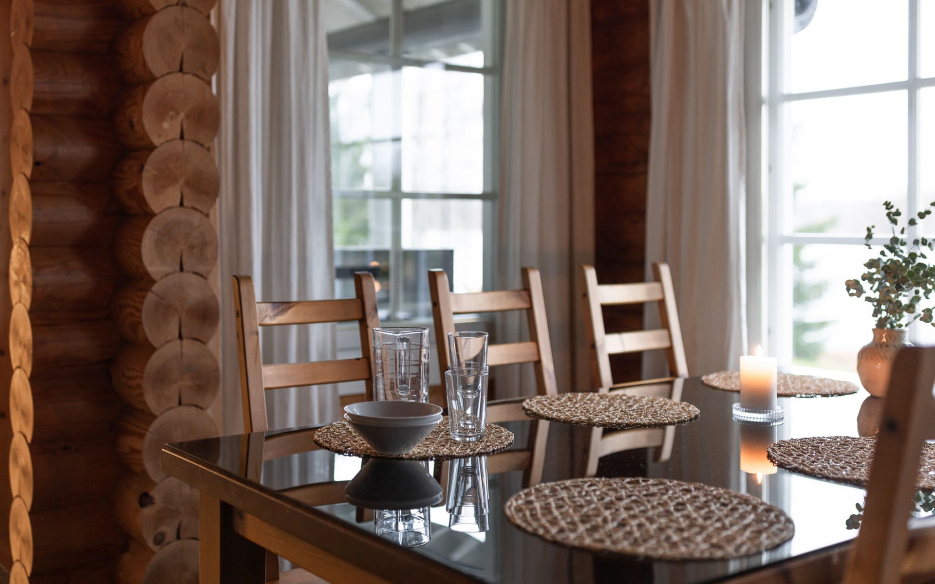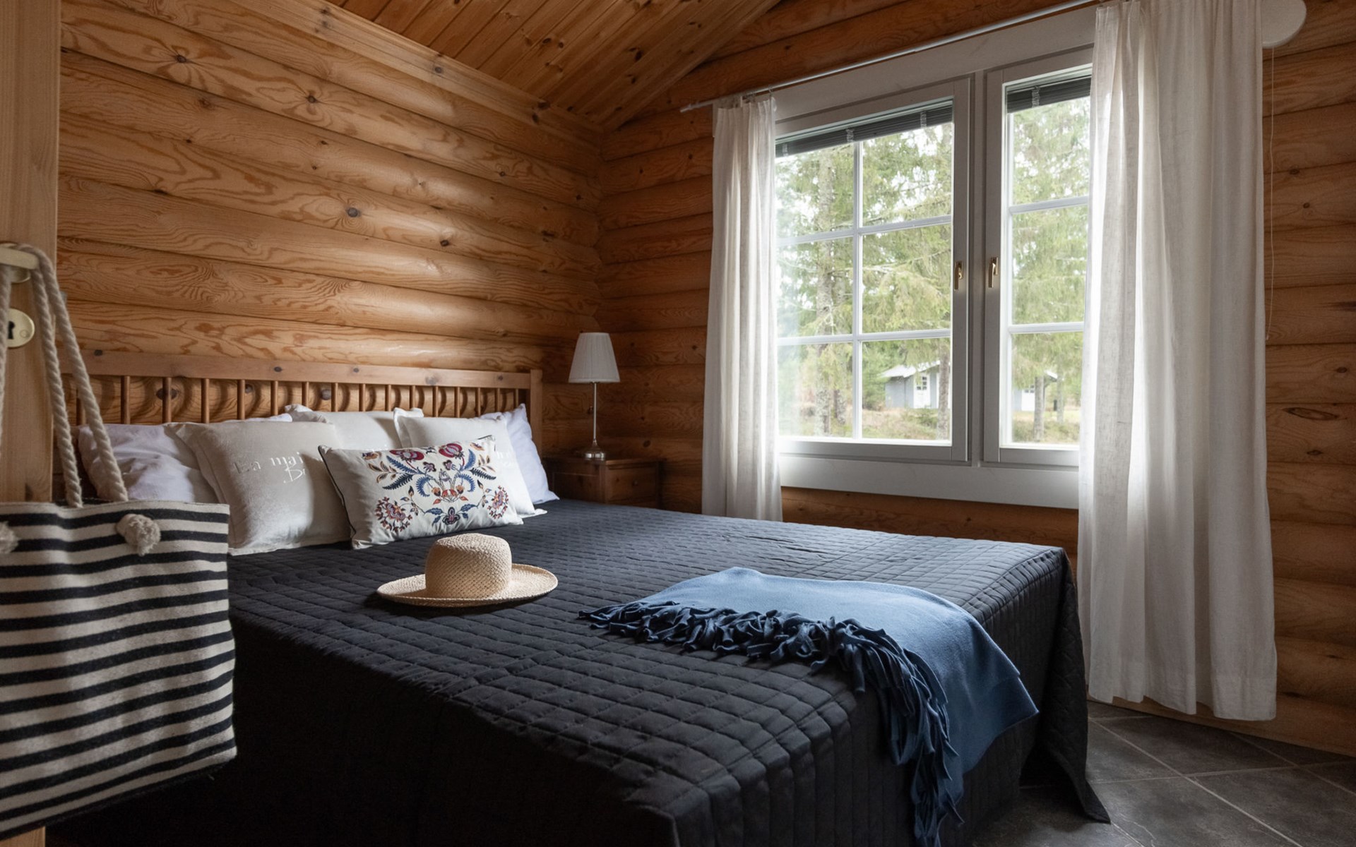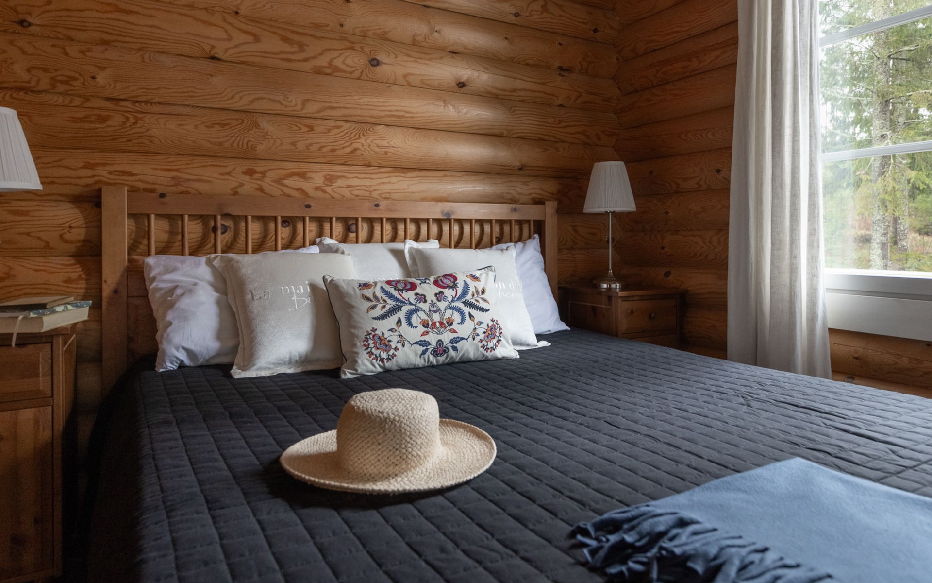 Log cottage 2005, living area 103 m², including kitchen, living room alternatively 2 extra beds, bedroom 2 bunks, bedroom double bed, dressing room, washroom, sauna (elec. stove), open porch.