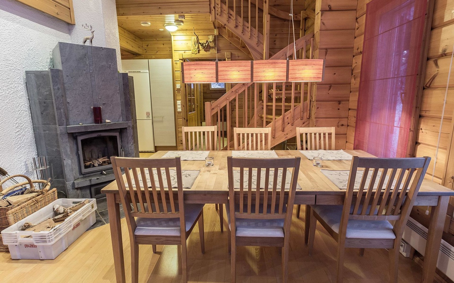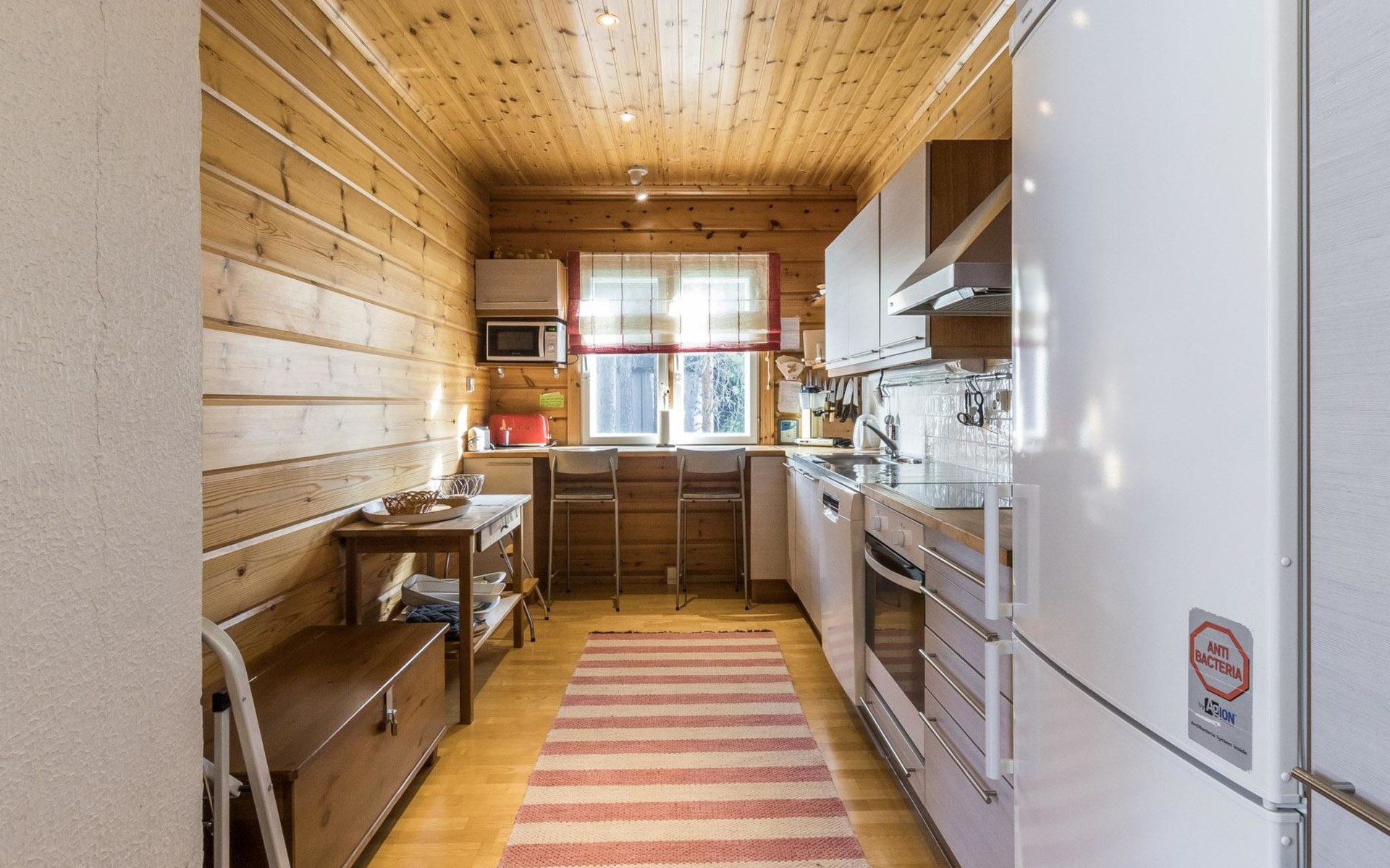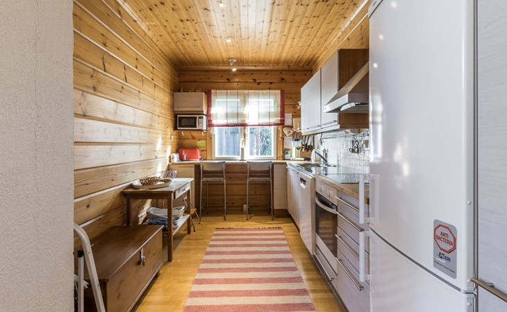 Well-equipped kitchen includes crockery/cutlery for 8 persons, dining table with 6 seats, 2 dining places in kitchen, electric cooker, oven, fridge, freezer compartment, dishwasher, microwave. Smart TV, radio, DVD player, heat-storing fireplace, sauna with electric stove, washroom, separate WC. Washing machine and clothes drying closet. Notice! Charging an electric car is prohibited.