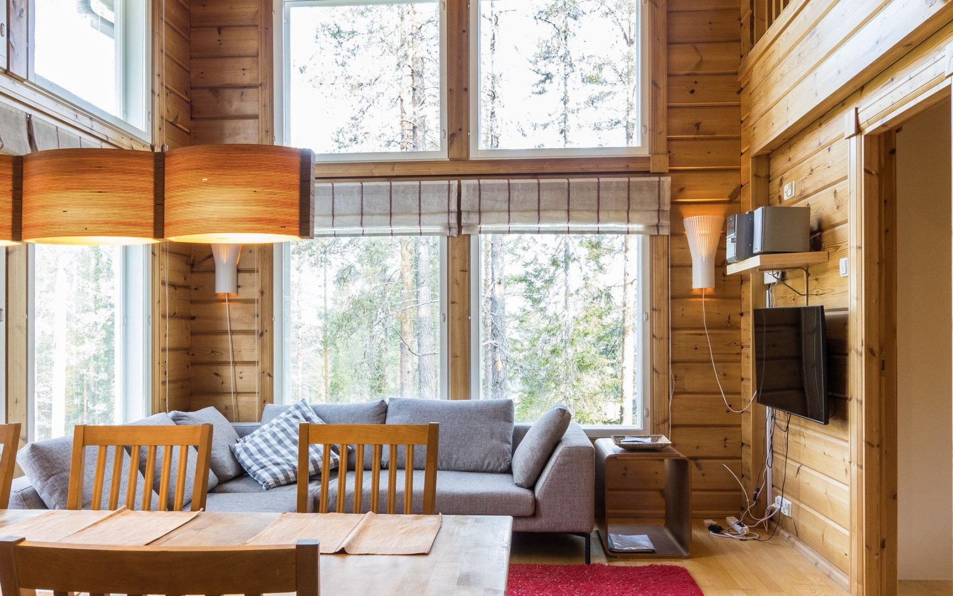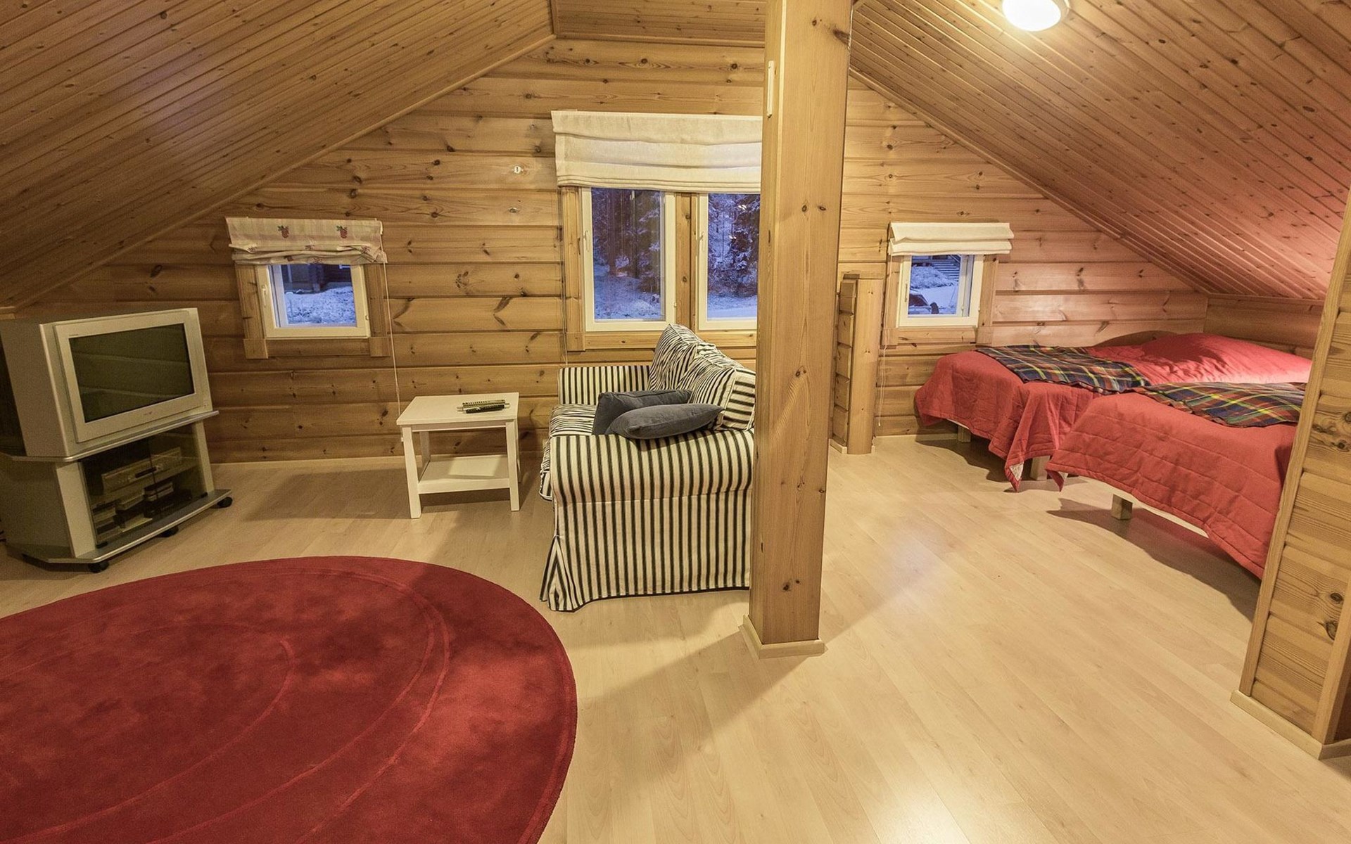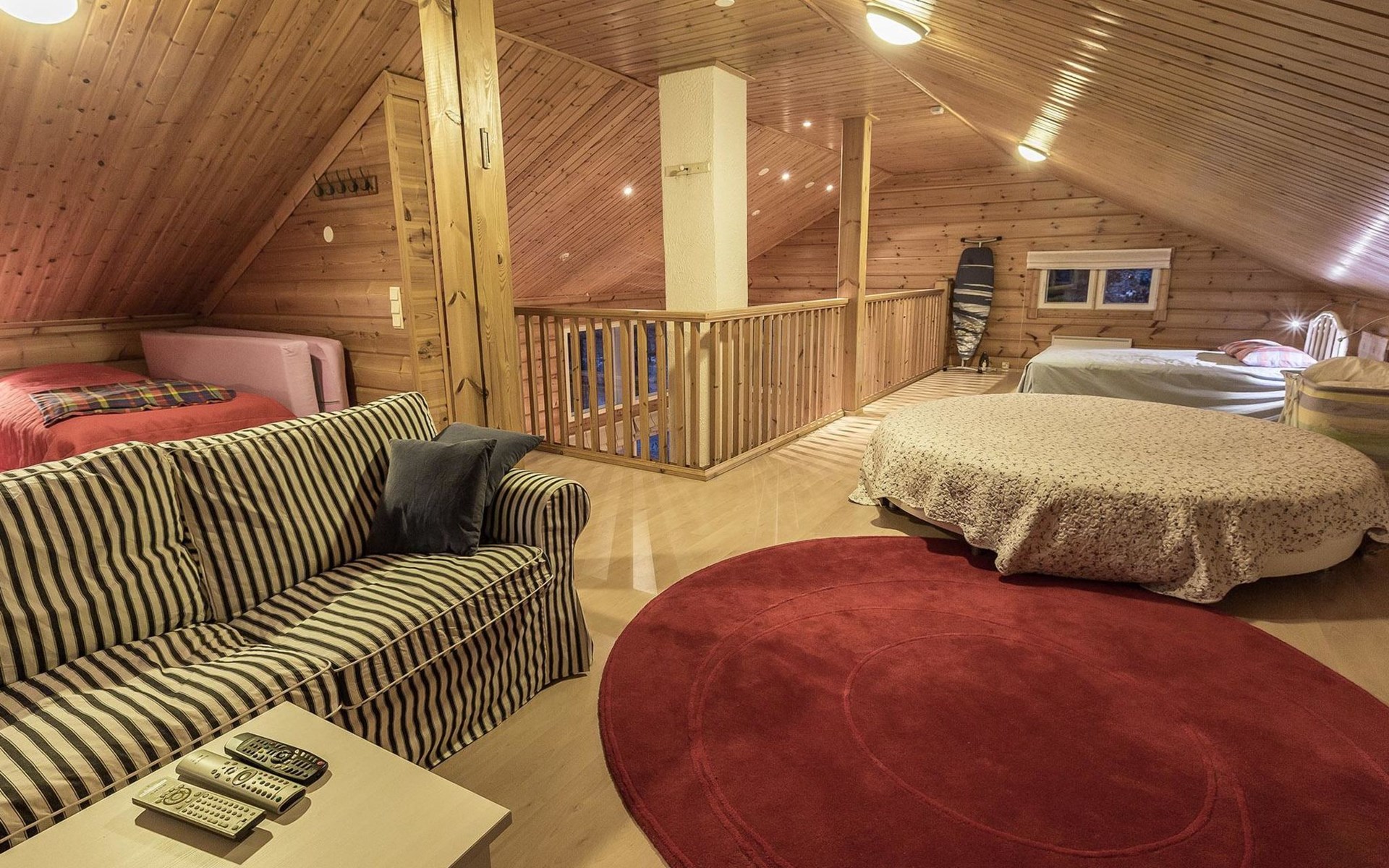 Well-equipped kitchen includes crockery/cutlery for 8 persons, dining table with 6 seats, 2 dining places in kitchen, electric cooker, oven, fridge, freezer compartment, dishwasher, microwave. Smart TV, radio, DVD player, heat-storing fireplace, sauna with electric stove, washroom, separate WC. Washing machine and clothes drying closet. Notice! Charging an electric car is prohibited.