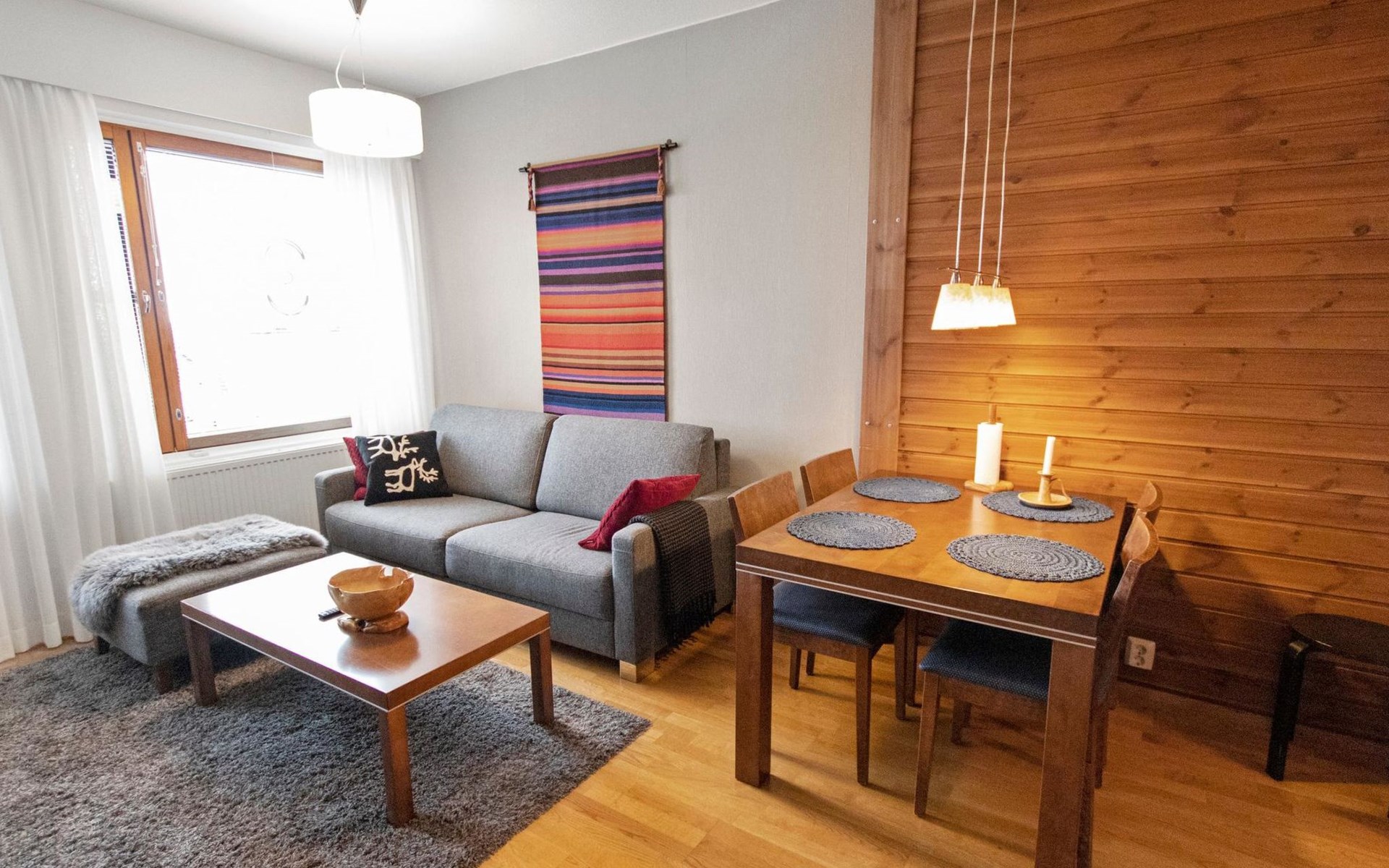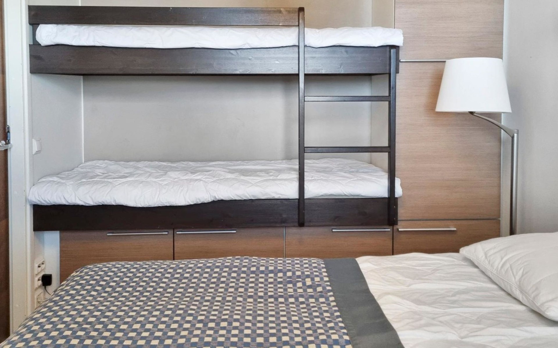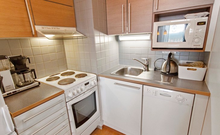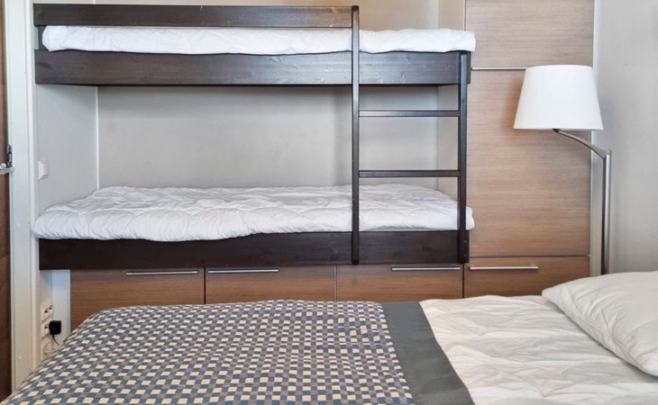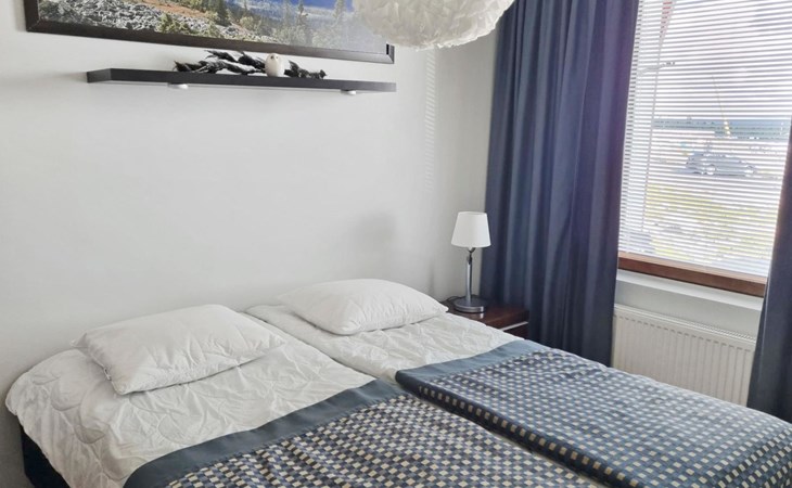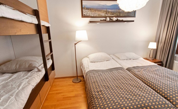 Apartment size 43m². Kitchen, livingroom, bedroom with double bed (can be separated necessary) & bunk bed for 2, bathroom, toilet, sauna and terrace.