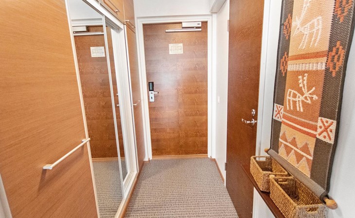 A connecting tunnel gives access to the swimming pools and spa and restaurant services of Lapland Hotels Saaga.