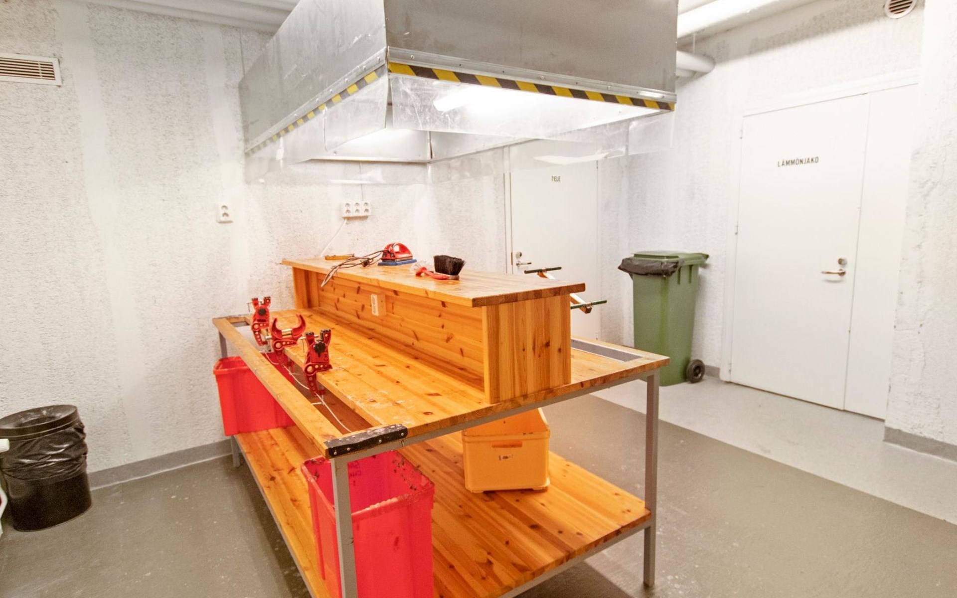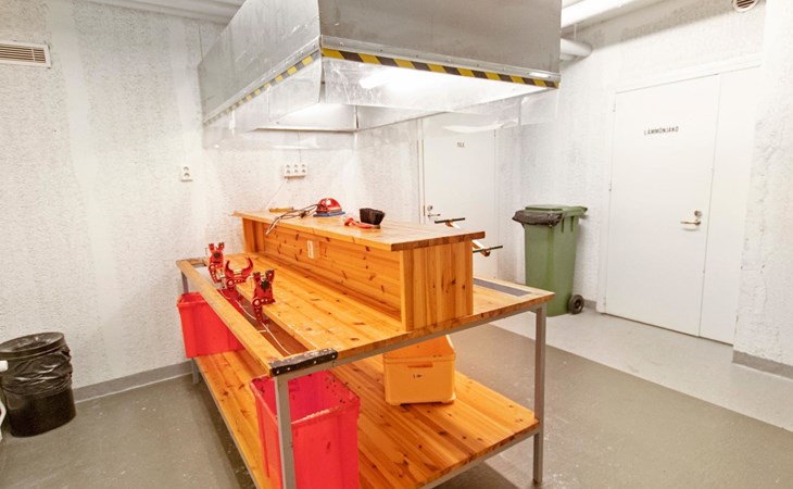 A locker for skis and ski maintenance room.