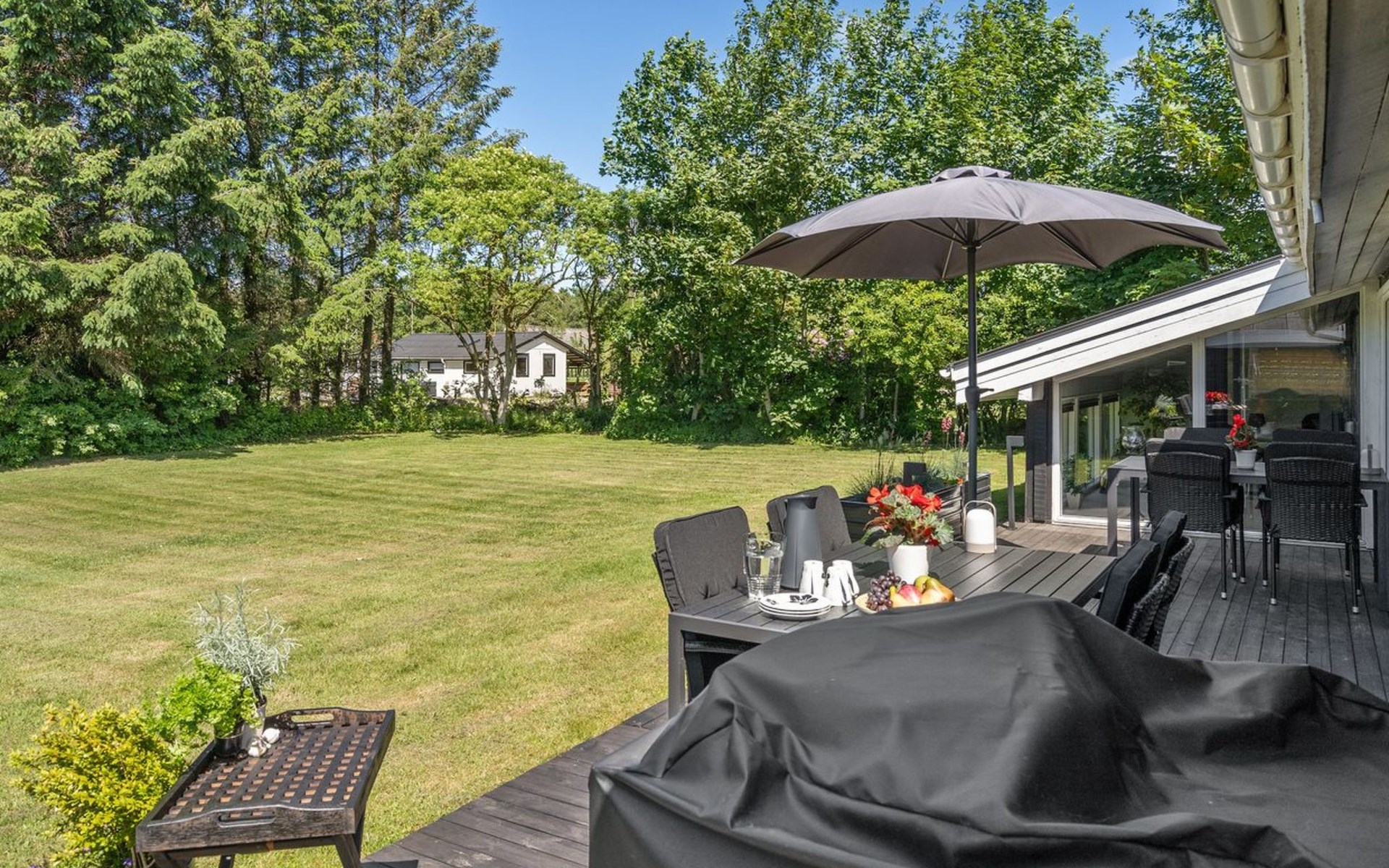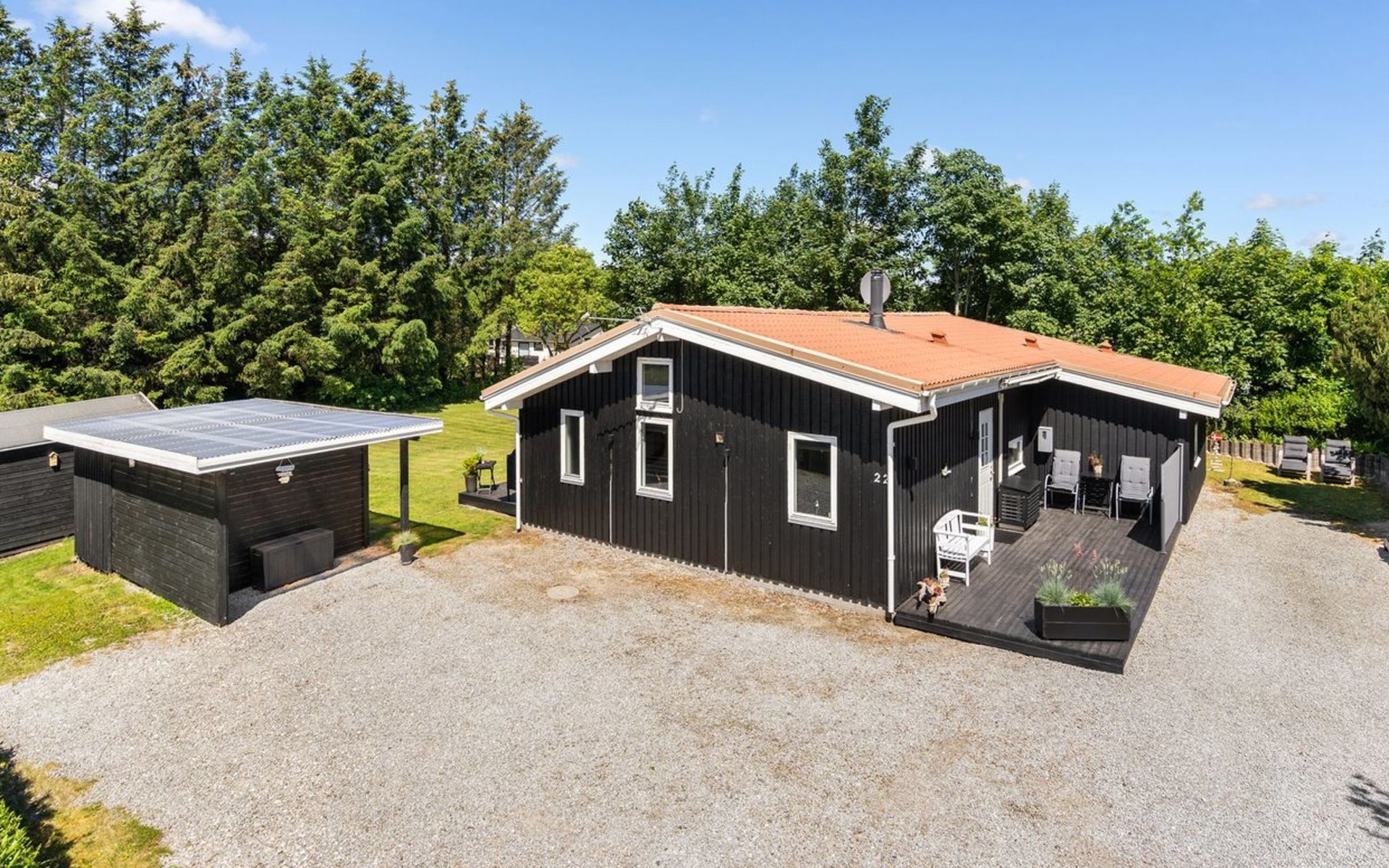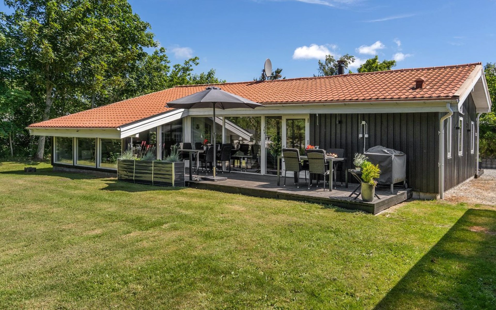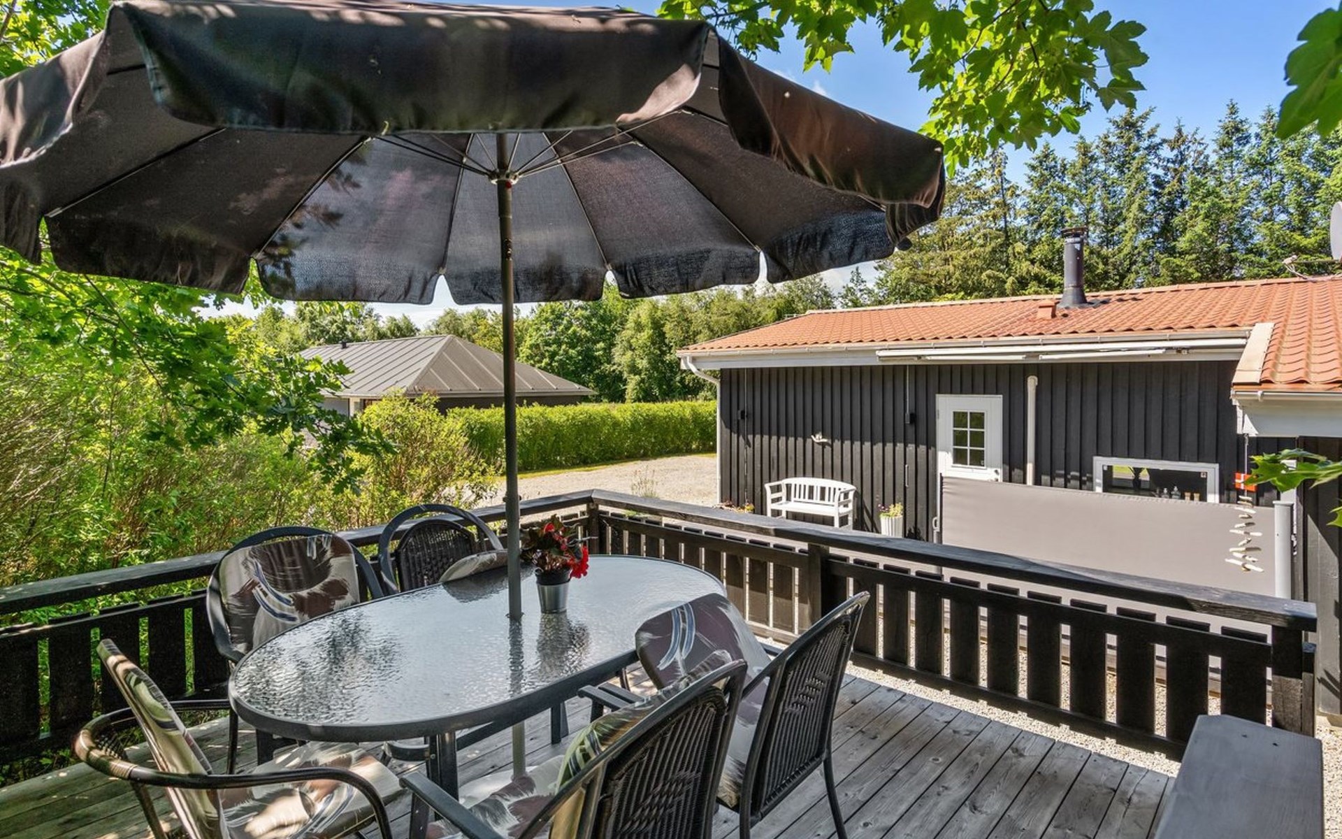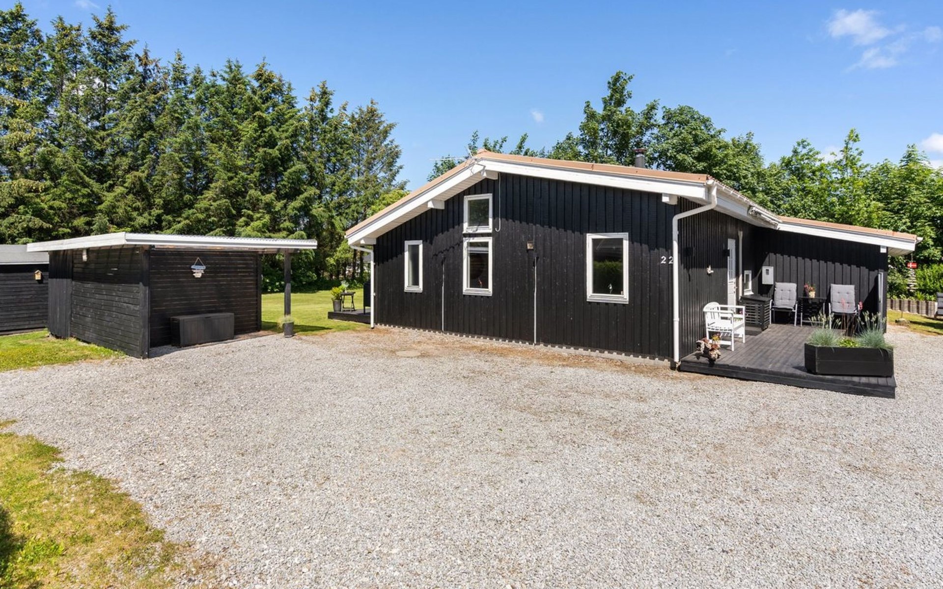Single-family house, built in 1989. 1 km from the sea. Private: natural state property 1'339 m2. Barbecue. In the house: washing machine. Parking at the house. Grocery 1 km. The owner does not accept any youth groups.