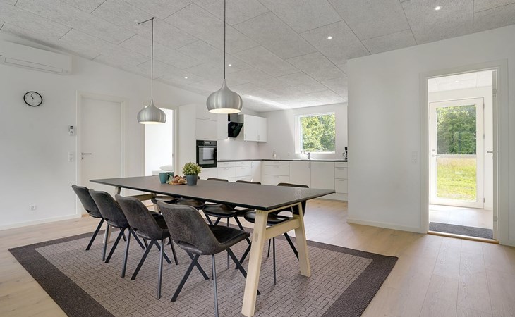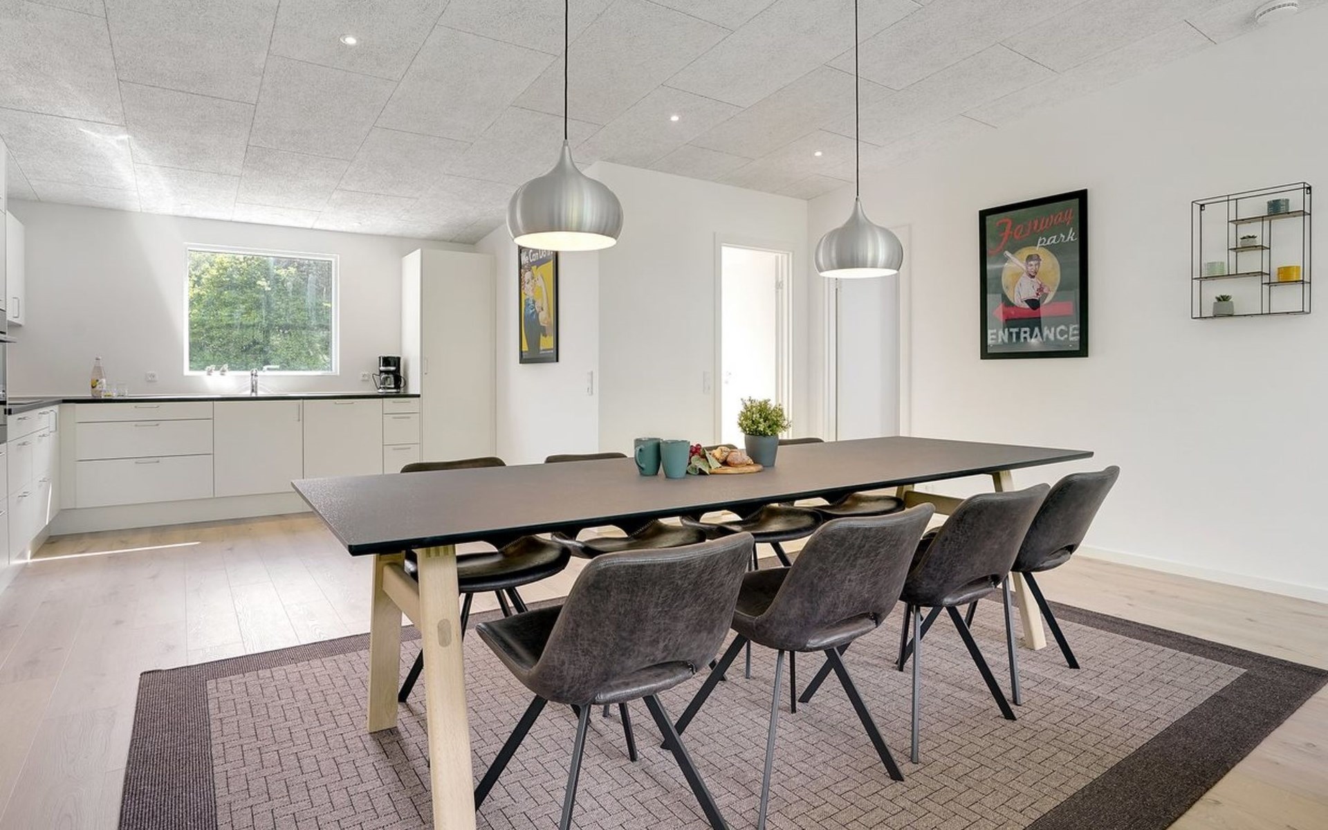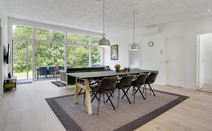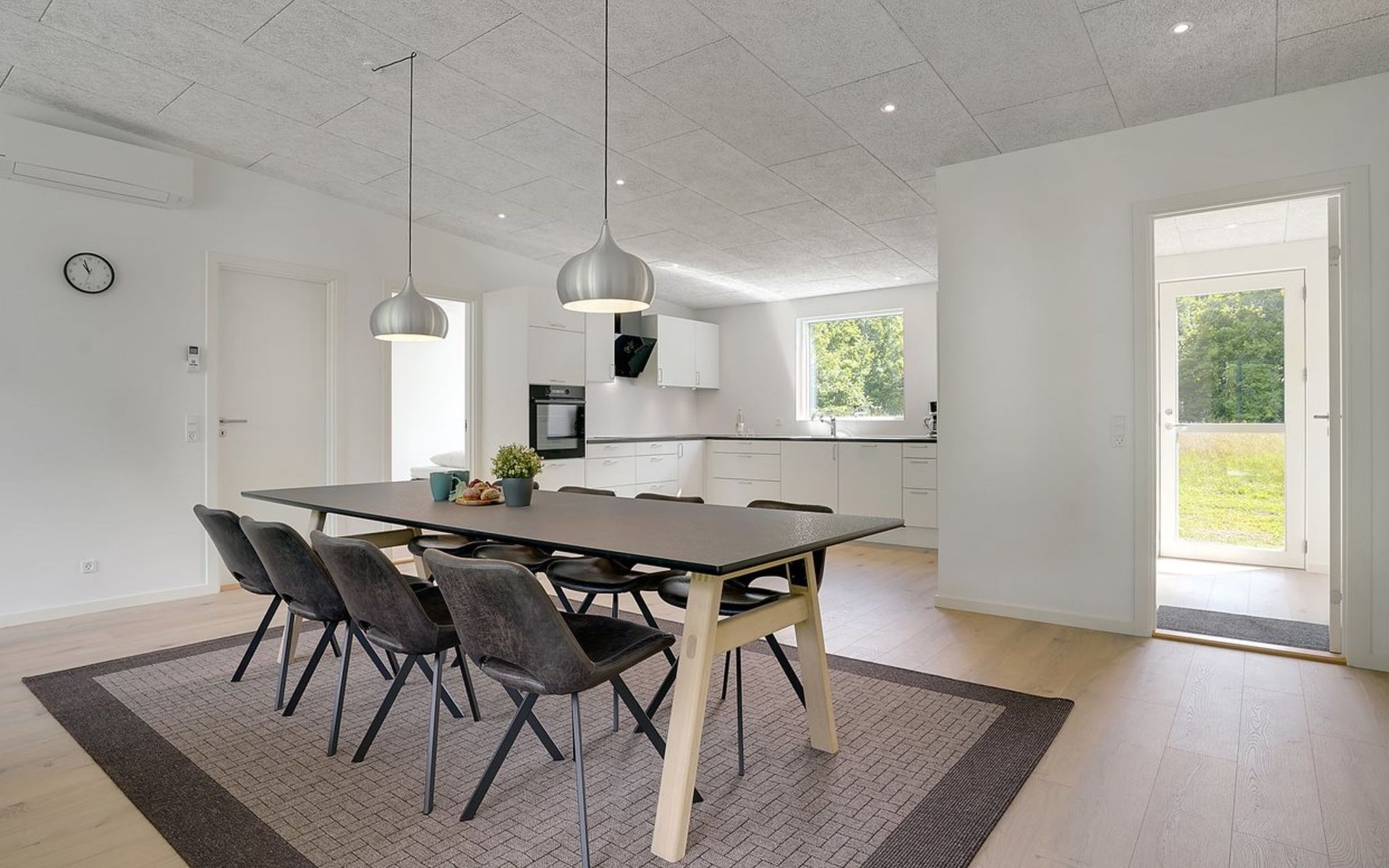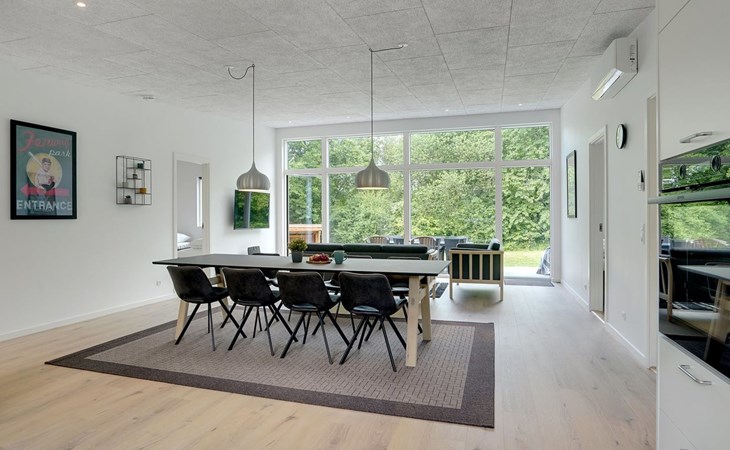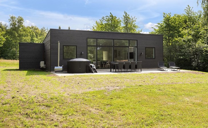 Holiday village, built in 2022. 3 km from the sea. Private: natural state property 875 m2. Barbecue. In the house: washing machine, tumble dryer. Parking at the house. E-charging station. Grocery 1 km. Golf course 2.5 km. The owner does not accept any youth groups.