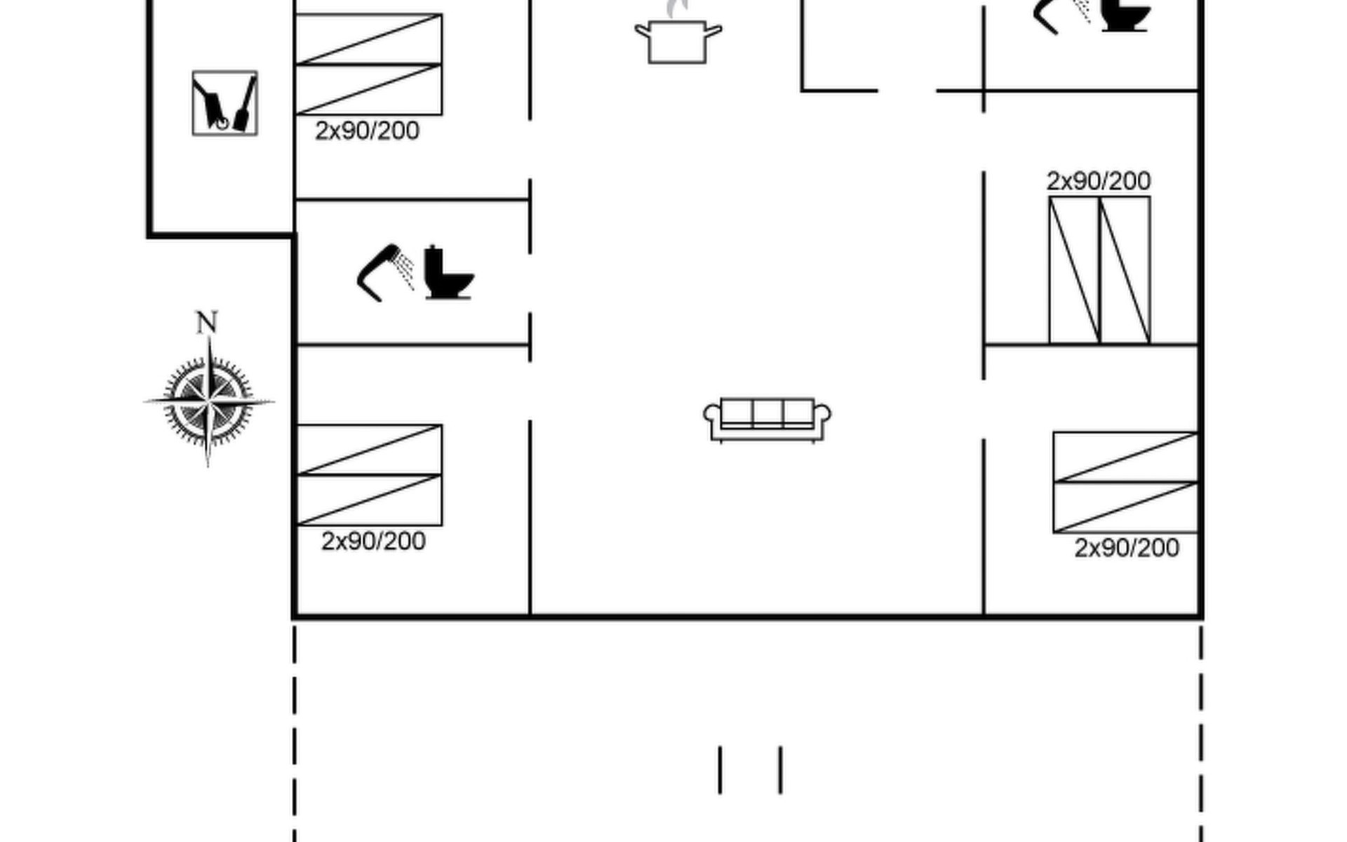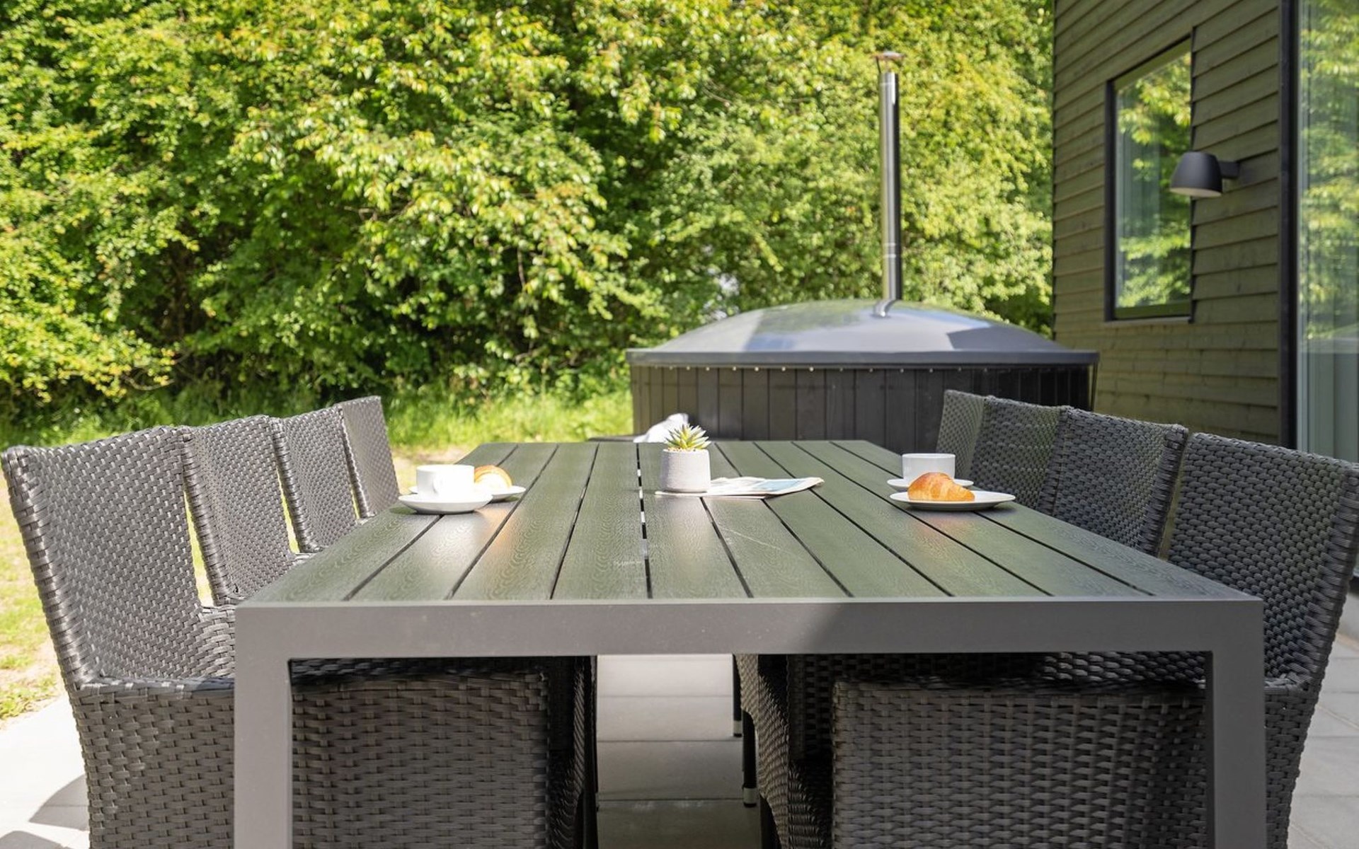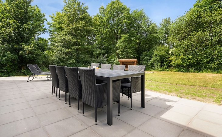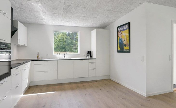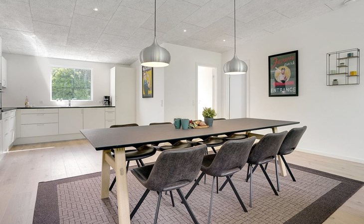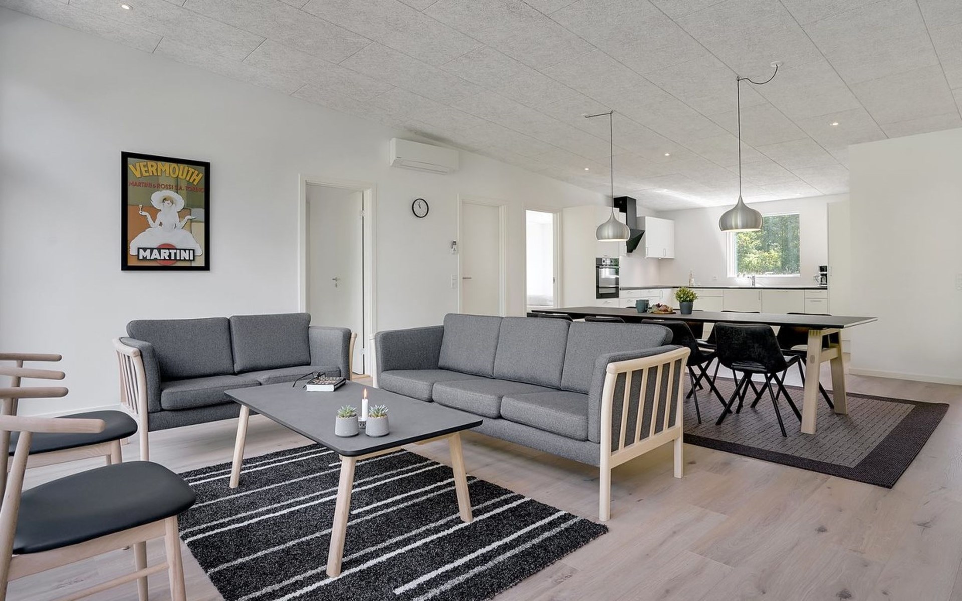 Holiday village, built in 2022. 3 km from the sea. Private: natural state property 875 m2. Barbecue. In the house: washing machine, tumble dryer. Parking at the house. E-charging station. Grocery 1 km. Golf course 2.5 km. The owner does not accept any youth groups.