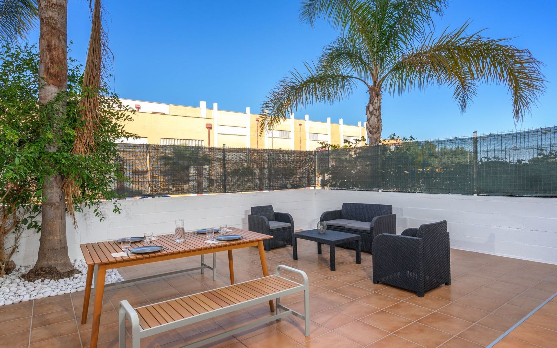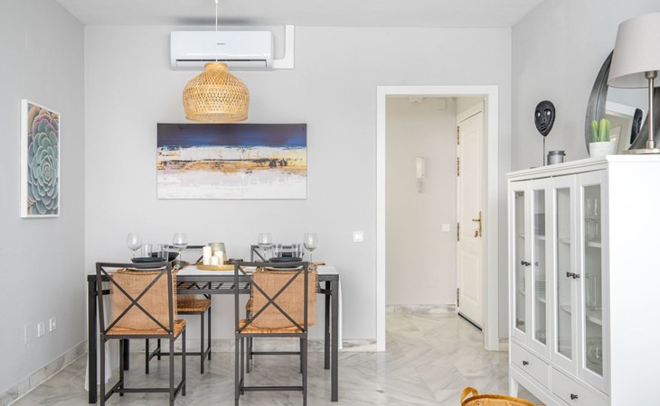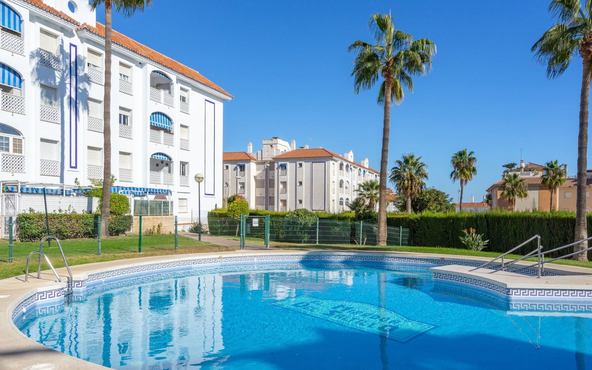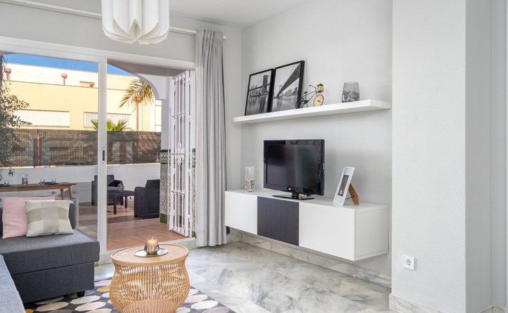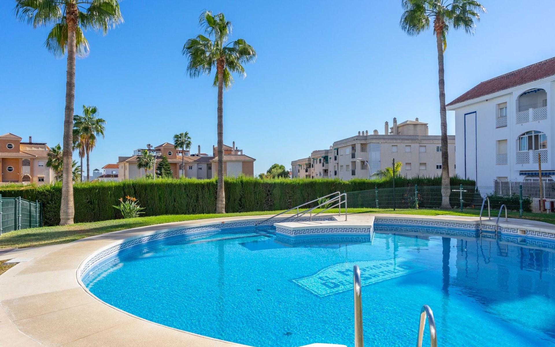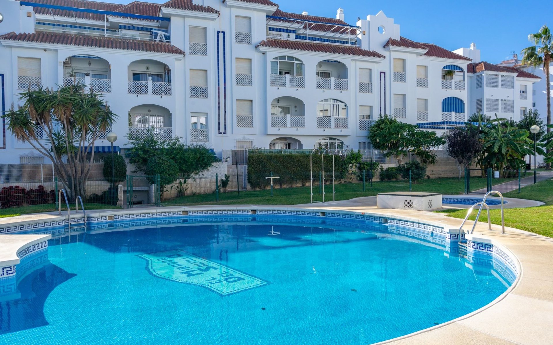 Beautiful, comfortable apartment block "Mirador del Saltillo". In a quiet, elevated position, 750 m from the sea, from the beach. For shared use: garden with lawn, 2 swimming pools kidney-shaped (seasonal availability: 01.May. - 30.Sep.). Children's pool, outdoor shower. In the house: lift. Bus stop 400 m, railway station 300 m. Sports harbour 1.5 km, marina 1.5 km. Nearby attractions: Puerto Marina 1.5 km, Sea Life 1.5 km, Cocodrile Park 1.5 km, Acualand 1.5 km. The owner does not accept any youth groups. Neighbourhood highly sensitive to noise. Quietness and good behaviour expected.