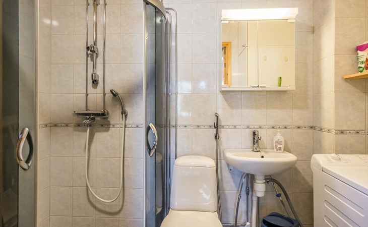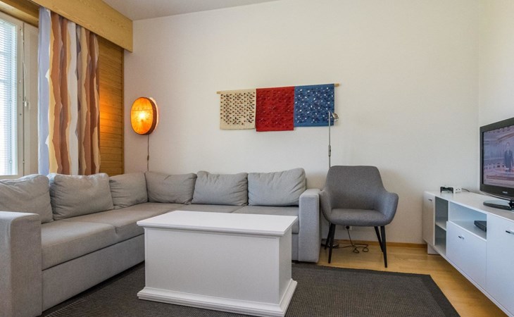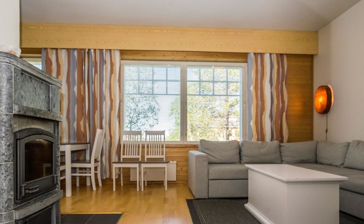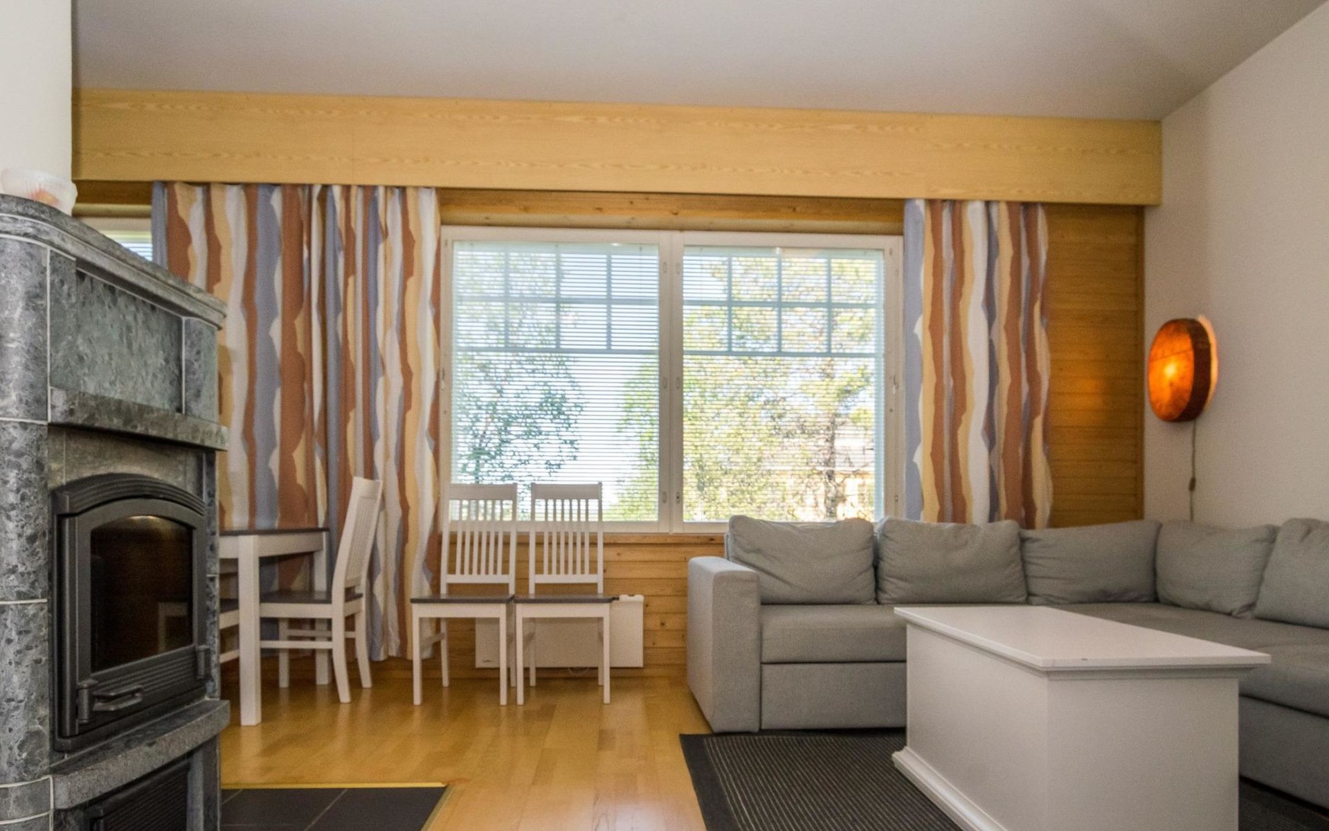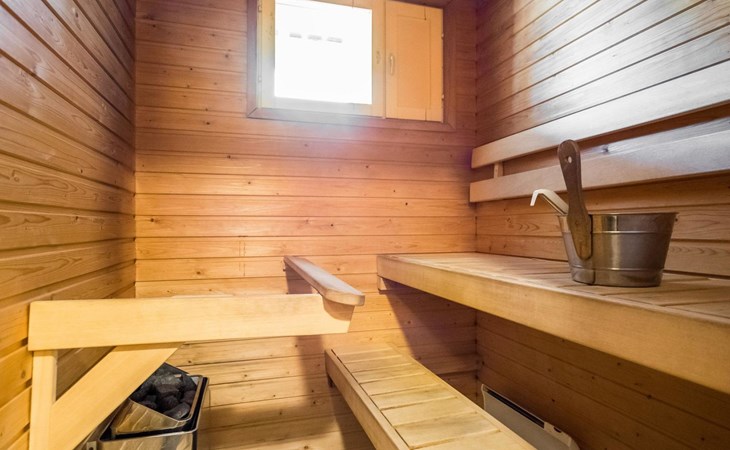 The kitchenette has everything you need for cooking and socialising. You can enjoy the warmth of a fireplace while dining, and the apartment's own sauna provides extra warmth after a day's excursions.
