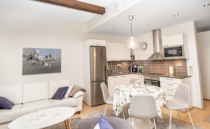 The open-plan kitchen offers convenient facilities for preparing delicious meals, and the living room is ideal for spending quality time together.