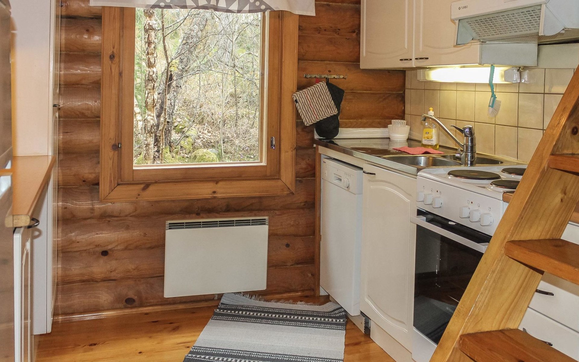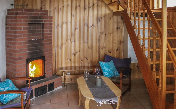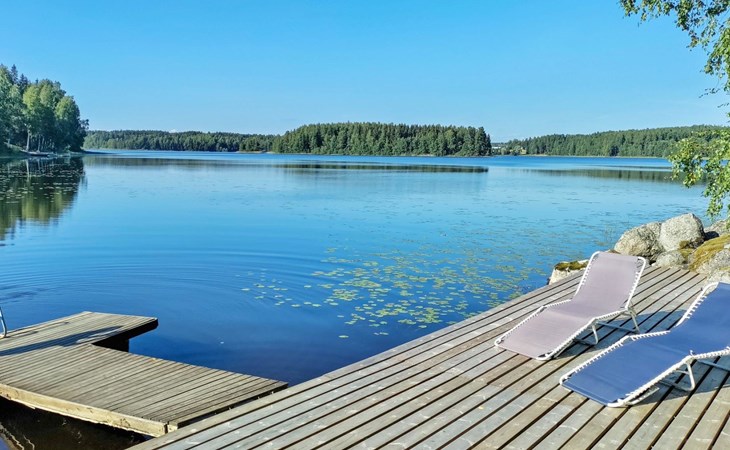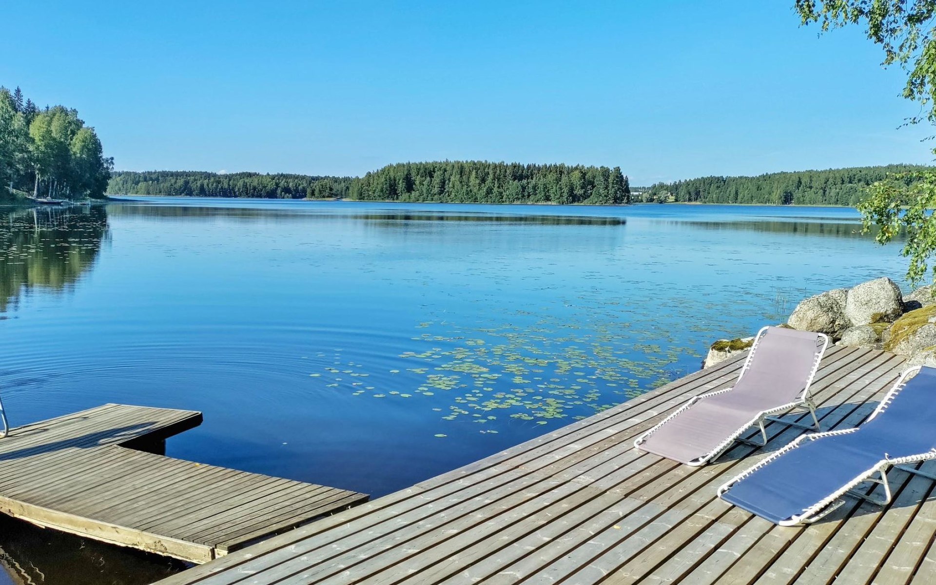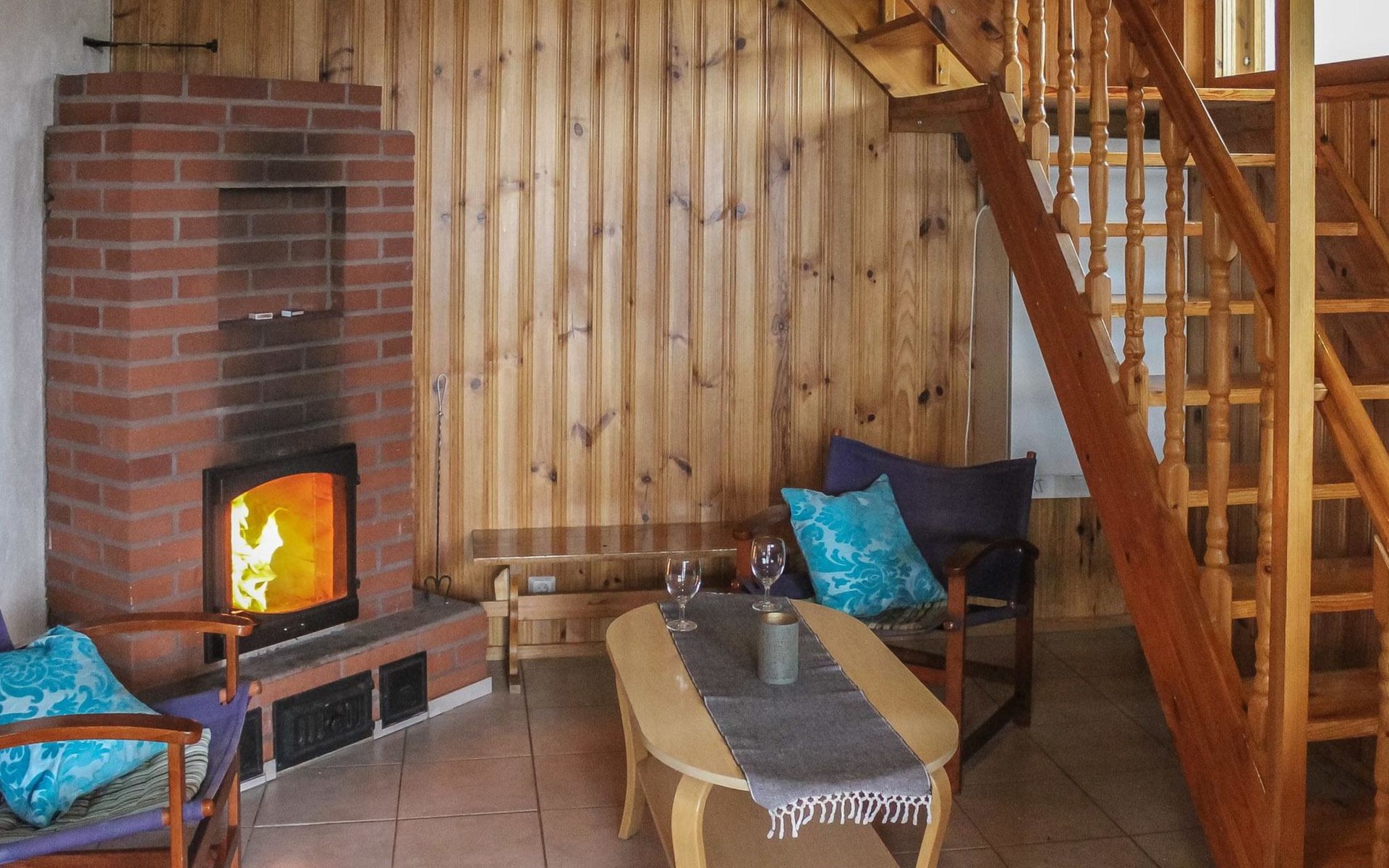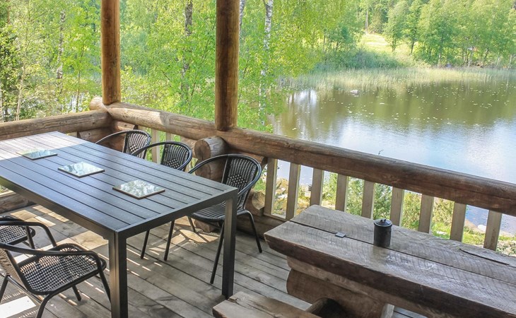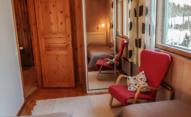 Log cabin 1994. Downstairs: hearth room, bedroom with 2 beds, washroom, sauna, veranda; upstairs: living room, bedroom with double bed, kitchen, sleeping loft (10 m², low room height) with 3 beds, veranda.