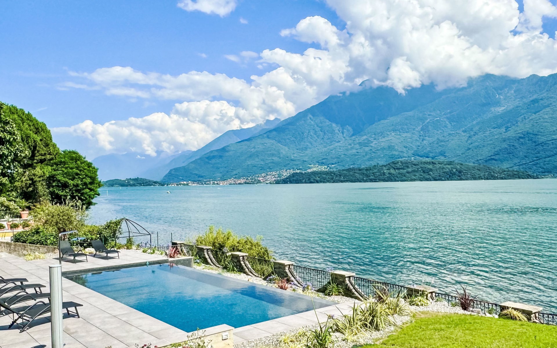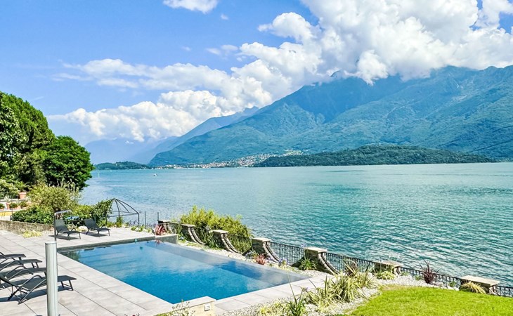 Large, comfortable apartment house "Rebecca", 3 storeys. 4 apartments in the property. 500 m from the centre of Gravedona, 900 m from the centre of Domaso, 53 km from the centre of Como, in a quiet, sunny position in the residential district, 10 m from the lake, 10 m from the beach, direct access to the beach. For shared use: property (fenced), swimming pool angular (10 x 4 m, depth 140 cm, seasonal availability: 01.May. - 26.Oct.) with salt-electrolysis pool-cleaning system. Outdoor shower, pool maintenance by the owner/gardener. In the house: storage room for bicycles, air conditioning, heating available only from 15.Oct. - 30.Apr.. Parking on the premises. E-charging station. Supermarket 1.5 km, restaurant, bar 700 m, bakery, café 900 m, pedestrian zone 400 m, 5 minute walk to the centre, bus stop "C10 Como-Menaggio-Colico" 20 m, railway station "Colico" 15 km, pebble beach 10 m, grass beach "Domaso" 1.5 km, outdoor swimming pool 6 km. Sports harbour 2.5 km, marina 700 m, golf course (18 hole) 21 km, surf school 2 km, sailing school 2 km, indoor tennis centre 2 km, sports centre 2 km, cycle lane 10 m. Nearby attractions: Palazzo Gallio-Gravedona, Museo della Barca Lariana-Porlezza, Villa Balbianello-Lenno, Villa Carlotta-Tremezzo, Menaggio, Bellagio. Well-known ski regions can easily be reached: Madesimo. Well-known lakes can easily be reached: Lago di Mezzola. Hiking paths: Livo-Crotto Dangri, Bodone-Alpe Motta, Monte Legnoncino. Please note: car recommended. The owner lives in the same residence. Lake front dock as storage area for bicycles and water sports equipment.
