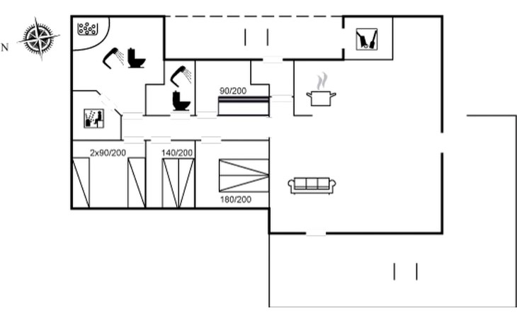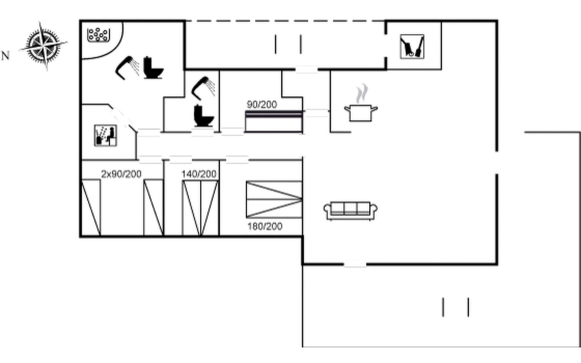 Single-family house, built in 1994. 600 m from the sea. Private: natural state property 1'448 m2. Terrace (40 m2), barbecue. In the house: sauna, washing machine. Parking at the house. Carport. Grocery 1.4 km. The owner does not accept any youth groups.
