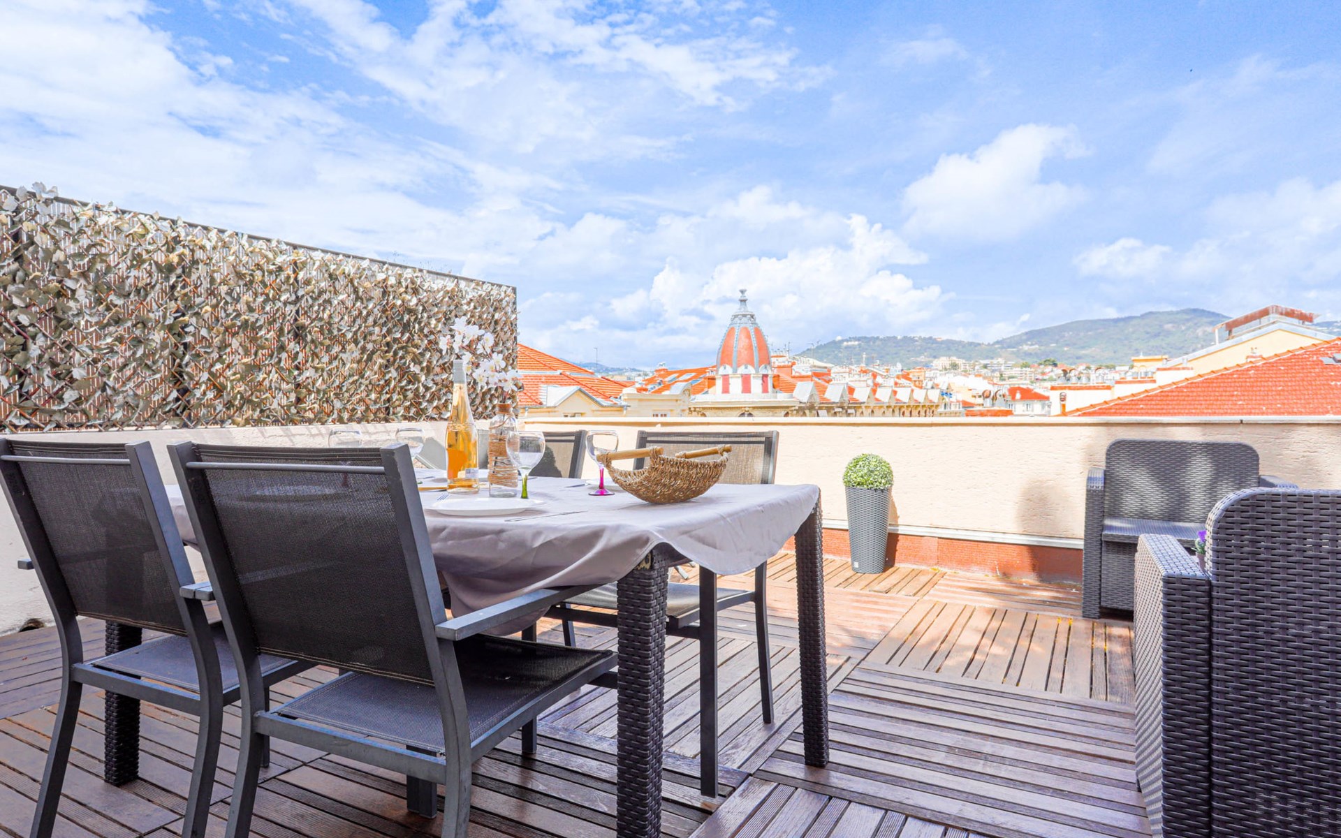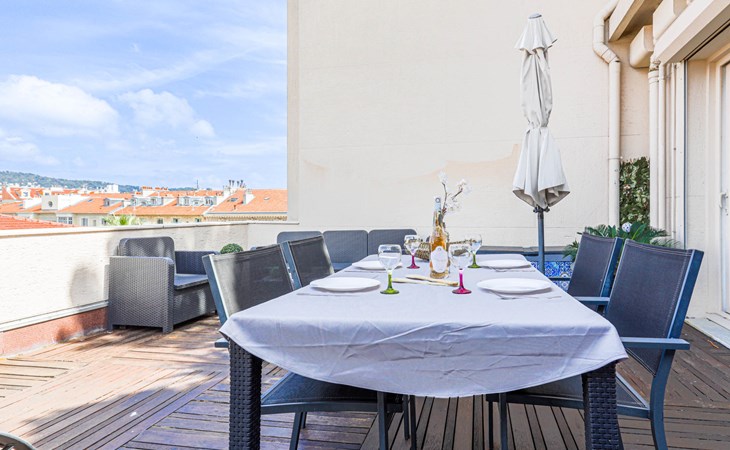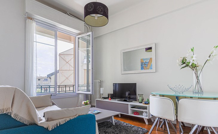 Apartment house "L'Escurial", 7 storeys. In the resort 800 m from the centre of Nice, in a central, busy position, 800 m from the sea, 800 m from the beach. In the house: lift. Public car park at 300 m. Grocery 10 m, supermarket, shopping centre 400 m, restaurant 100 m, bakery 100 m, café 150 m, pedestrian zone 500 m, 10 minute walk to the centre, tram "Ligne 2" 350 m, railway station "Nice-Ville" 500 m, shingle beach "Carras" 800 m. Golf course (18 hole) 20 km. Nearby attractions: Place Masséna 800 m, Promenade des Anglais 800 m, Cours Saleya 1.3 km, Musée d'Art Moderne Art contemporain 1.4 km, Chateau Colline de Nice 2.2 km, Mont Alban 4.4 km. Well-known lakes can easily be reached: Lac de St Cassien 60 km. Hiking paths: Parc National du Mercantour.