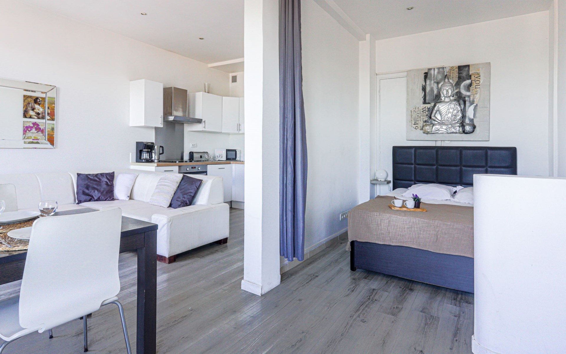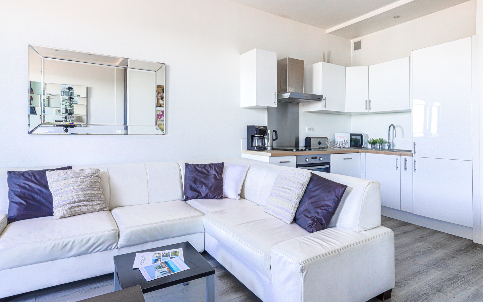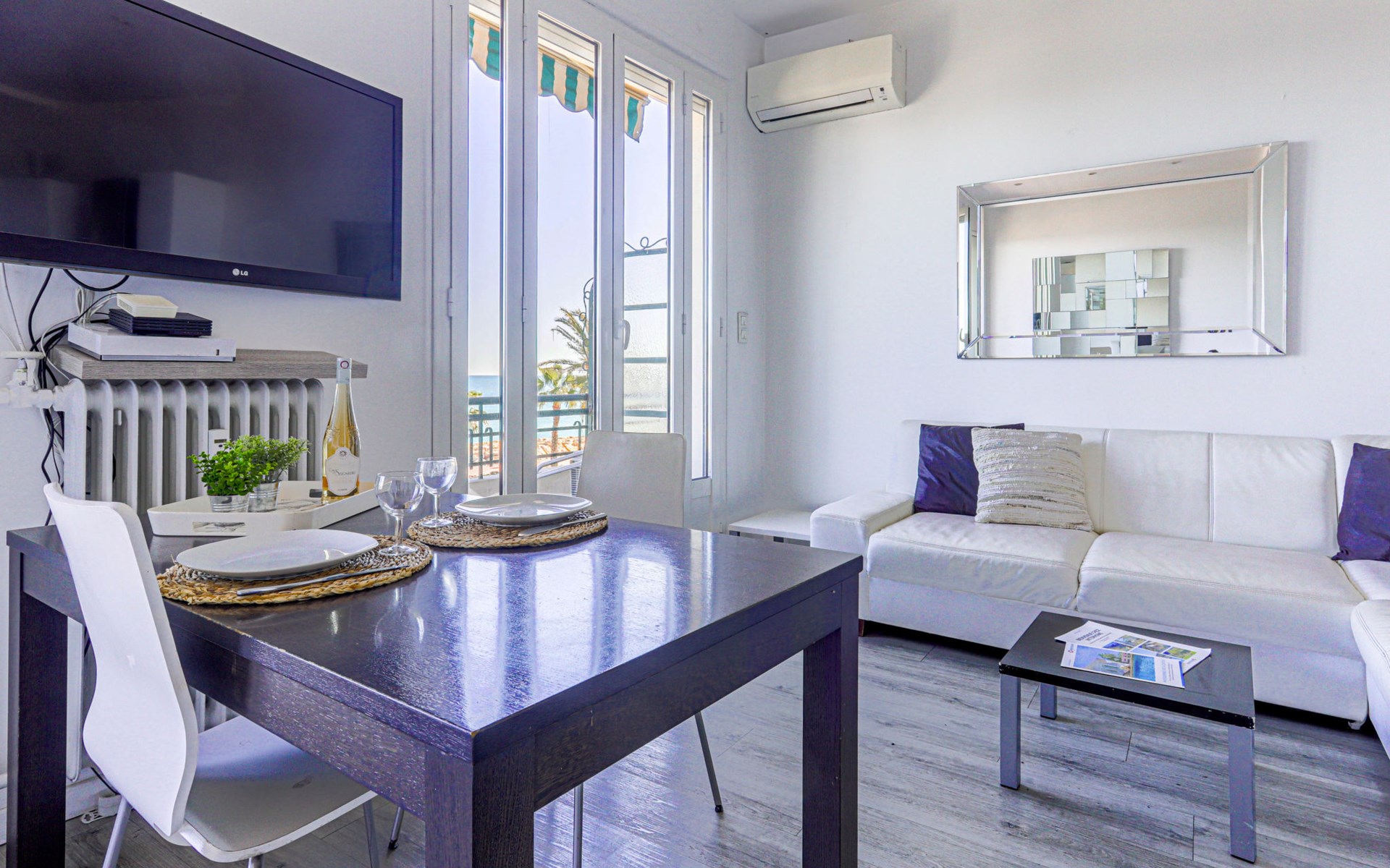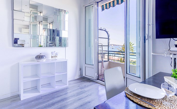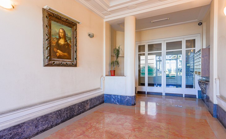 Beautiful apartment house "La Joconde", 6 storeys. In the district of Promenade des Anglais, in a sunny position in the residential district, 50 m from the sea, from the beach, road to cross, south facing position. In the house: lift. Public parking on the road. Grocery 200 m, supermarket 500 m, shopping centre 3.6 km, restaurant 500 m, bar 750 m, bakery 100 m, café 300 m, pedestrian zone 4.2 km, 25 minute walk to the centre, tram 50 m, bus stop "Saint Hélène" 200 m, railway station "St Augustin" 2.3 km, shingle beach "Plage St hélène" 150 m, indoor swimming pool 1.2 km. Golf course (18 hole) 24 km. Nearby attractions: Monaco 25 km, Le vieux nice 4.5 km, Le château 5.5 km, Le parc Phoenix 3.4 km, Musée d'Art Moderne & d'Art Contemporain 4.3 km, Place Massena 3.4 km. Well-known ski regions can easily be reached: Valberg 81.5 km, Isola 88.7 km, Auron 90.5 km. Well-known lakes can easily be reached: Lac de St Cassien 58.5 km. Hiking paths: Parc national du Mercantour 54 km.
