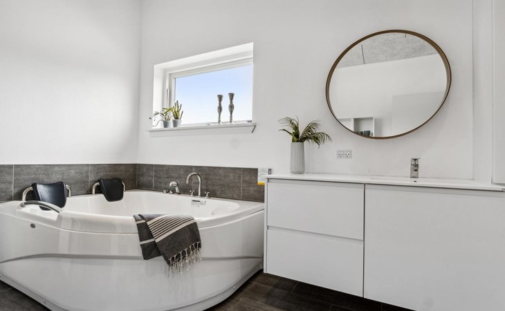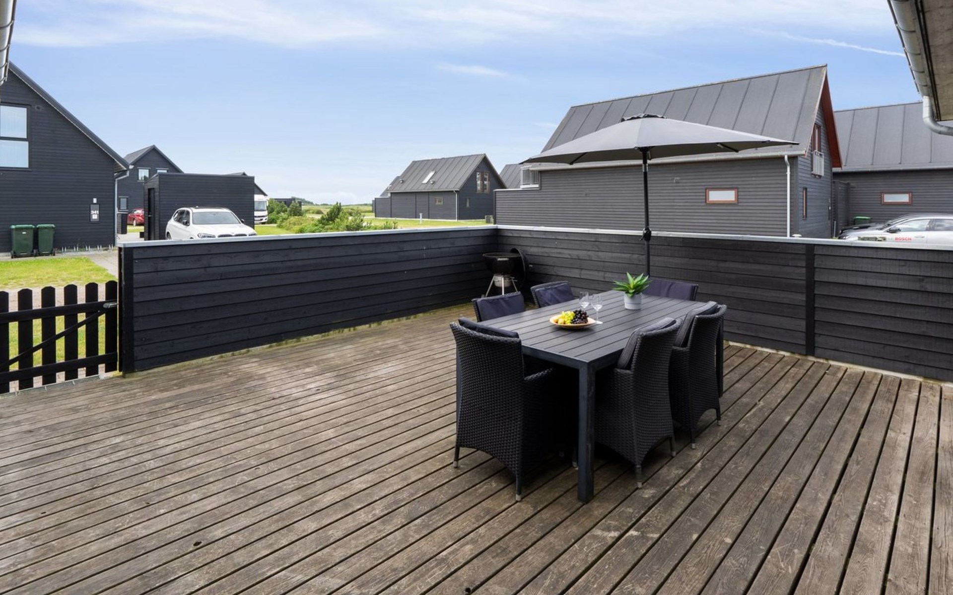 Single-family house, built in 2016. 1.4 km from the sea. Private: barbecue. In the house: washing machine, tumble dryer. Parking at the house. Grocery 900 m. Golf course 800 m. The owner does not accept any youth groups.